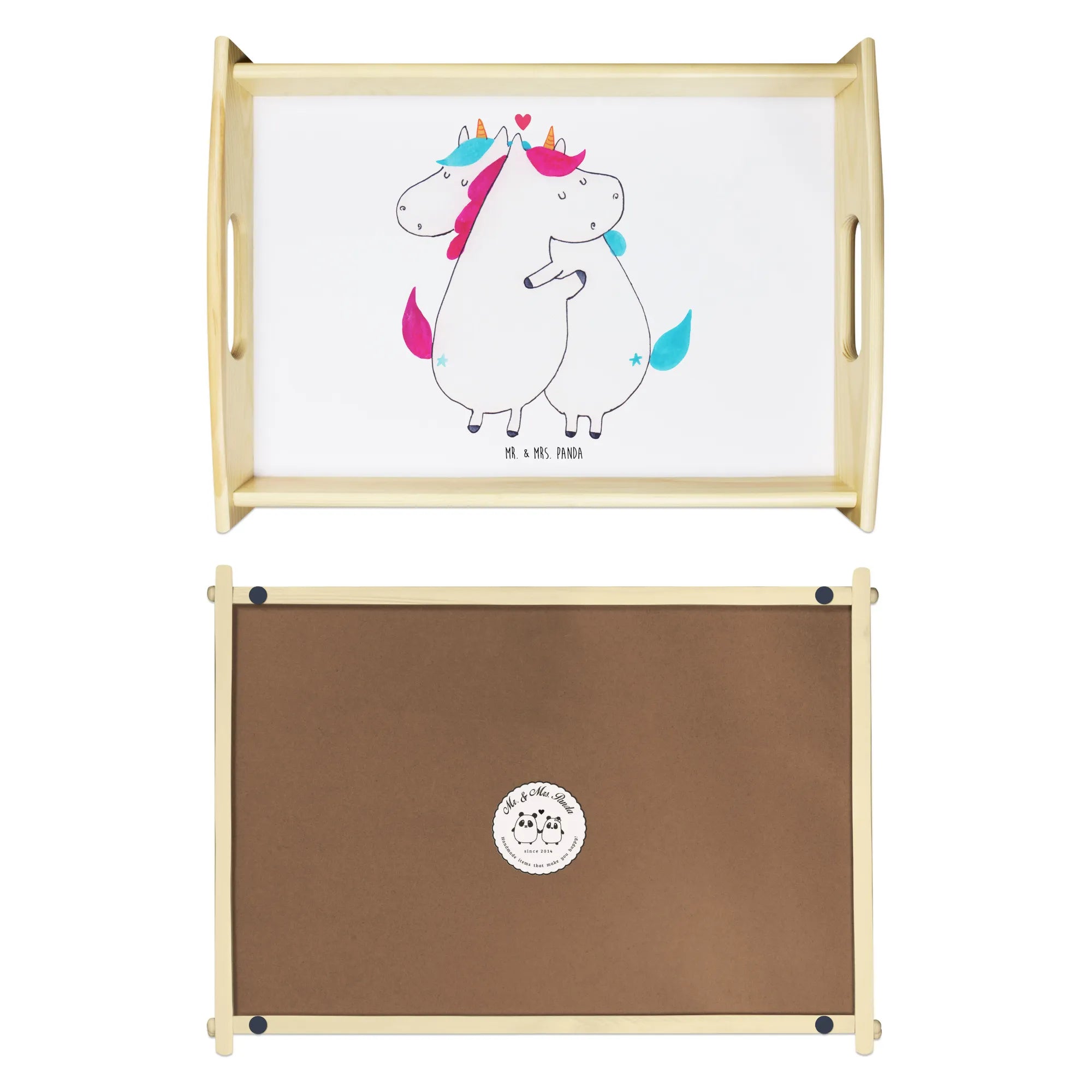 Ob als Geschenk für den Valentinstag, für die beste Freundin oder einfach mal so für den Partner – dieses Tablett ist eine liebevolle Überraschung, die in jedem Zuhause ein Lächeln hervorzaubert. Die "Einhorn Kollektion" von Mr. & Mrs. Panda bietet eine Vielzahl von niedlichen Einhorn-Motiven und Sprüchen, die perfekt für jeden Anlass geeignet sind. Verschenke Freude und Liebe mit einem Geschenk, das von Herzen kommt!
