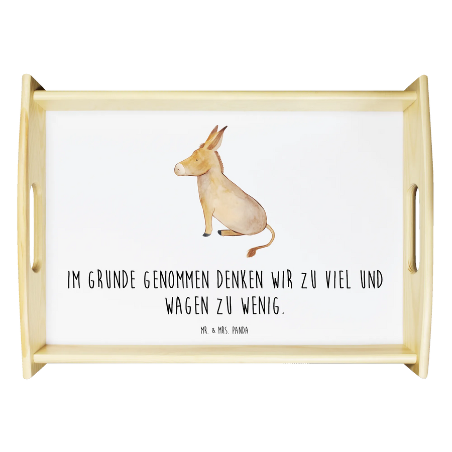 Entdecke unser einzigartiges Serviertablett von Mr. & Mrs. Panda – ein wahres Highlight für jedes Frühstück! Mit den Maßen von 480 mm x 480 mm x 65 mm und einem Gewicht von 925 g ist dieses Holztablett nicht nur praktisch, sondern auch wunderschön. Hergestellt aus lasiertem Echtholz mit einem brillanten Druck, bringt es Farbe in dein Zuhause. Ob für ein gemütliches Frühstück im Bett oder beim Entspannen auf dem Sofa – die seitlichen Griffmulden sorgen für eine einfache Handhabung. Vielen lieben Dank für deine Unterstützung, die Anti-Rutsch Pads auf der Unterseite machen das Servieren noch einfacher. Die kratzfeste und robuste Oberfläche garantiert Langlebigkeit. Pflegeleicht wird es einfach mit einem feuchten Tuch und etwas Spülmittel gereinigt. Bitte nicht einweichen! Hinweis: Aufgrund der aufwändigen Herstellung kann die Anfertigungszeit etwas länger sein.