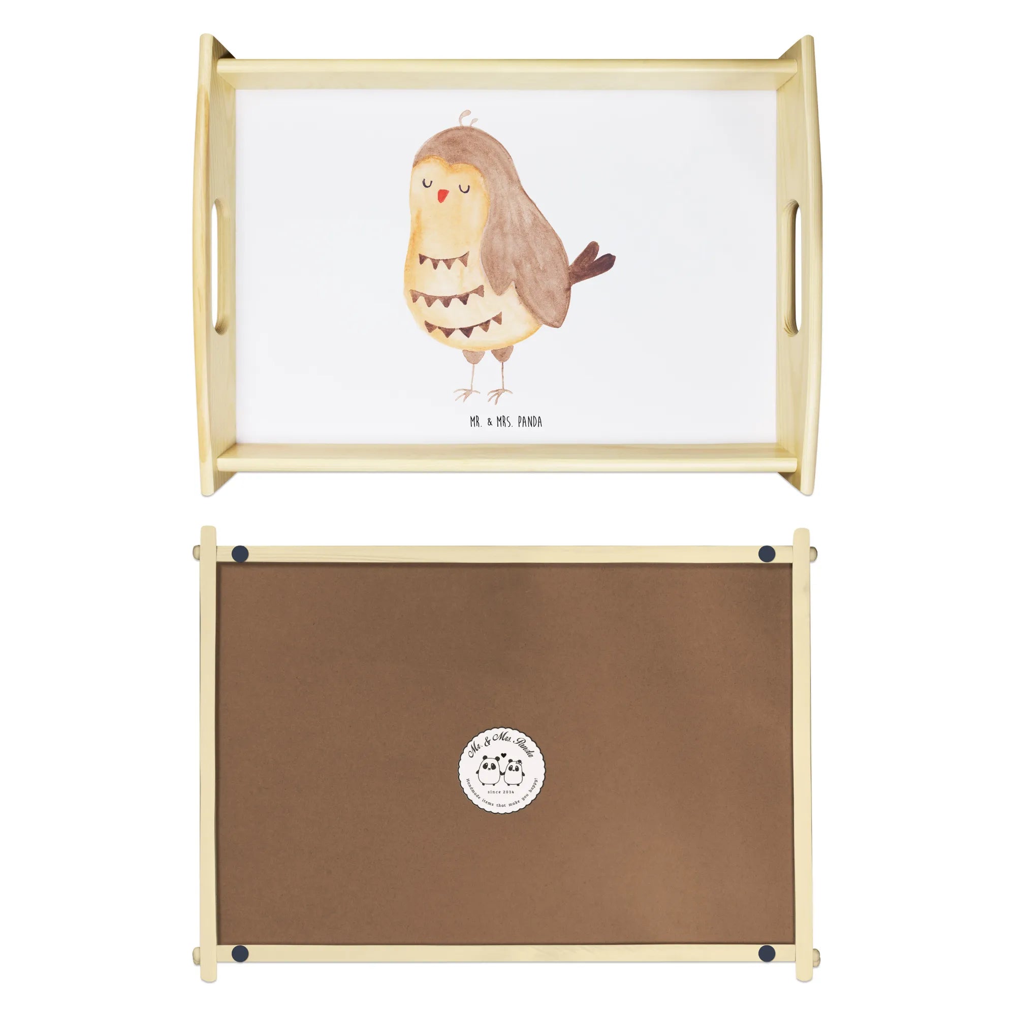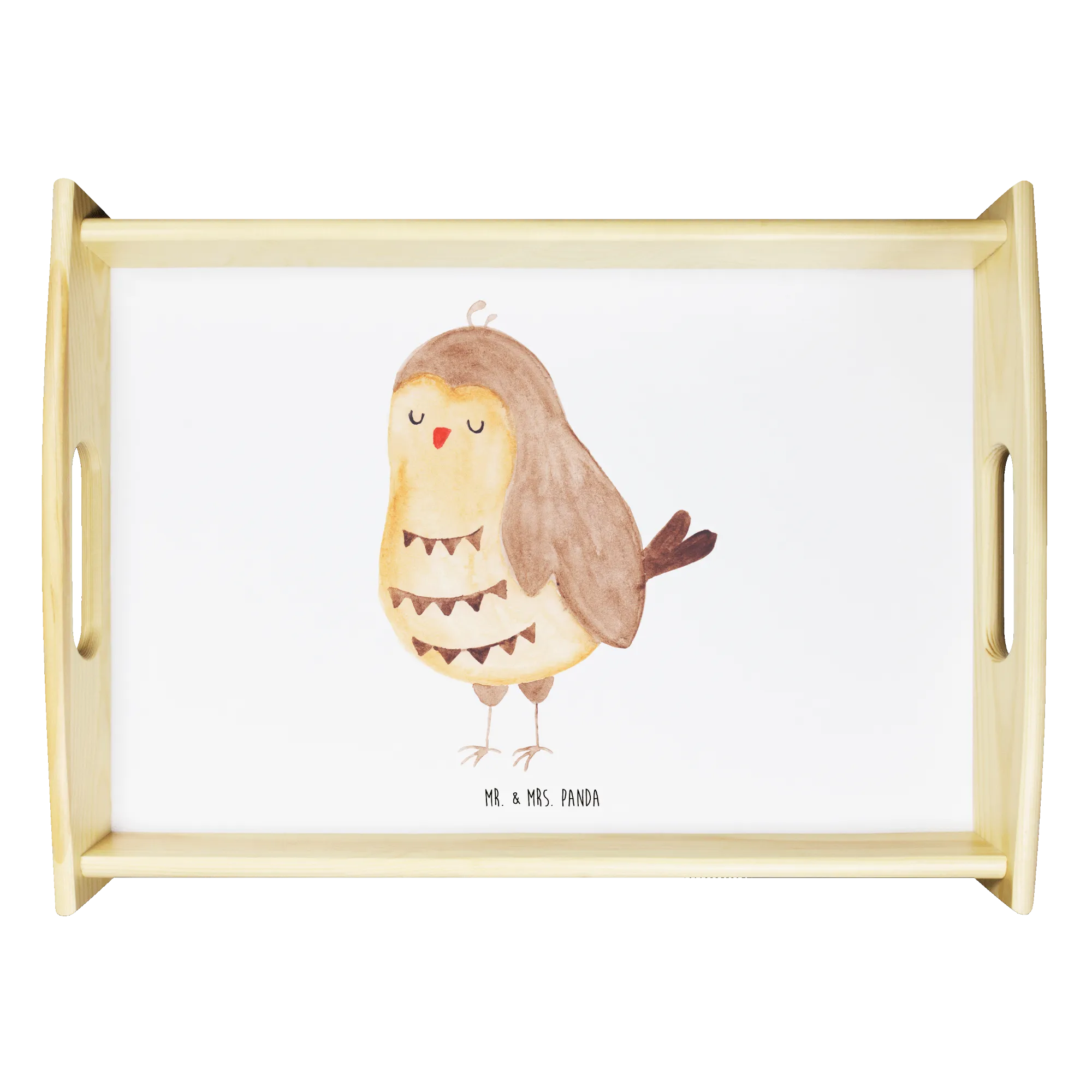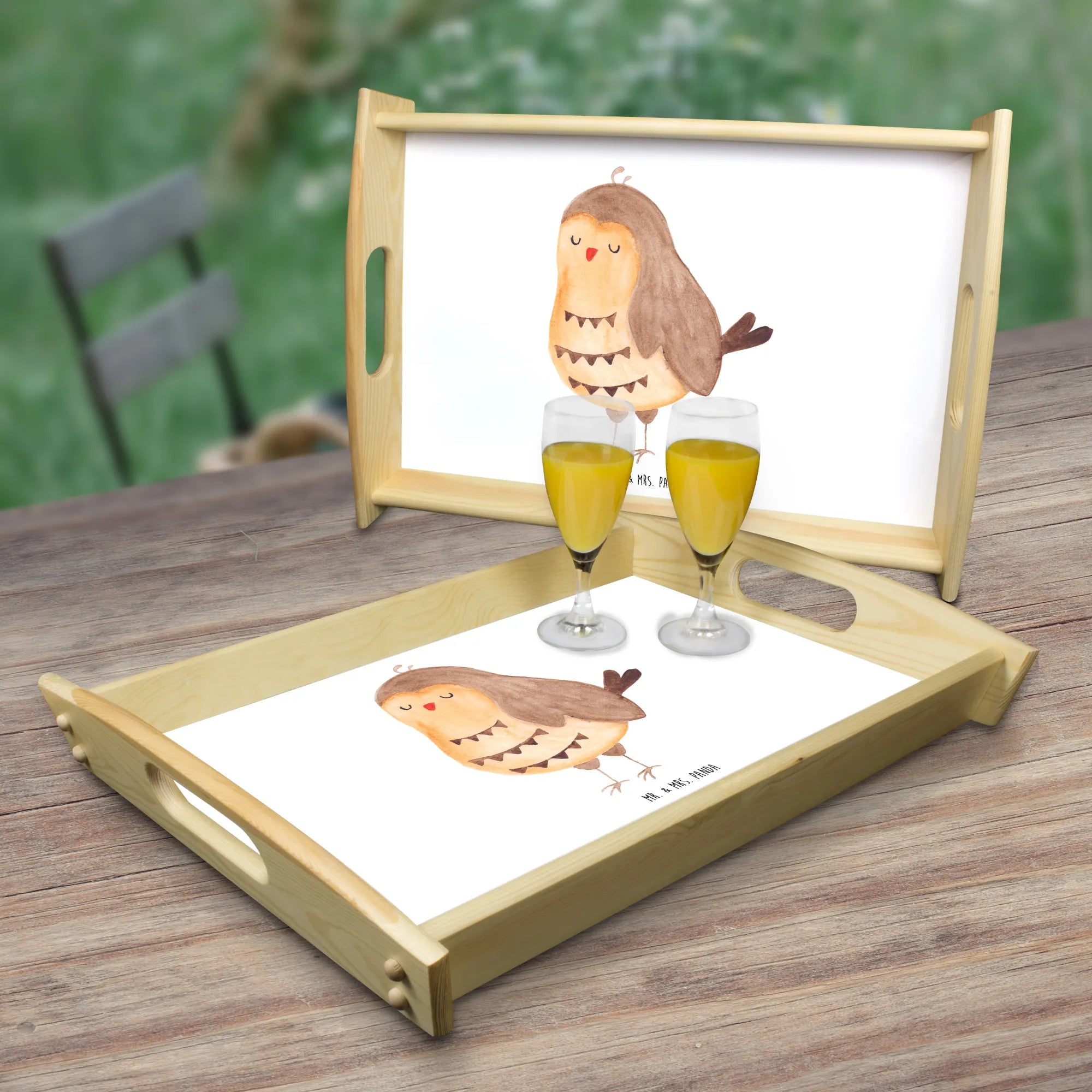 Serviertablett Eule Zufrieden - mit Spruch - Weiß