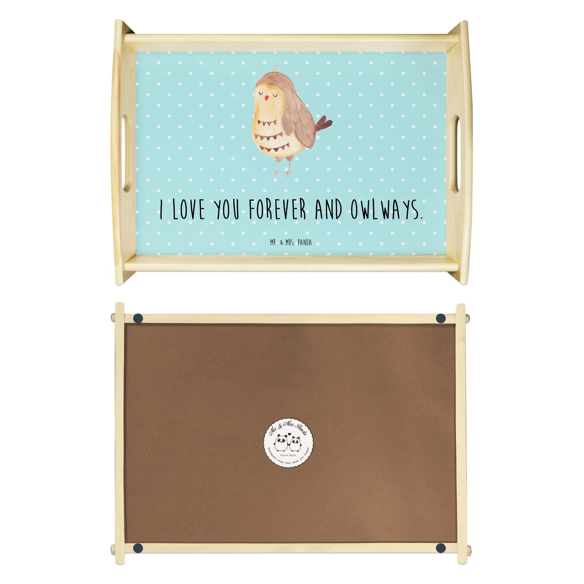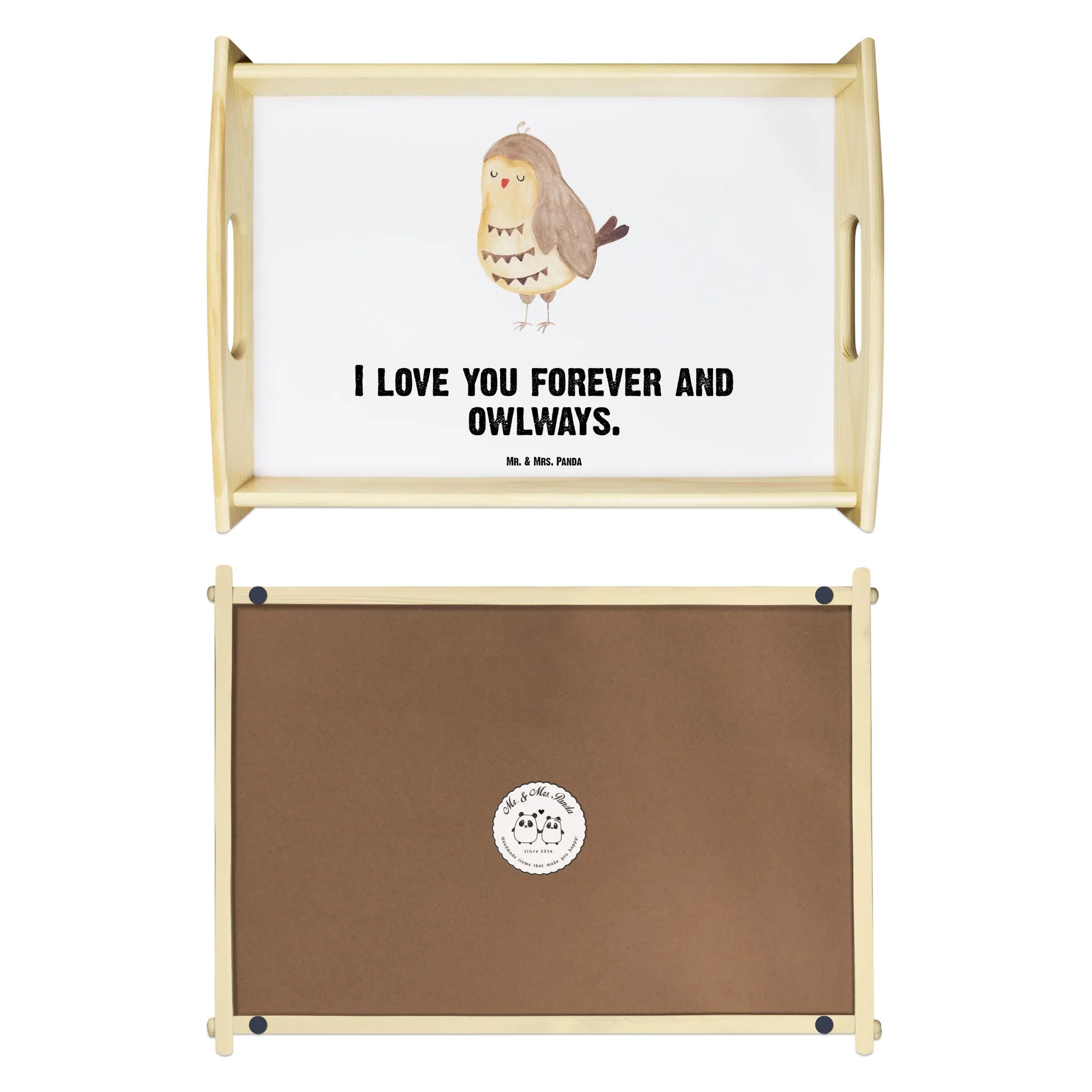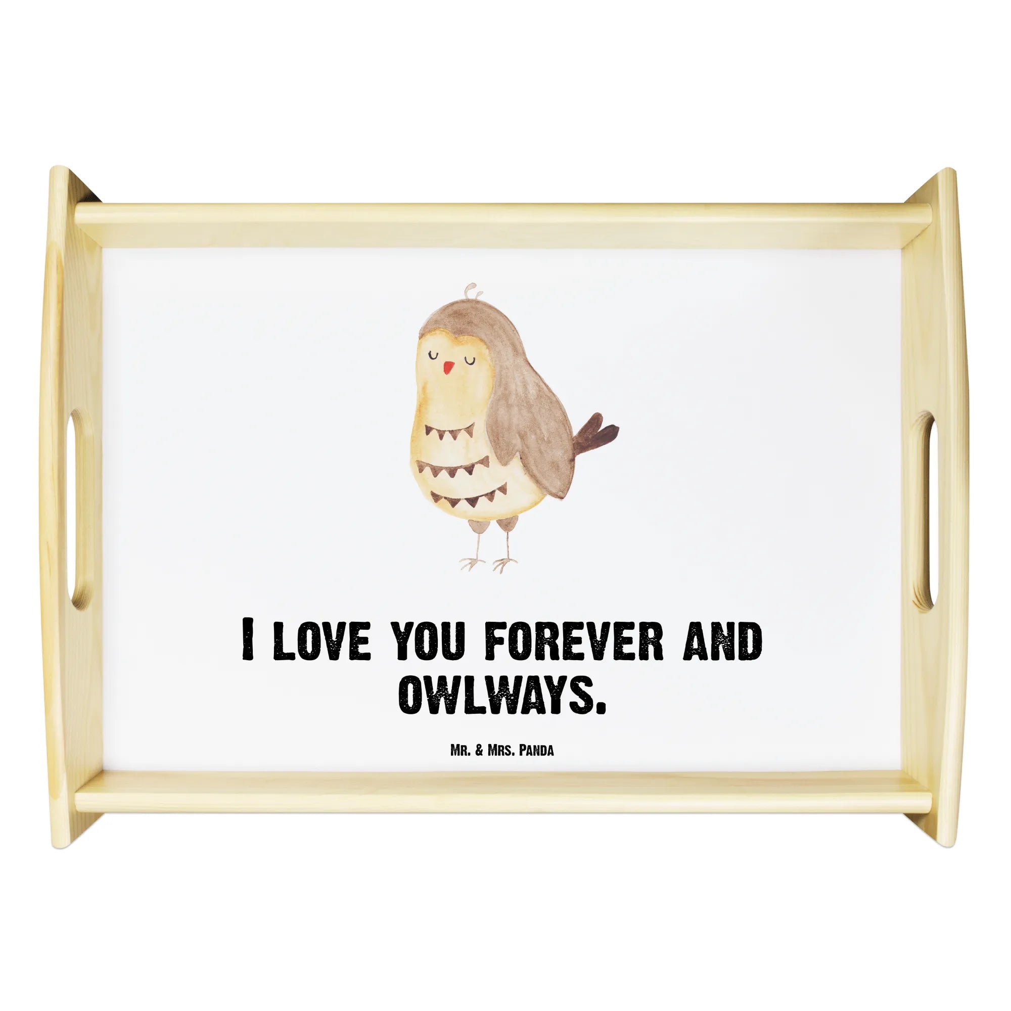 Serviertablett Eule Zufrieden - mit Spruch - Weiß