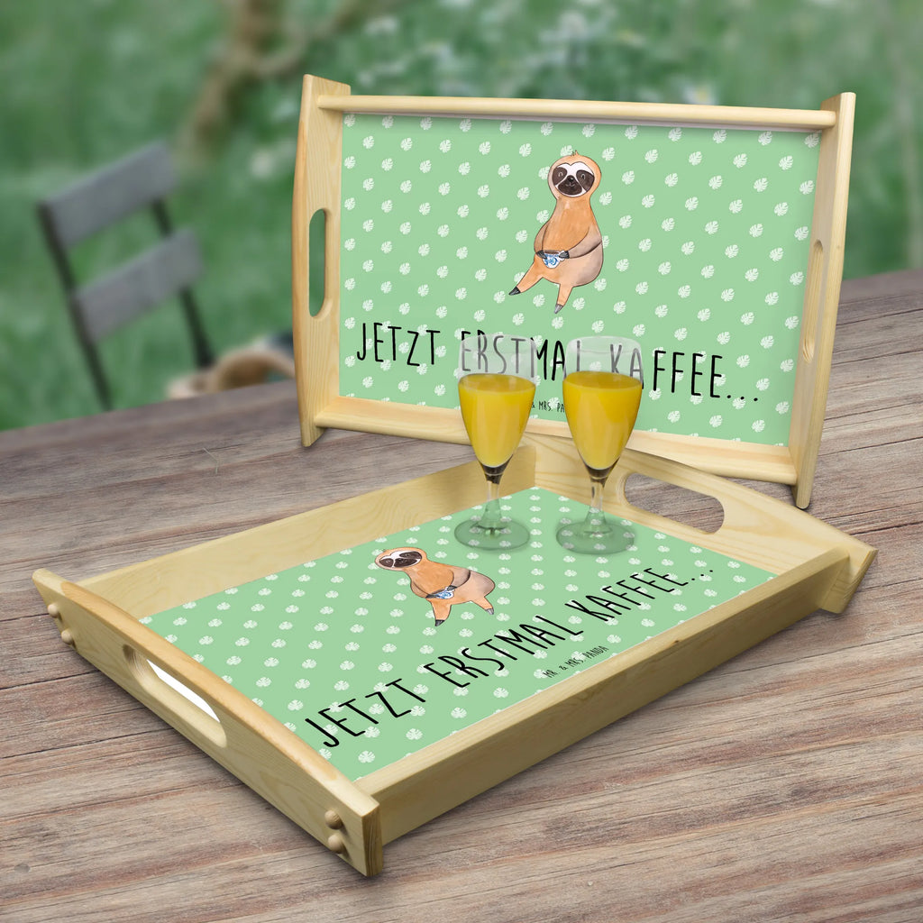 Serviertablett Faultier Kaffee - mit Spruch - Tropengrün