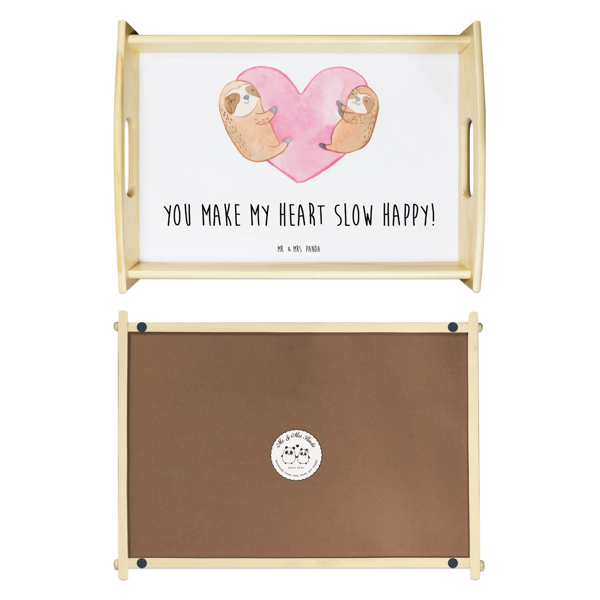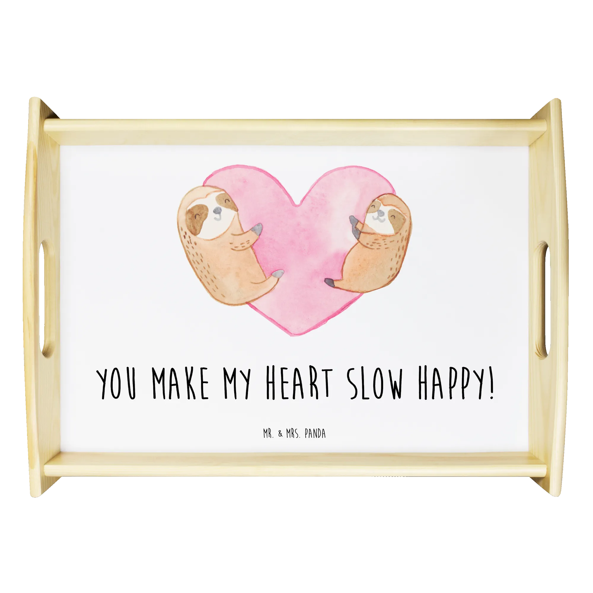 Verwöhne Deine Liebsten mit unserem bezaubernden Serviertablett von Mr. & Mrs. Panda! Mit den Maßen von 480 mm x 480 mm x 65 mm und einem gewicht von 925 g ist es nicht nur hübsch, sondern auch praktisch. Aus lasiertem Echtholz gefertigt, begeistert es mit einem lebendigen Druck, der gute Stimmung verbreitet. Egal ob beim Frühstück im Bett oder beim gemütlichen Abendessen auf dem Sofa – die seitlichen Griffmulden ermöglichen ein einfaches Tragen. Die Anti-Rutsch Pads auf der Unterseite sorgen dafür, dass alles sicher an seinem Platz bleibt. Dank der kratzfesten Oberfläche bleibt dein Tablett nach jeder Benutzung in bestem Zustand – einfach mit einem feuchten Tuch und Spülmittel abwischen, aber nicht einweichen! Beachte bitte die längere Anfertigungszeit aufgrund der besonderen Verarbeitung.