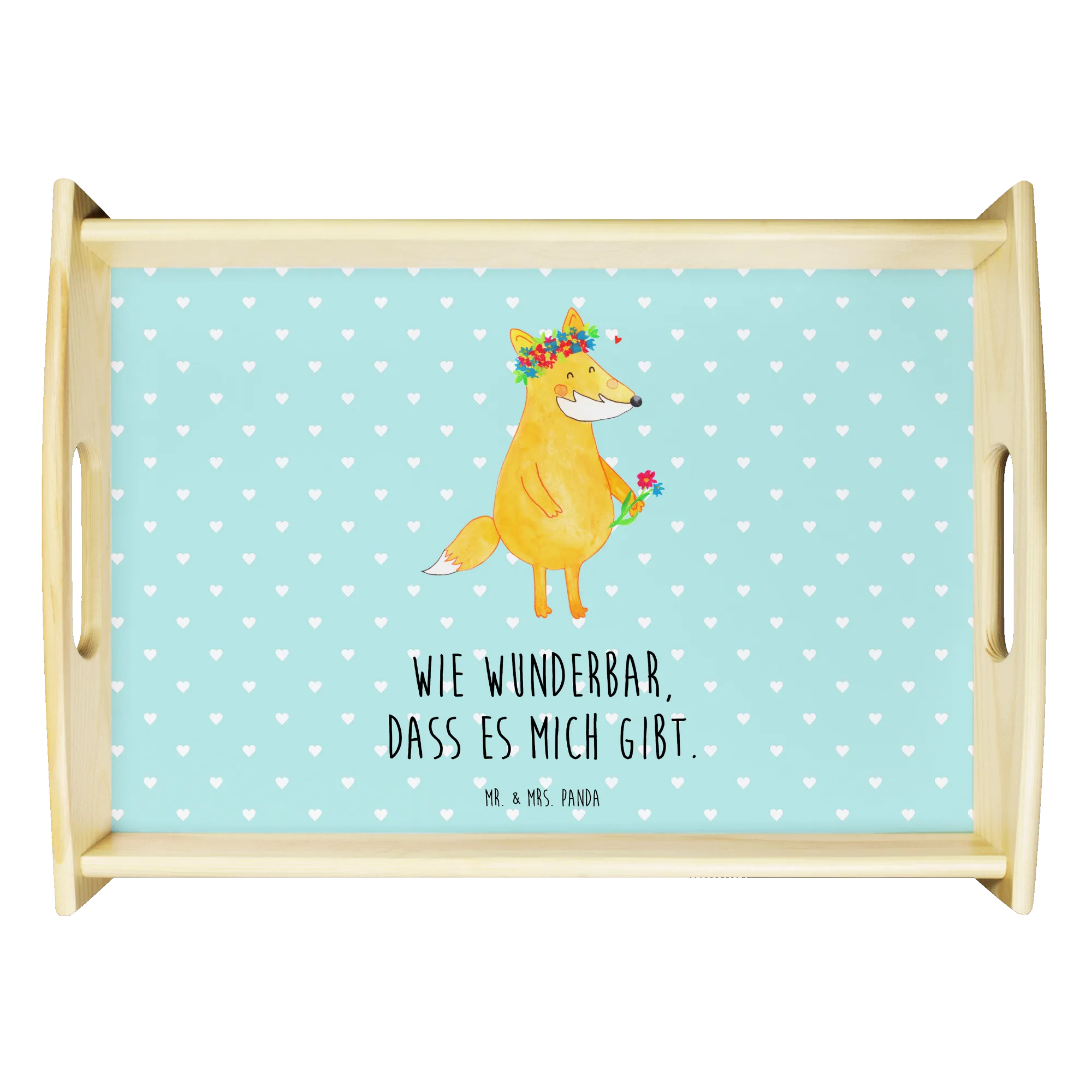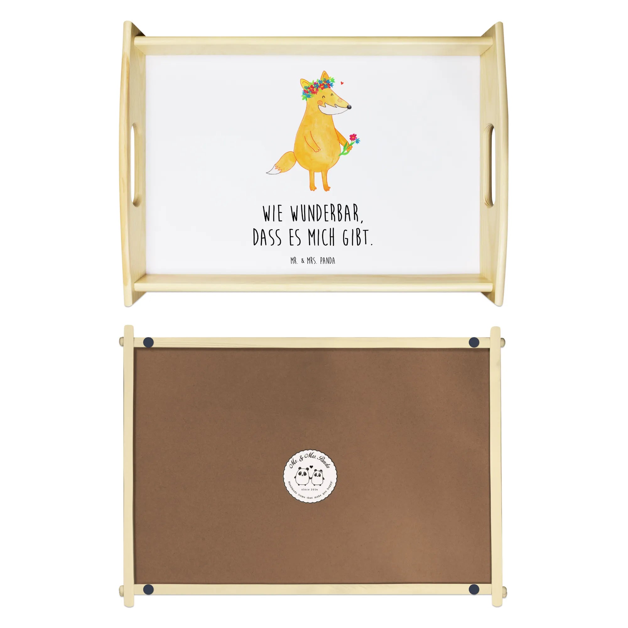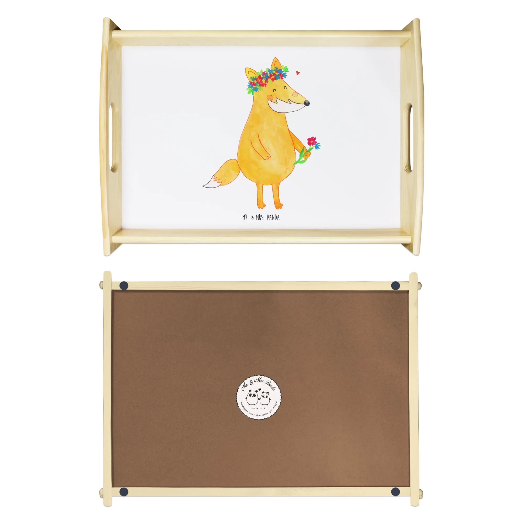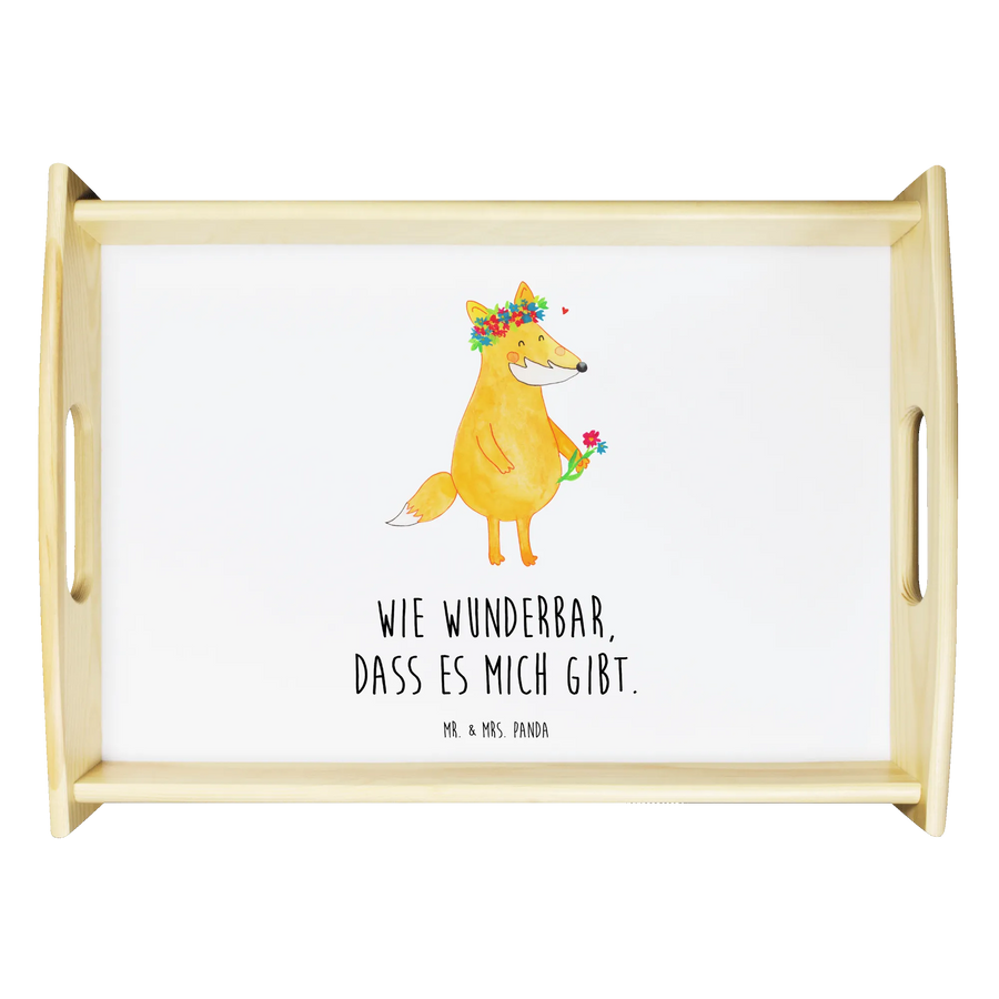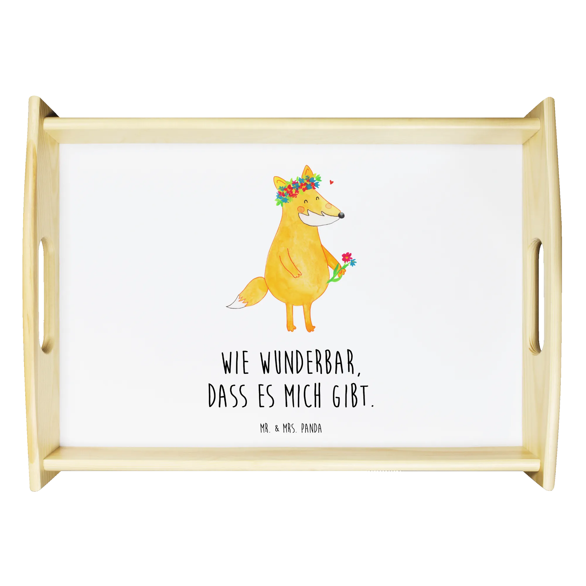 Serviertablett Fuchs Blumen - mit Spruch - Weiß