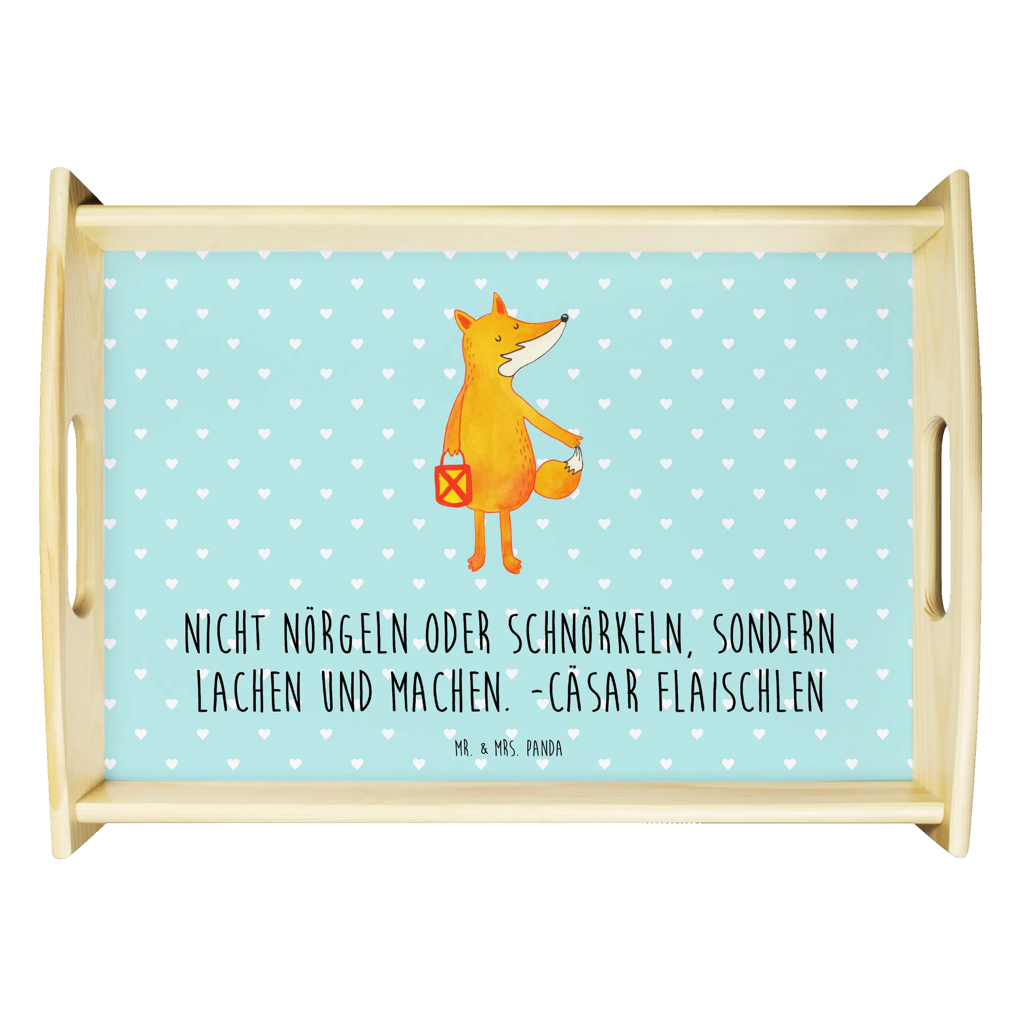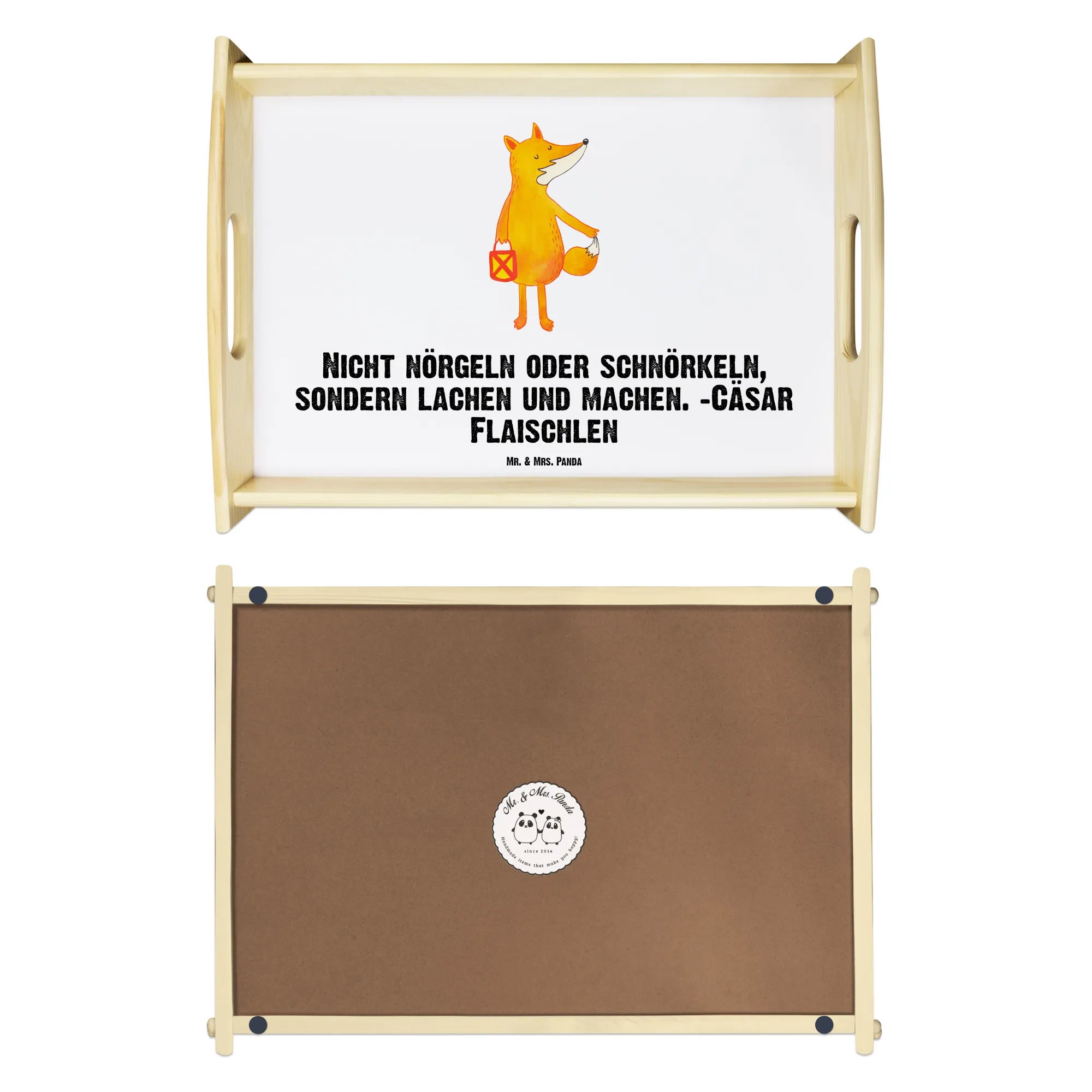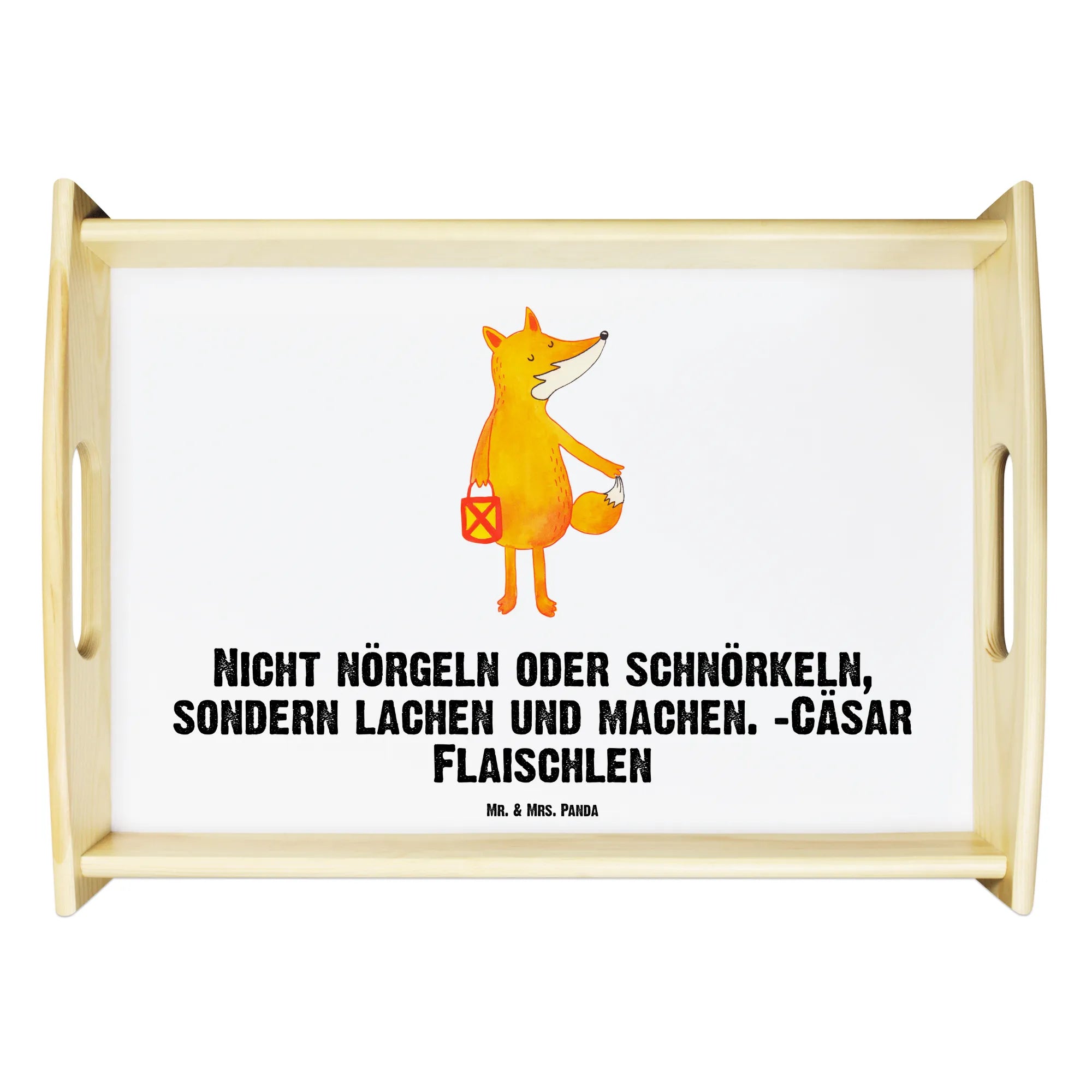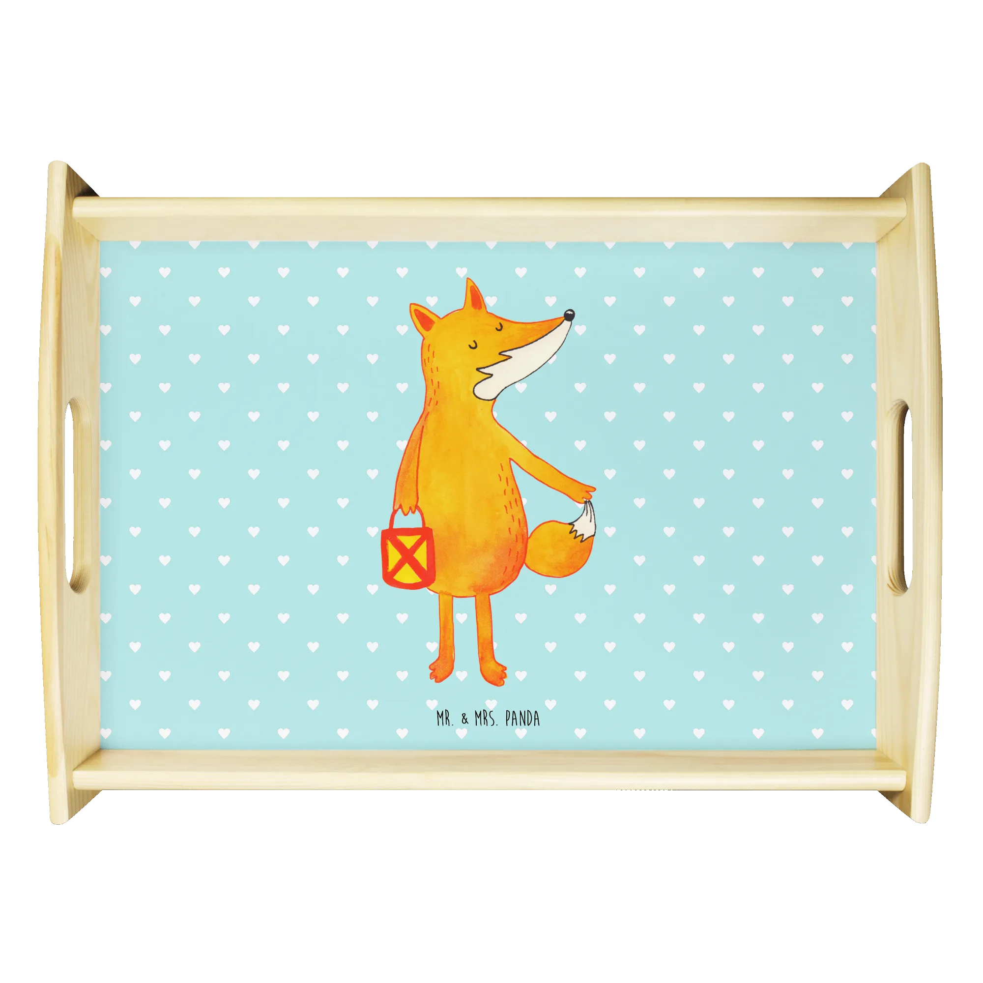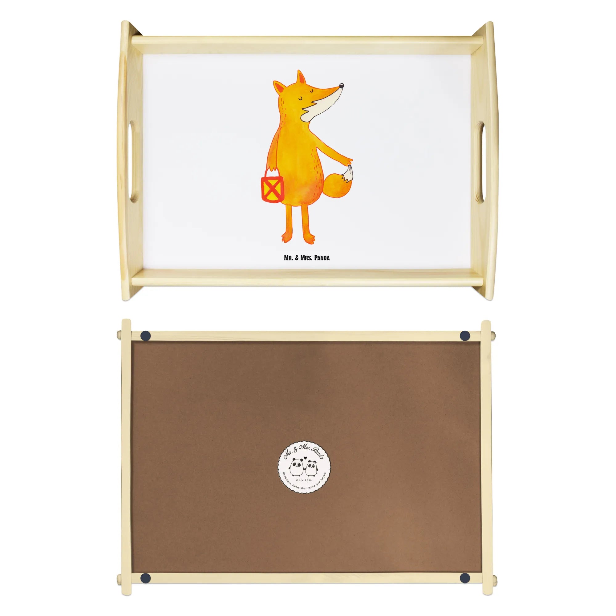 Serviertablett Fuchs Laterne – das liebevolle Holztablett aus der Fuchs Kollektion von Mr. & Mrs. Panda. Ein niedlicher Fuchs trägt seine Laterne durch die Dämmerung und zaubert sofort herbstliche Gemütlichkeit in Dein Zuhause. Perfekt für Sankt Martin, Laternenumzug, als Frühstückstablett oder als charmantes Dekotablett auf deinem Esstisch.