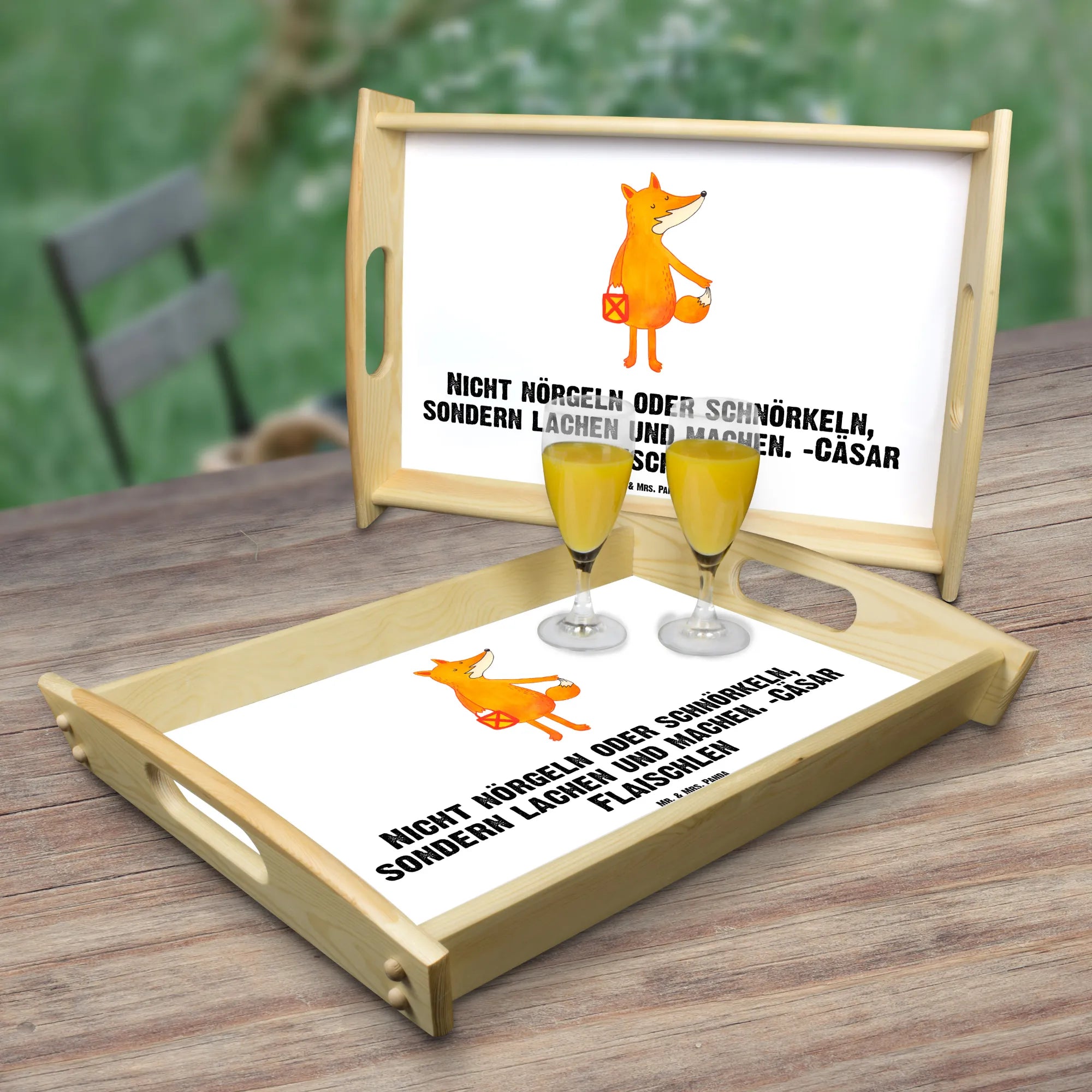 Serviertablett Fuchs Laterne - mit Spruch - Weiß