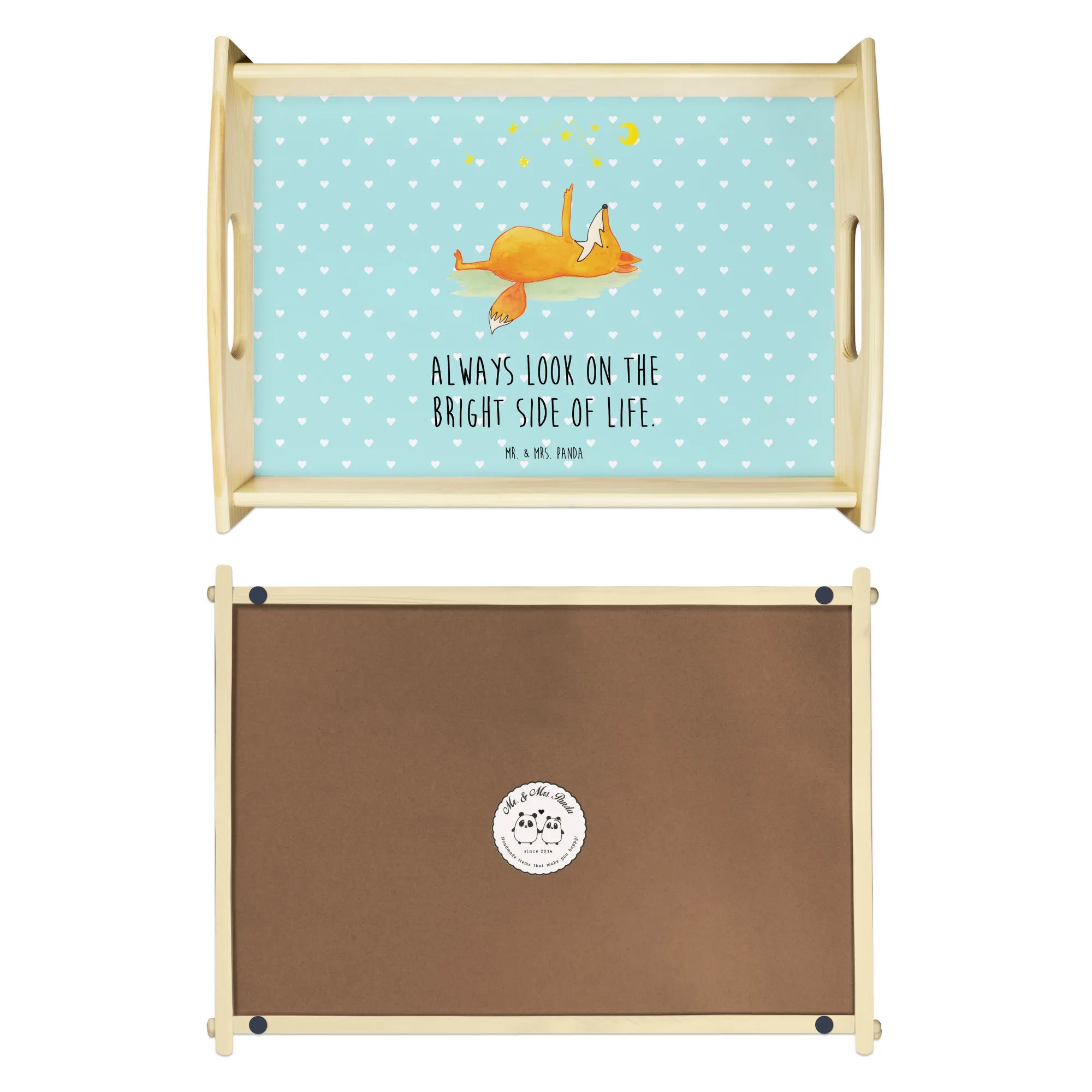 Das einzigartige Serviertablett von Mr. & Mrs. Panda wird dein Frühstücksbuffet zum Erlebnis machen! Mit seinen großzügigen Maßen von 480 mm x 480 mm x 65 mm und einem Gewicht von 925 g ist es die perfekte Kombination aus Funktionalität und Stil. Aus hochwertigem, lasiertem Echtholz gefertigt, verzückt das Tablett mit einem strahlenden Druck, der für gute Laune sorgt. Ob im Bett oder auf dem Sofa, die seitlichen Griffmulden garantieren ein angenehmes Handling. Die spezielle Anti-Rutsch Beschichtung sorgt dafür, dass alles sicher an seinem Platz bleibt. Dank der kratzfesten Oberfläche ist das Tablett sehr pflegeleicht – einfach mit einem feuchten Tuch und etwas Spülmittel abwischen. Bitte nicht einweichen! Denke daran, dass die Anfertigung wegen der hohen Qualität etwas Zeit in Anspruch nimmt.