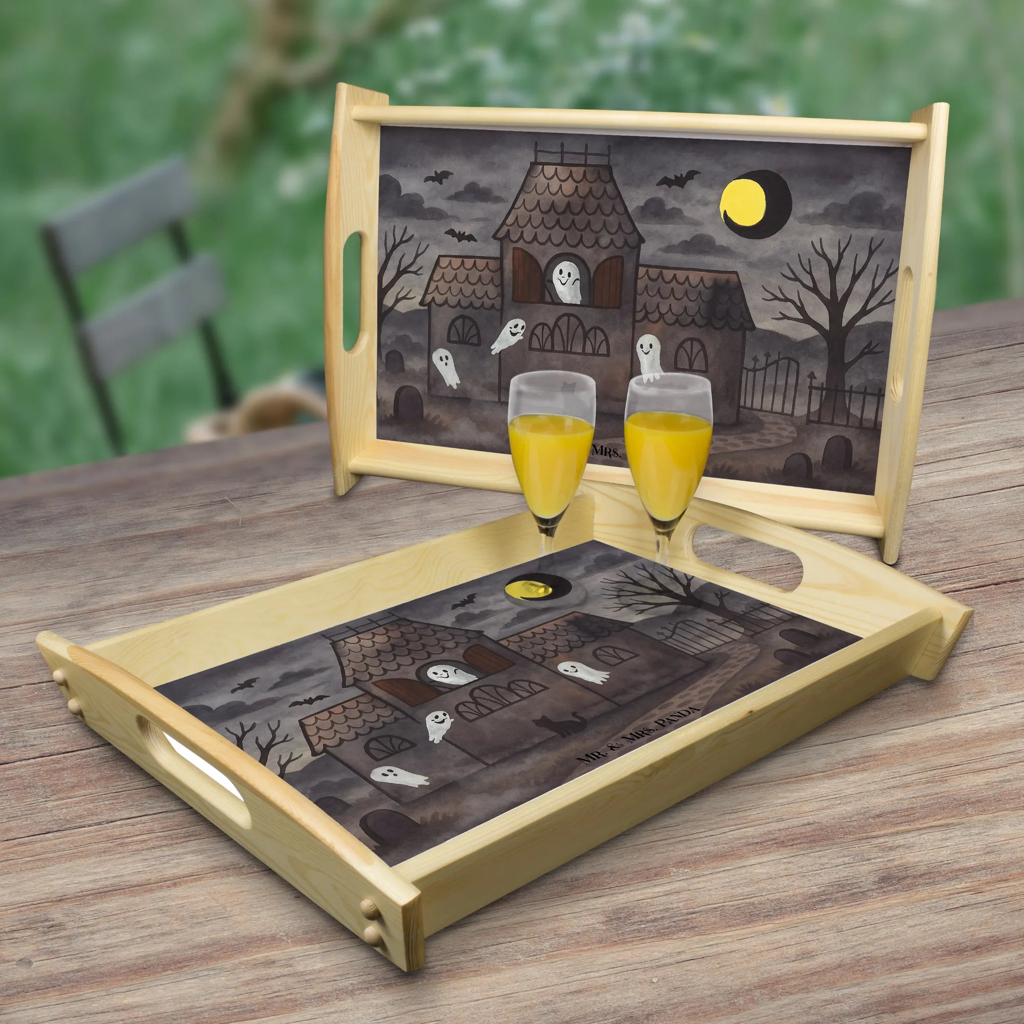 Das einzigartige Serviertablett von Mr. & Mrs. Panda wird dein Frühstücksbuffet zum Erlebnis machen! Mit seinen großzügigen Maßen von 480 mm x 480 mm x 65 mm und einem Gewicht von 925 g ist es die perfekte Kombination aus Funktionalität und Stil. Aus hochwertigem, lasiertem Echtholz gefertigt, verzückt das Tablett mit einem strahlenden Druck, der für gute Laune sorgt. Ob im Bett oder auf dem Sofa, die seitlichen Griffmulden garantieren ein angenehmes Handling. Die spezielle Anti-Rutsch Beschichtung sorgt dafür, dass alles sicher an seinem Platz bleibt. Dank der kratzfesten Oberfläche ist das Tablett sehr pflegeleicht – einfach mit einem feuchten Tuch und etwas Spülmittel abwischen. Bitte nicht einweichen! Denke daran, dass die Anfertigung wegen der hohen Qualität etwas Zeit in Anspruch nimmt.