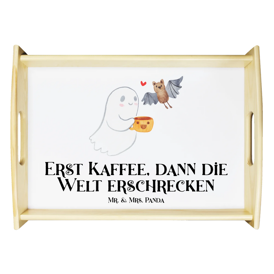 Du bist auf der Suche nach dem perfekten Geschenk? Das Serviertablett mit dem süßen Gespenst und der Botschaft "Erst Kaffee, dann die Welt erschrecken" ist ein absolutes Must-Have für alle Halloween-Liebhaber! Es ist nicht nur ein wunderschönes Holztablett, sondern auch ein Hingucker in jeder Küche oder beim Frühstück im Bett.