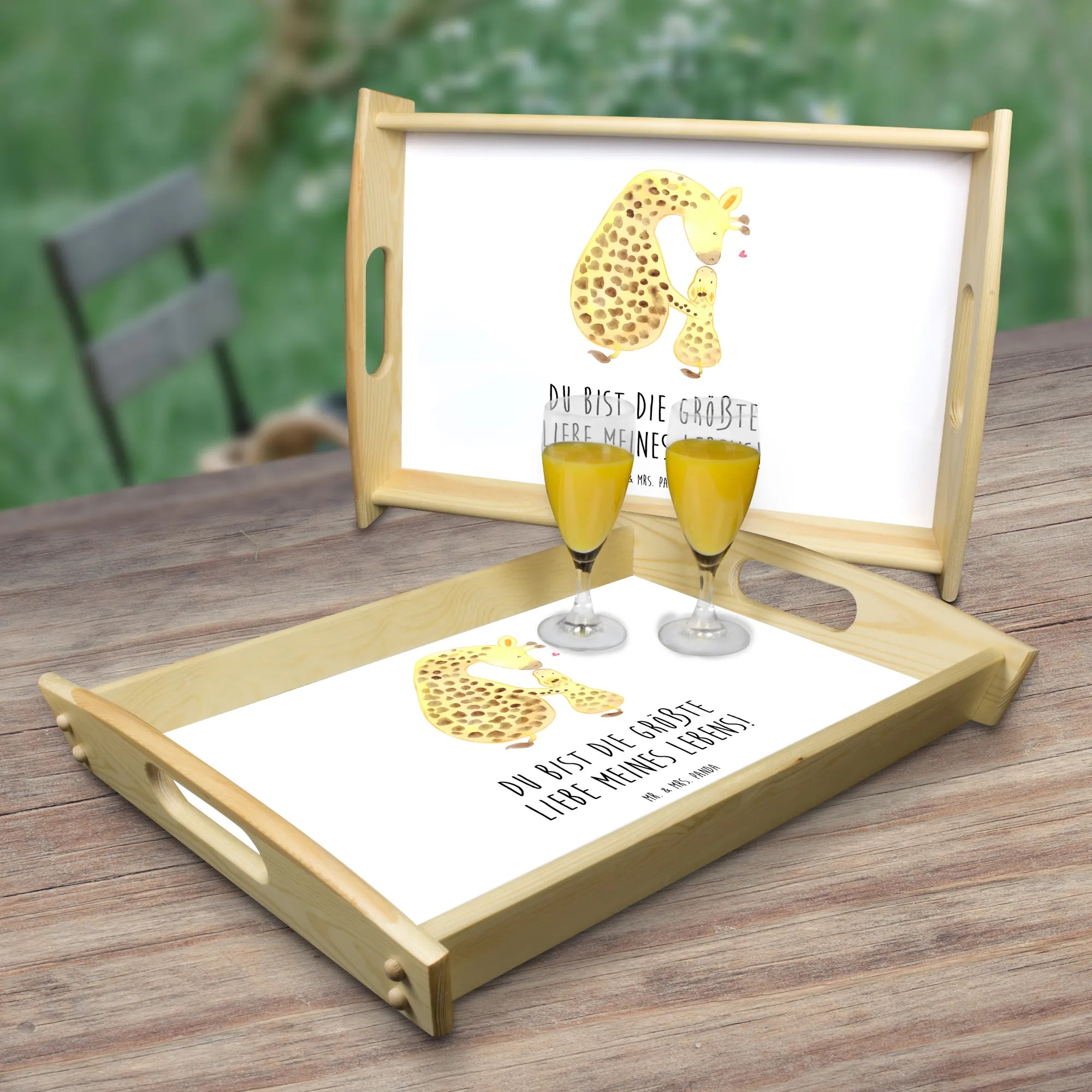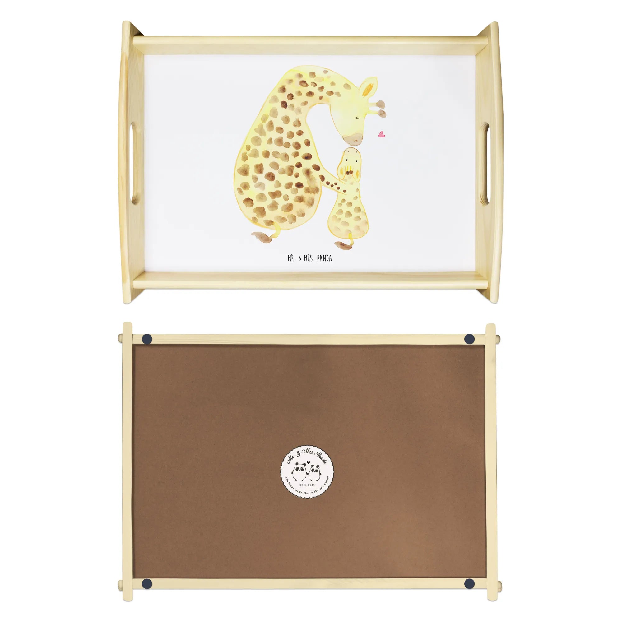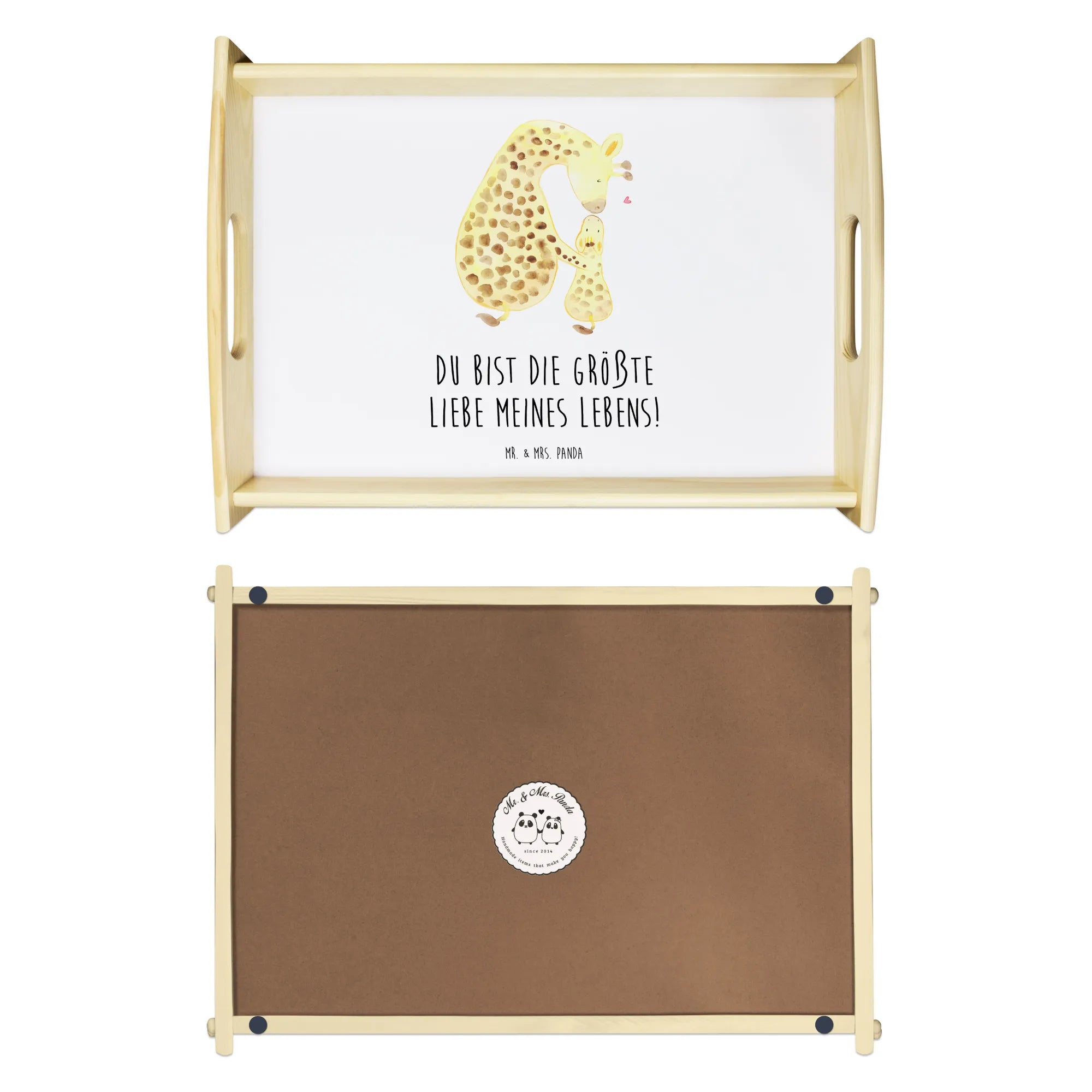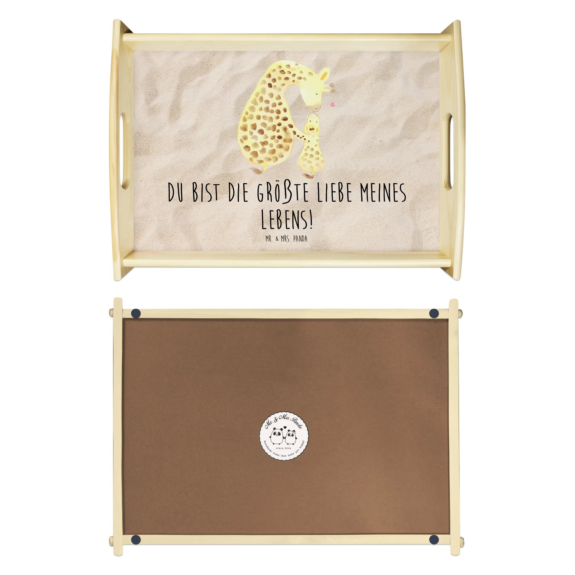 Serviertablett Giraffe mit Kind - mit Spruch - Sandig