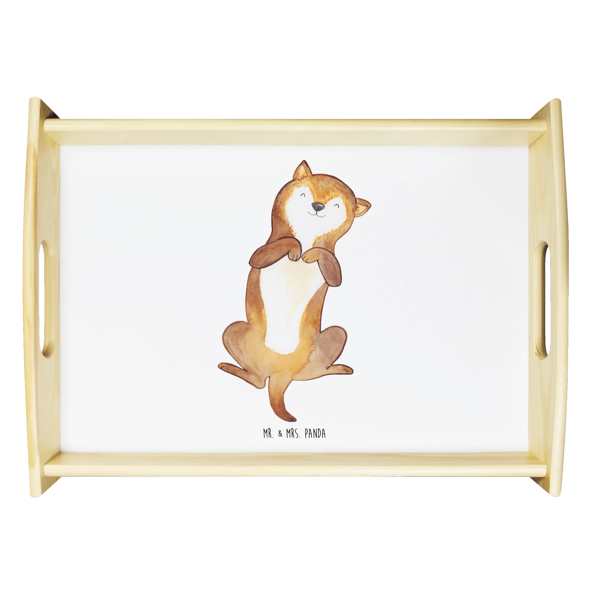 Serviertablett Hund Bauchkraulen - mit Spruch - Weiß
