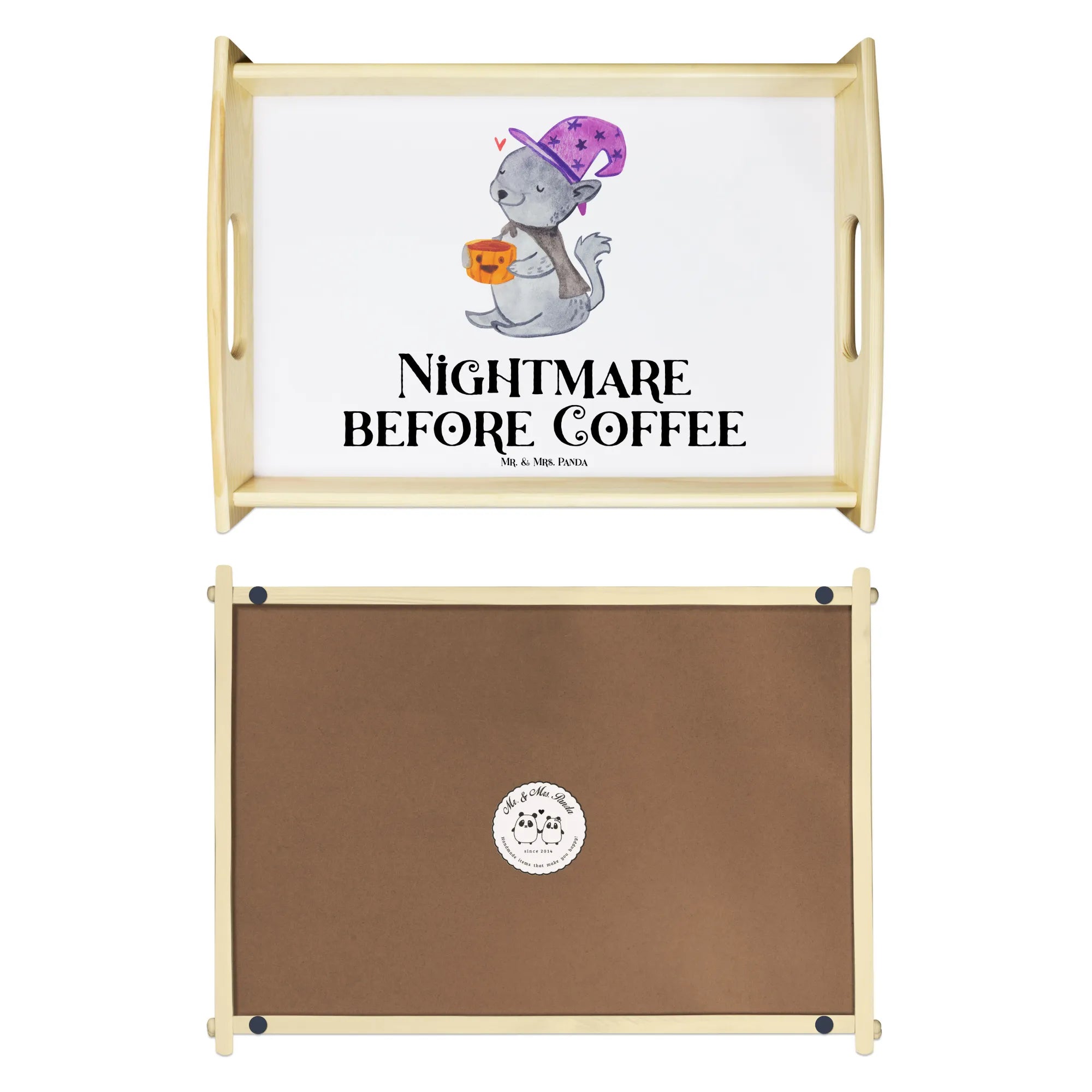 Lass dich von unserem charmanten Kater verzaubern, der in voller Ruhe seine Kaffeetasse hält. Sein lilafarbener Hut mit den funkelnden Sternen und die fröhliche Kürbistasse erzählen von einem magischen Leben voller Freude und Abenteuer. Der Spruch "Nightmare before Coffee" weckt die Neugierde und macht klar, wie wichtig dieser erste Schluck am Morgen ist, um gut gelaunt in den Tag zu starten. Der schwebende Herzchen über ihm bekräftigt die liebevolle Ausstrahlung, die uns alle daran erinnert, dass wir kleinen Zauber im Alltag finden können. Egal wie dein Tag aussieht, dieses Motiv wird dir helfen, die positiven Momente zu erkennen, während du die Kraft des Kaffees schnupperst und jedem Tag die Magie einhaucht.