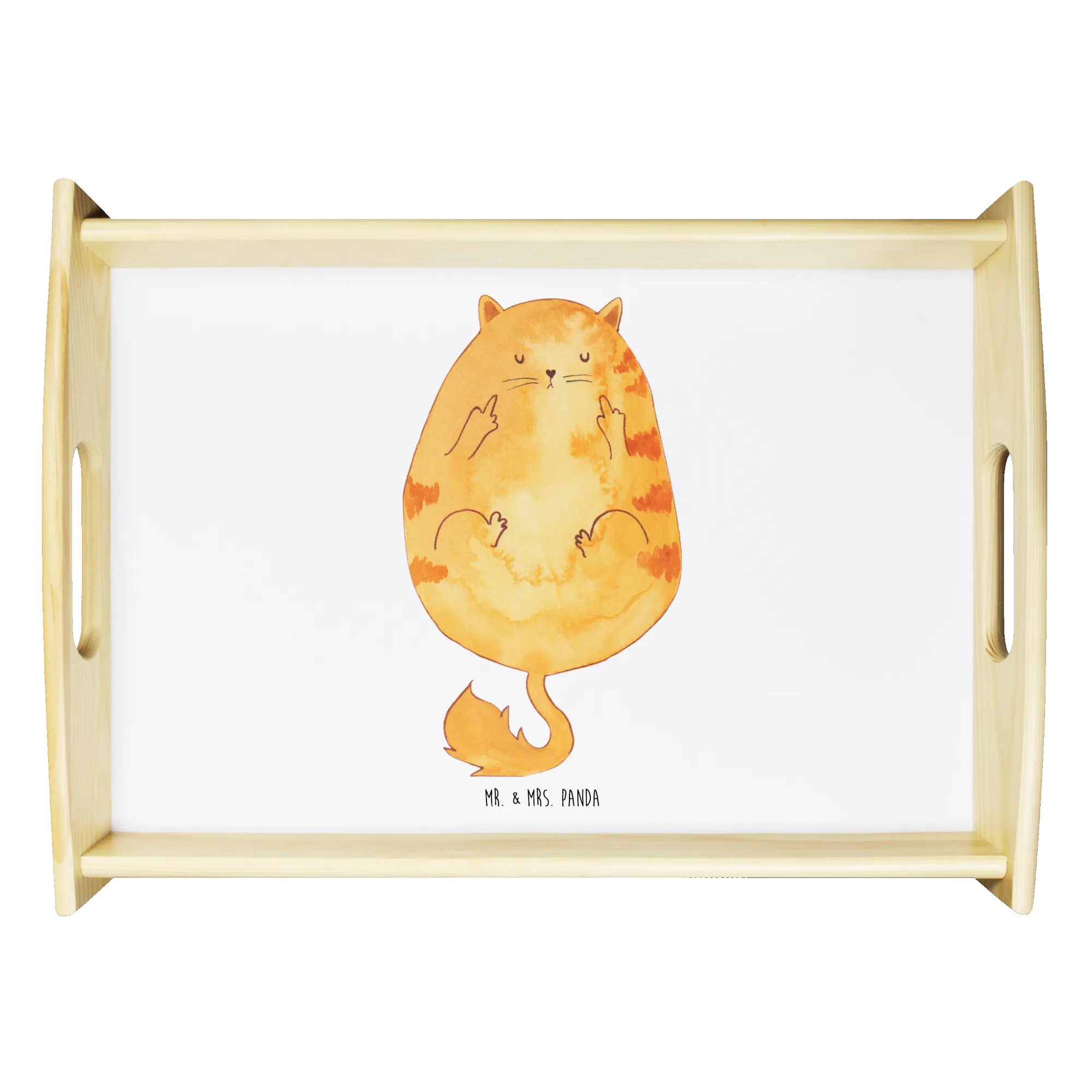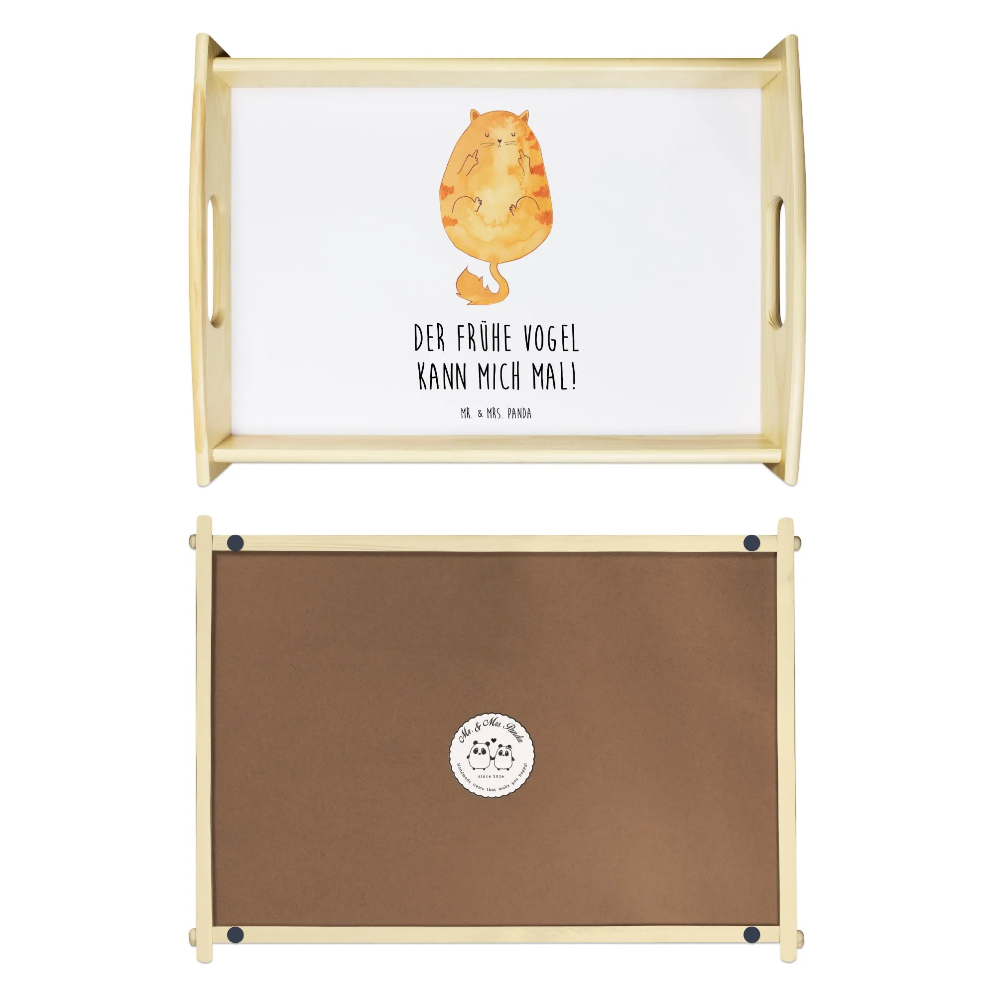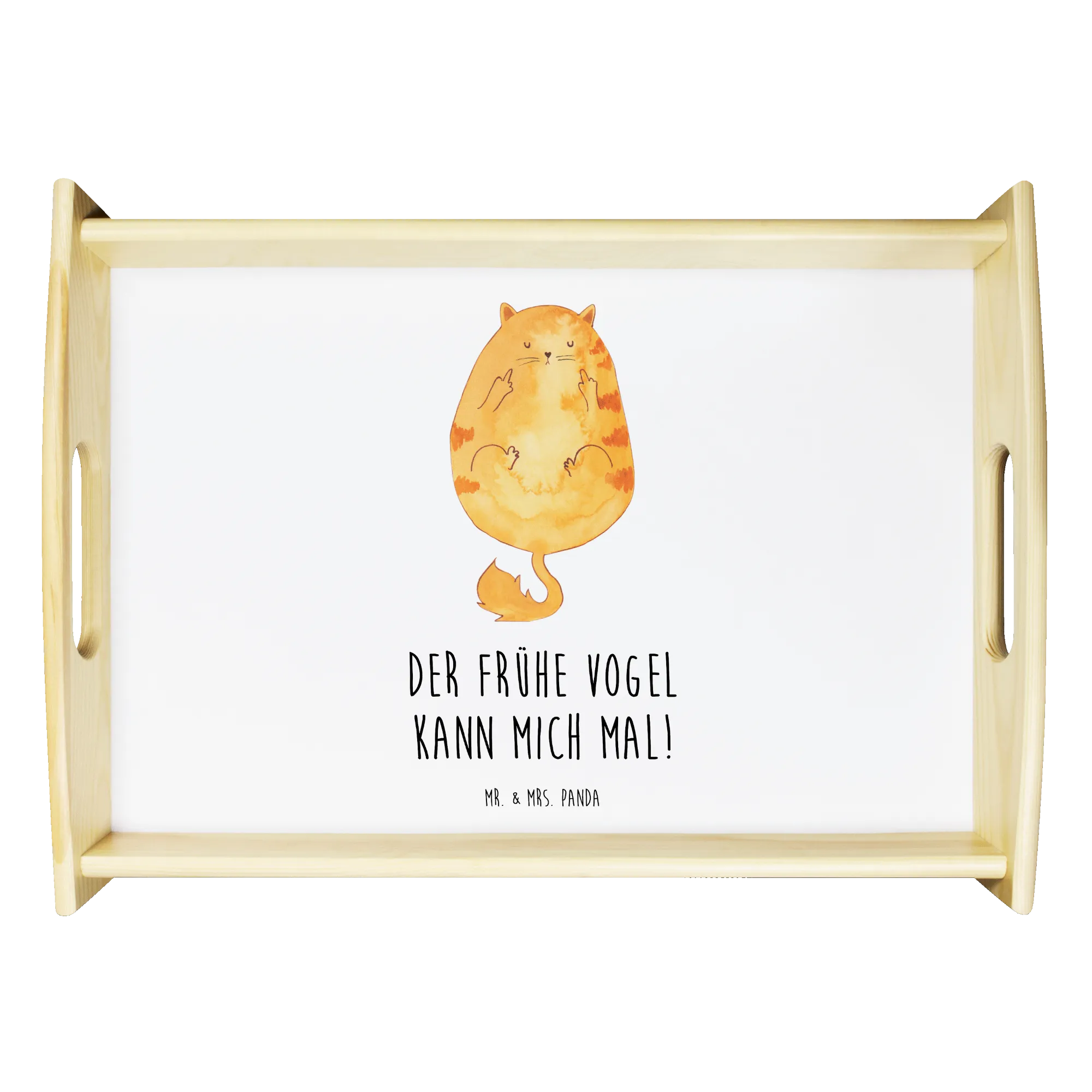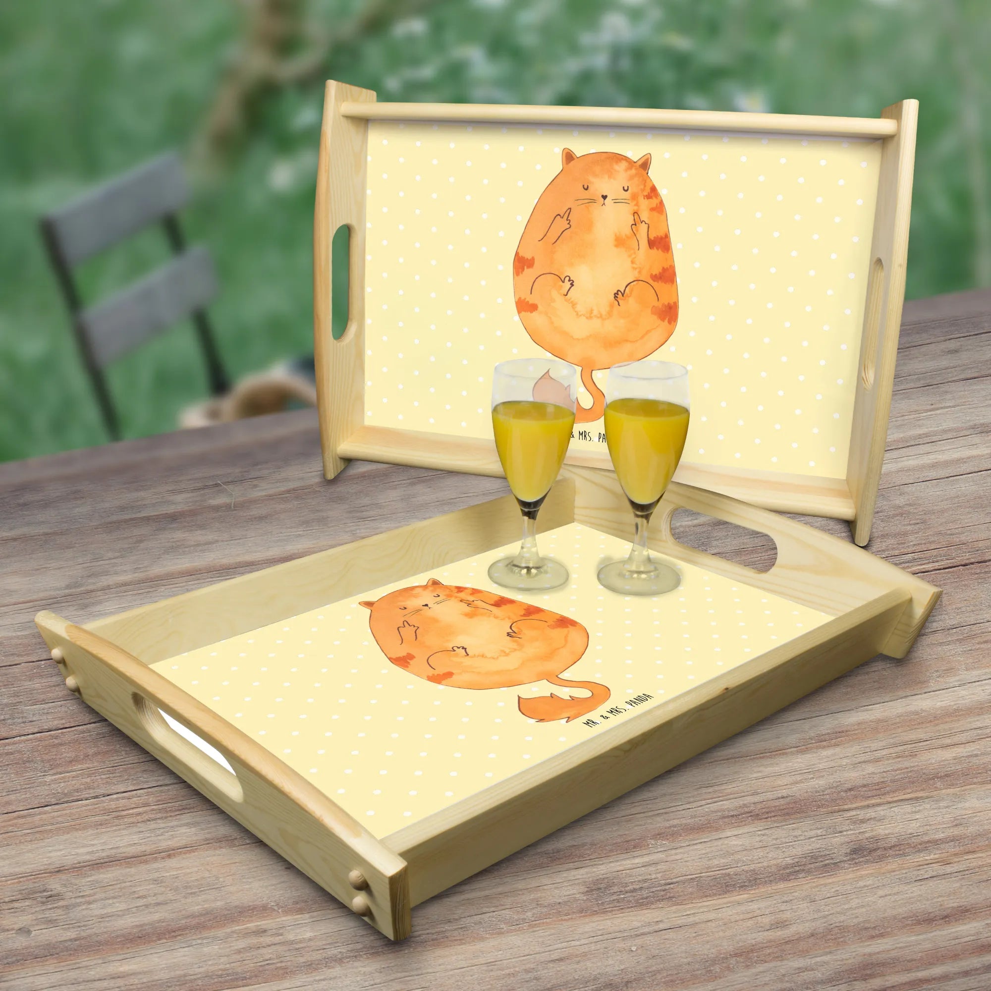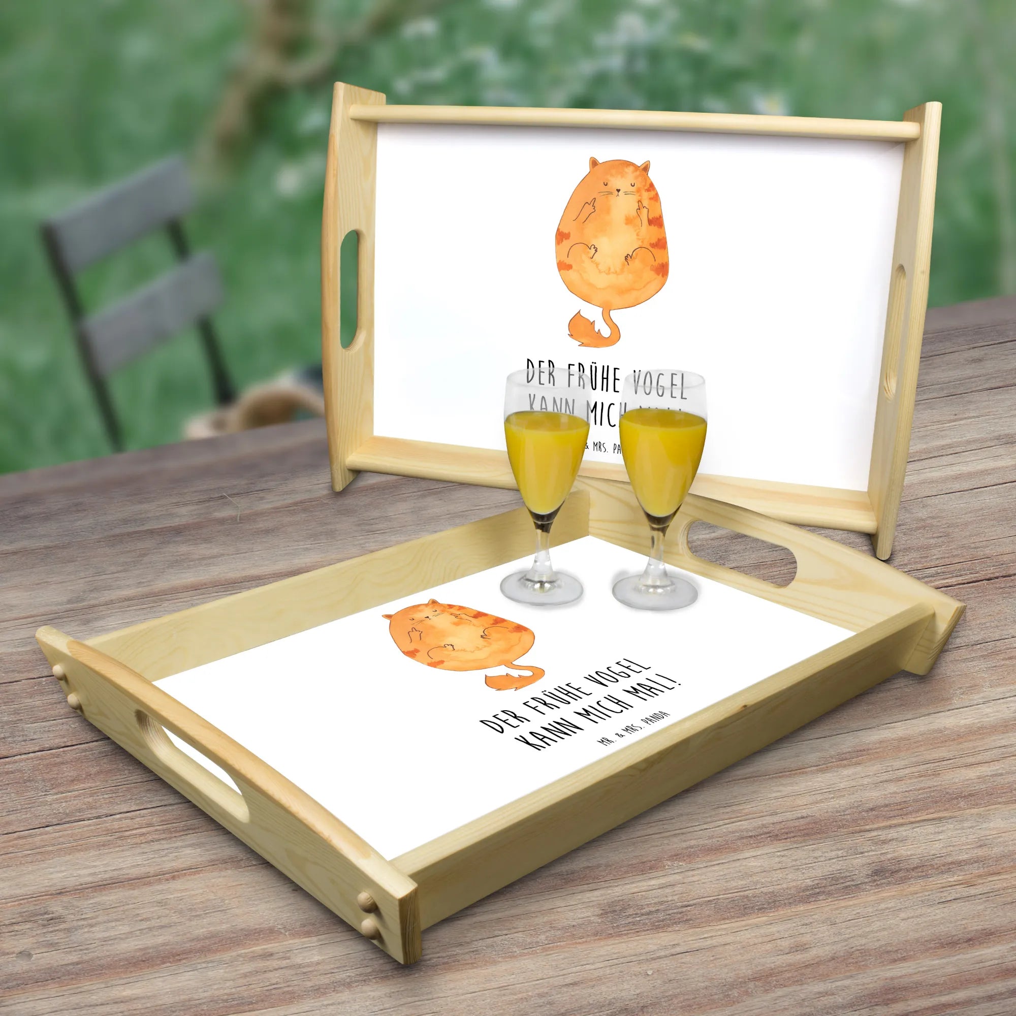 Serviertablett Katze Frühaufsteher - mit Spruch - Gelb Pastell