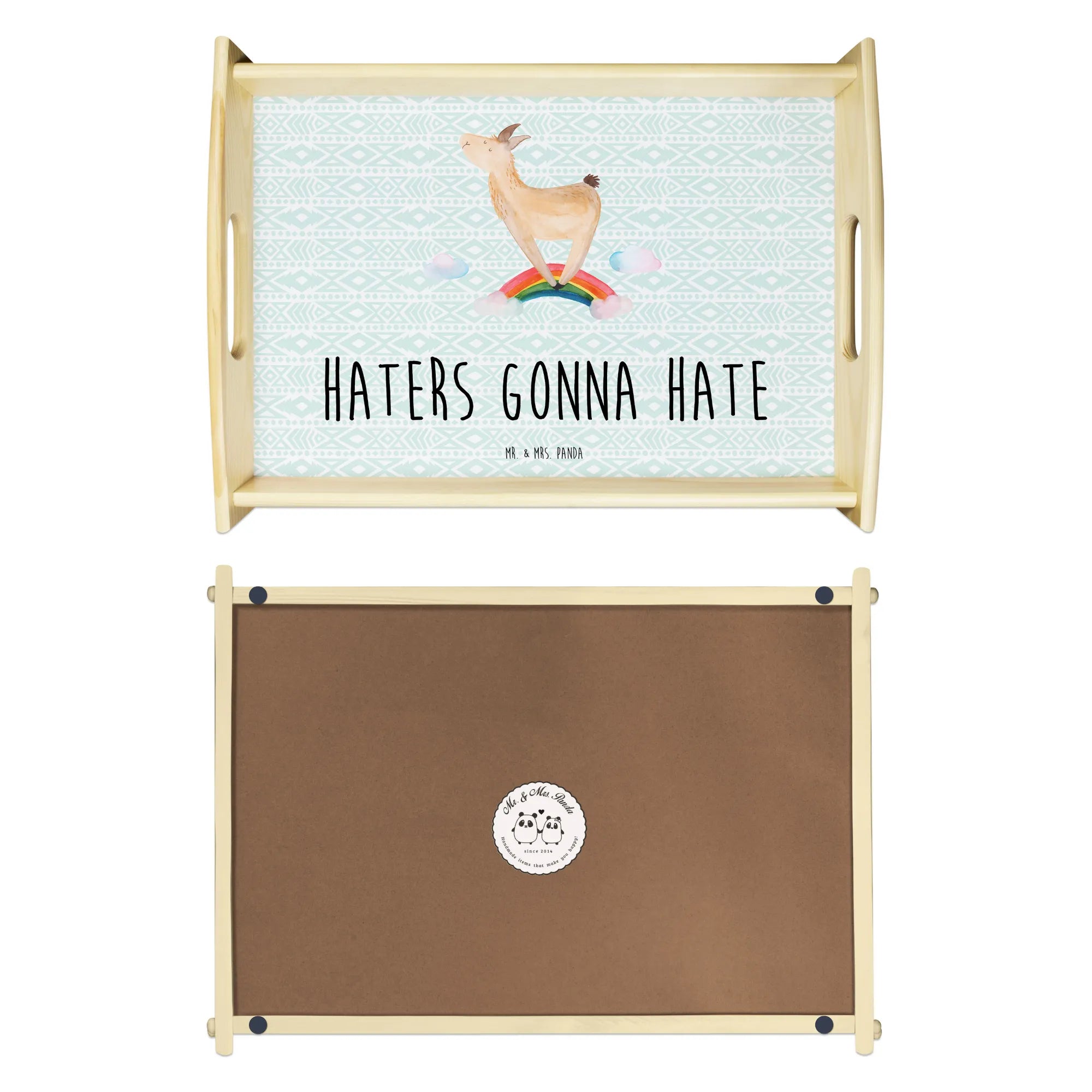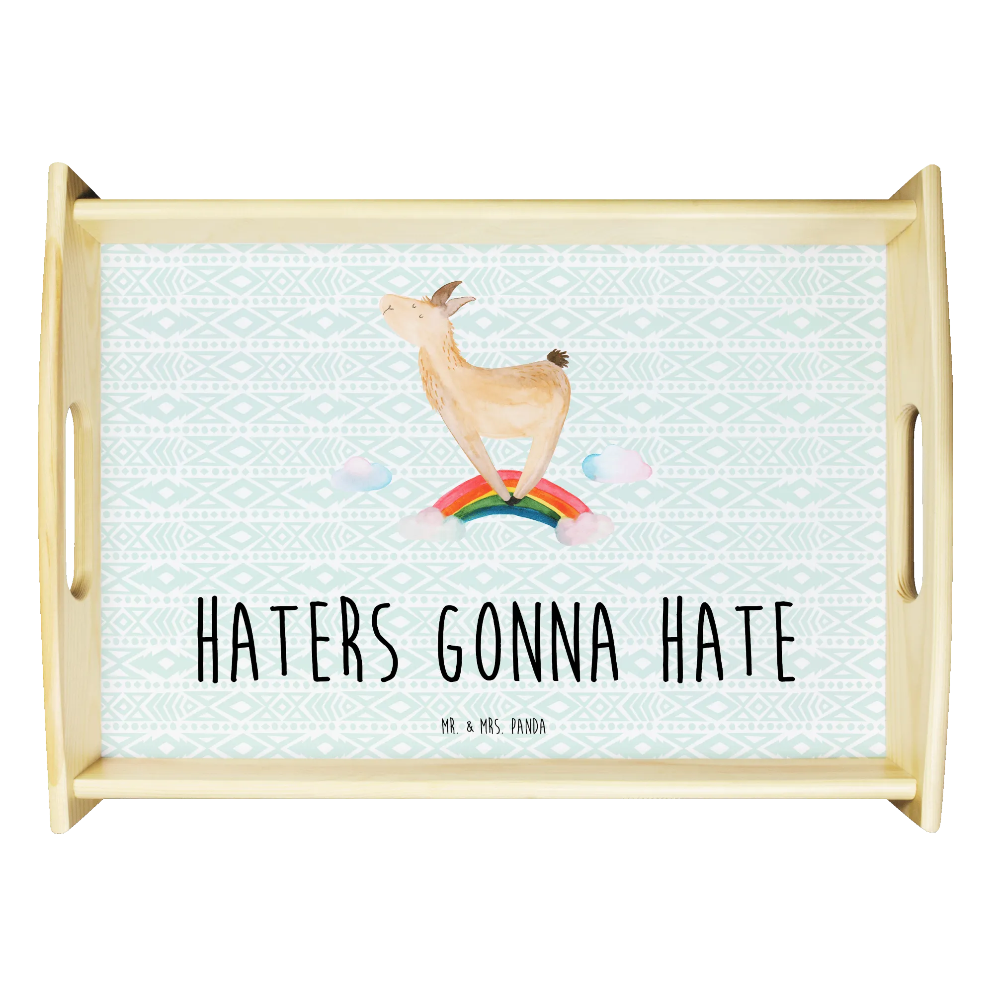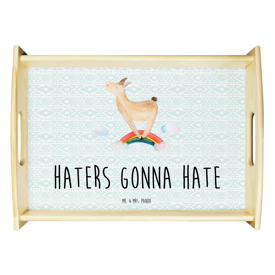 Serviertablett Lama Regenbogen - mit Spruch - Aztekenblau