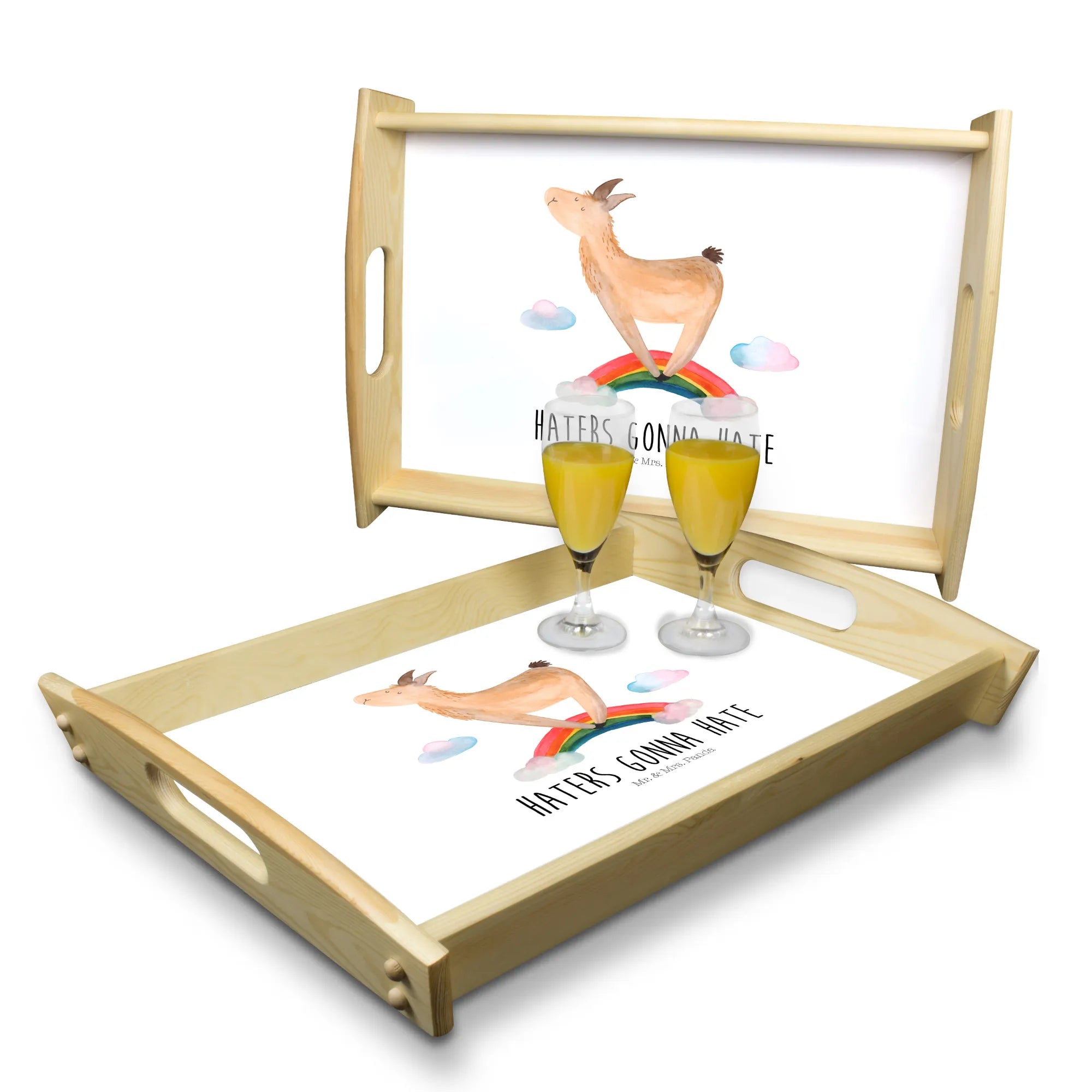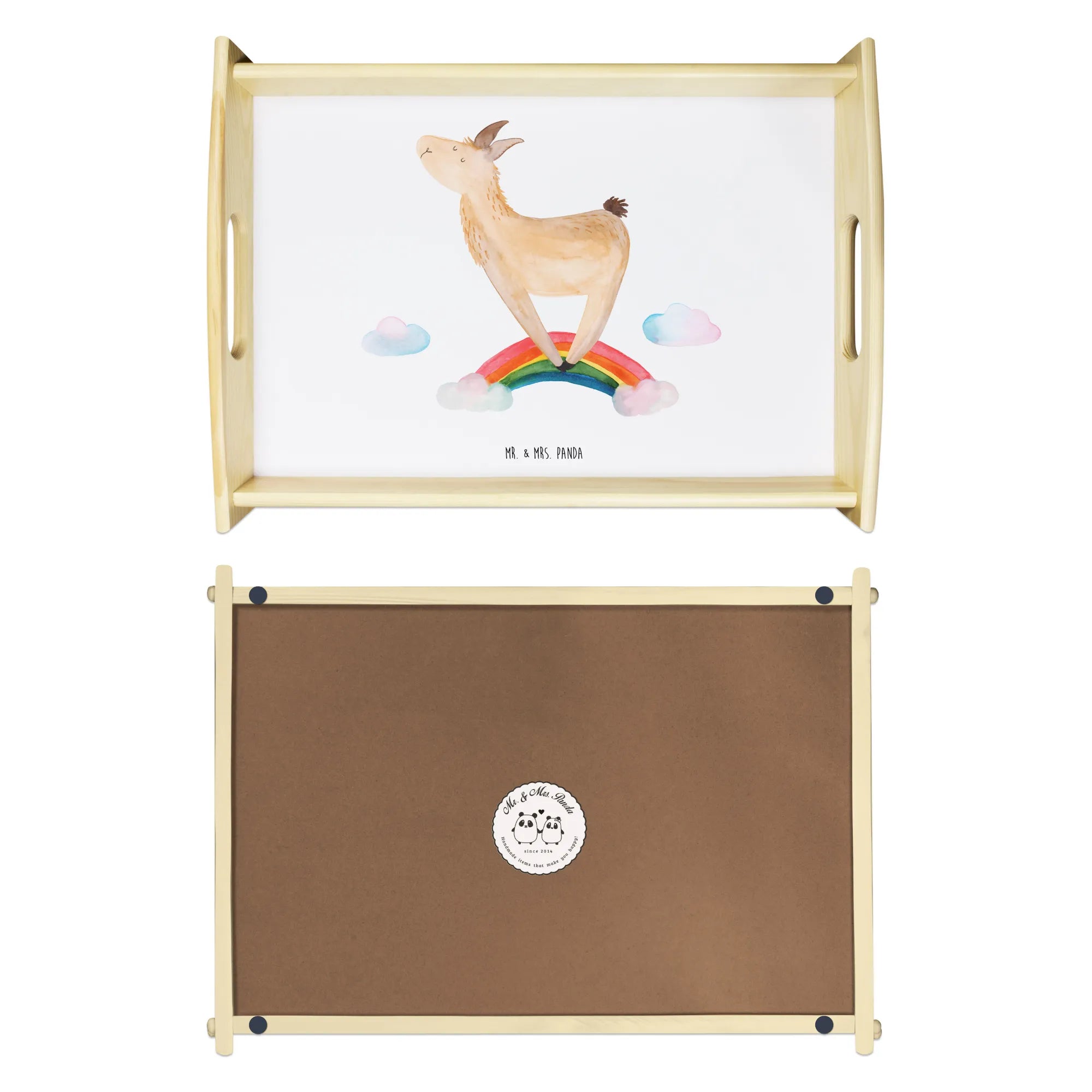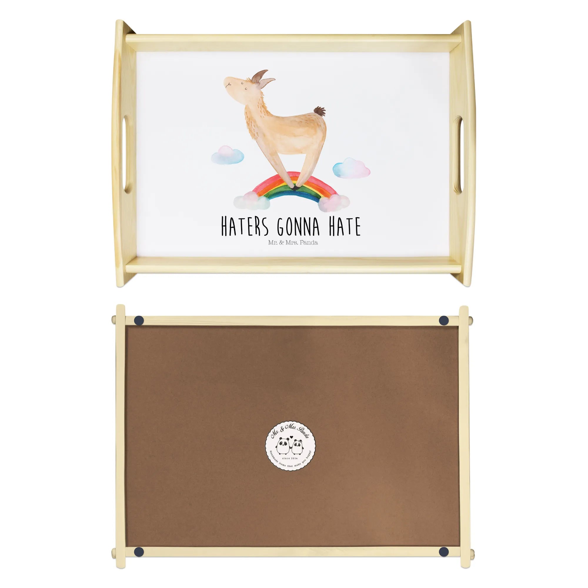 Serviertablett Lama Regenbogen - mit Spruch - Aztekenblau
