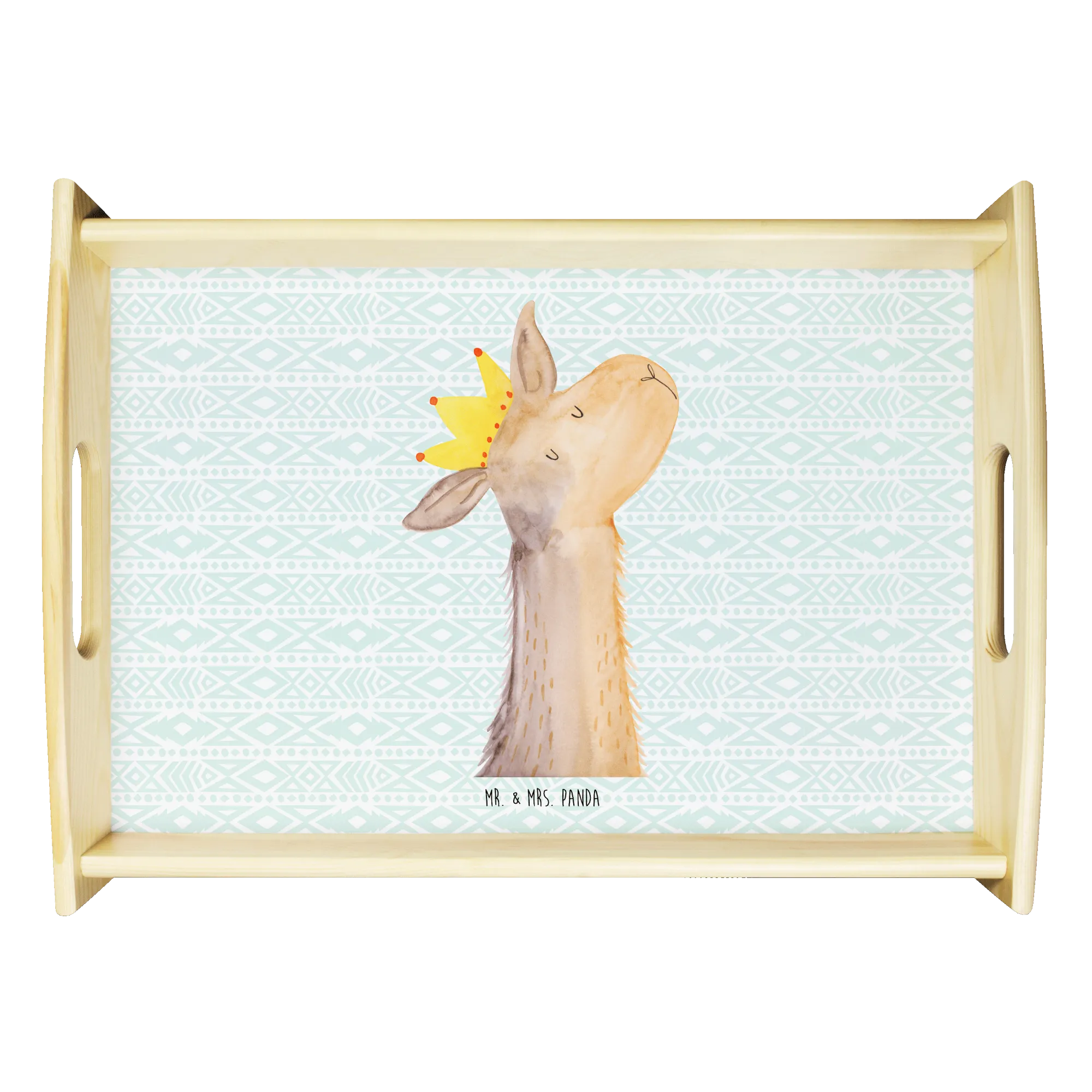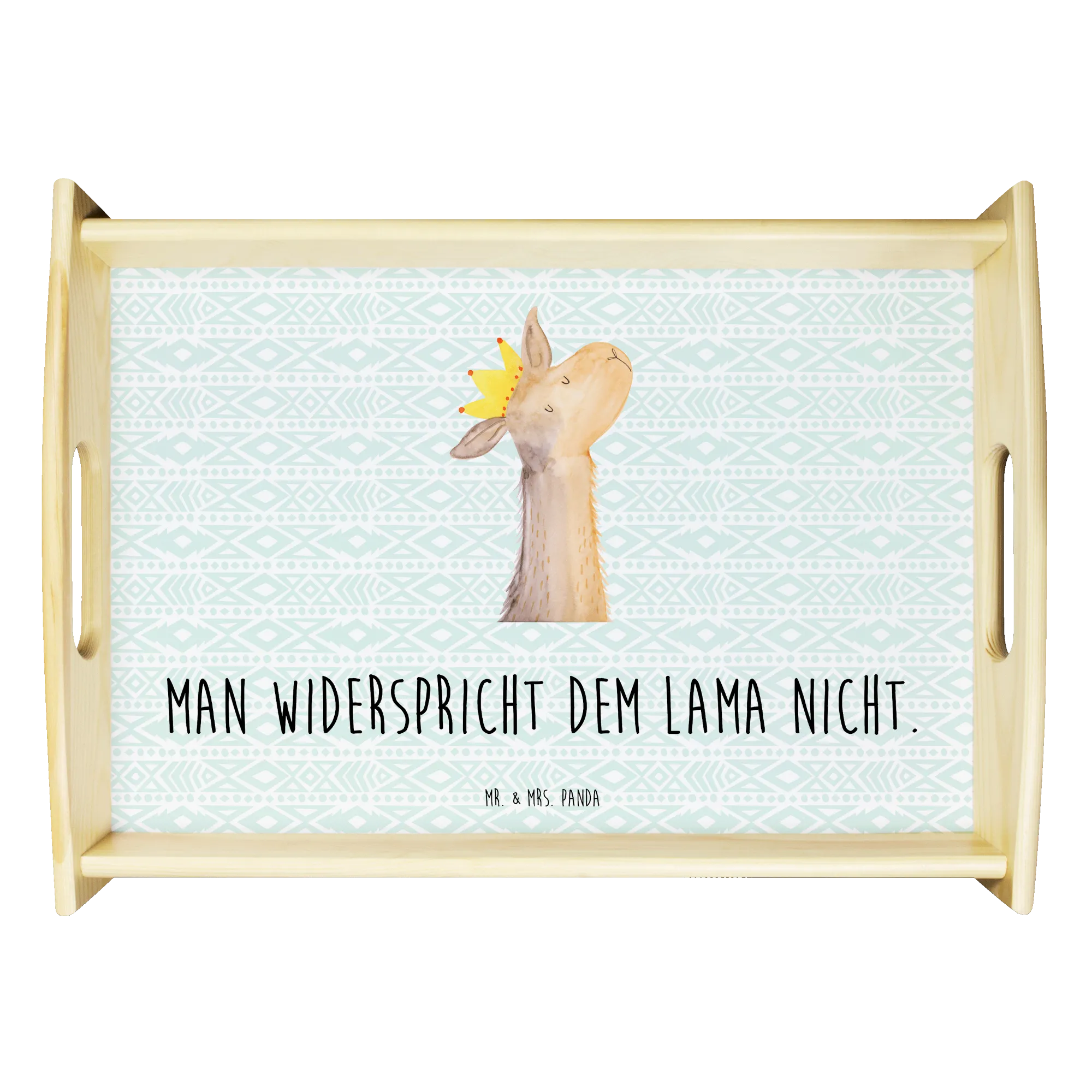 Serviertablett Lamakopf König - mit Spruch - Aztekenblau