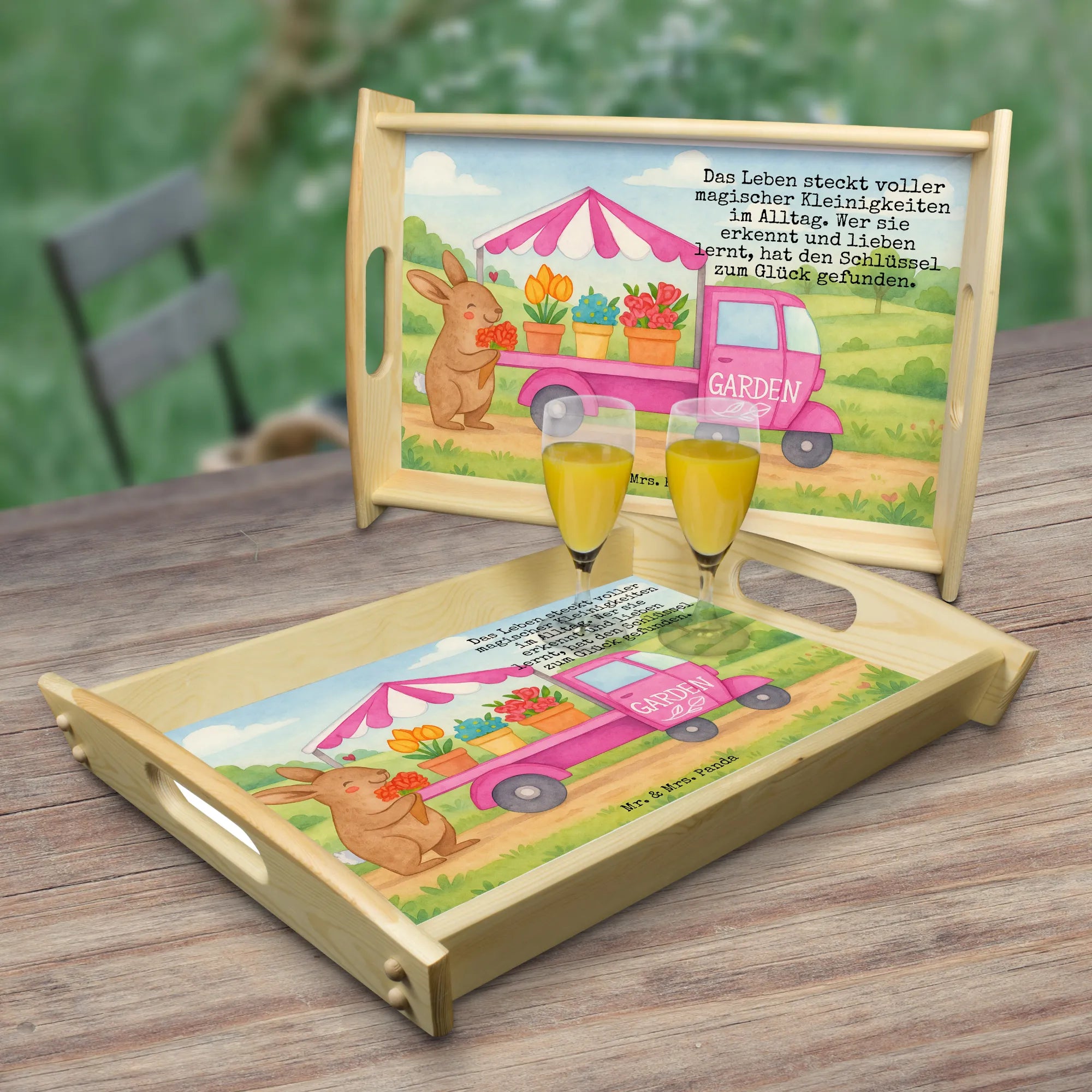 Serviertablett Osterhase Blumenwagen Design