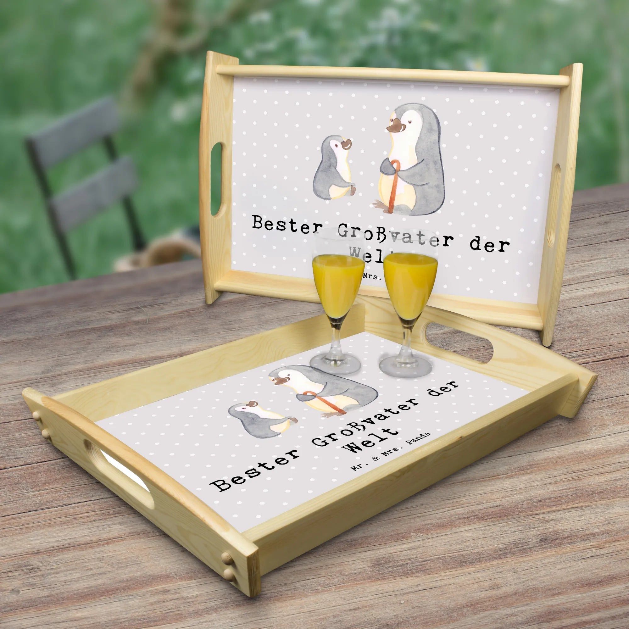 Serviertablett Pinguin Bester Großvater der Welt - Grau Pastell