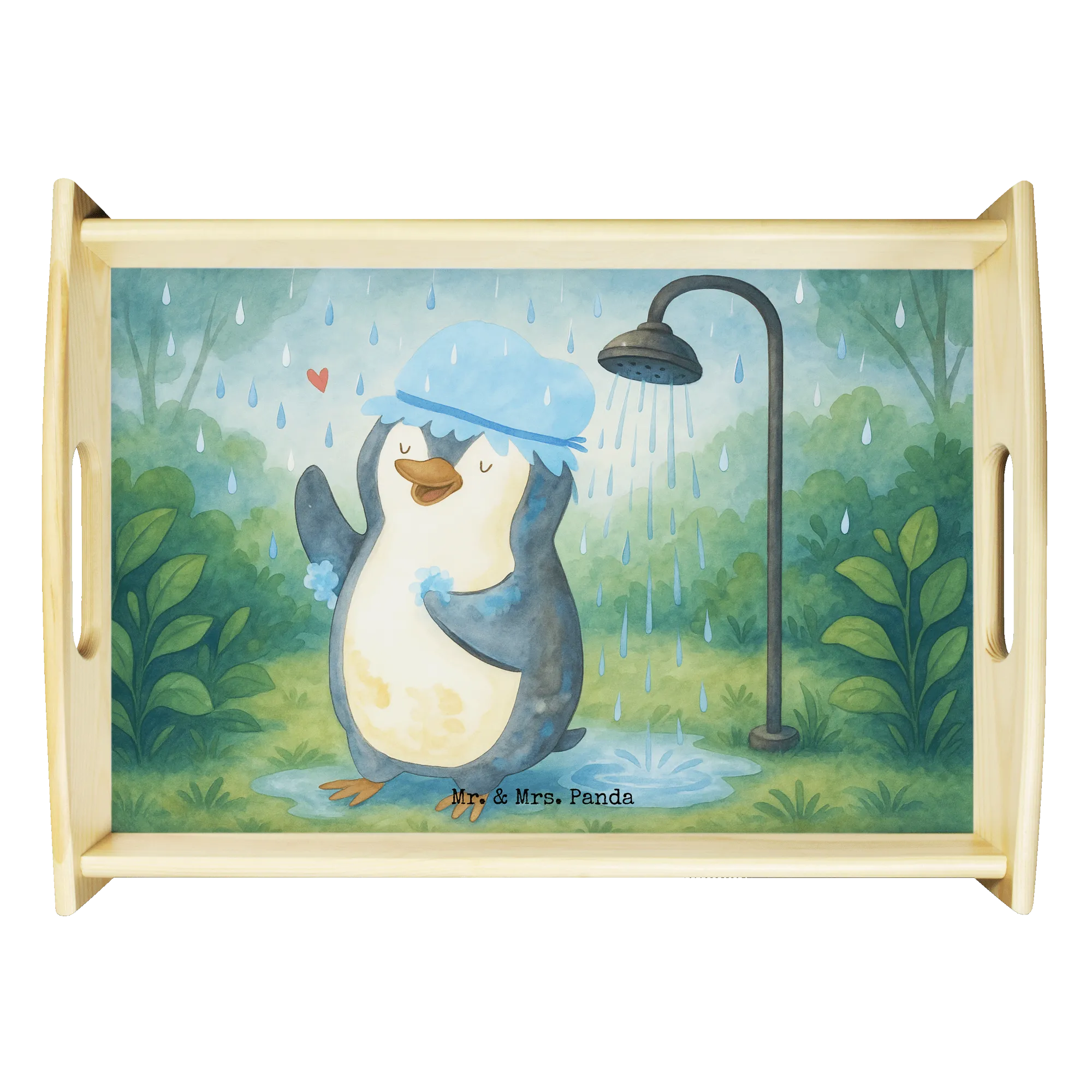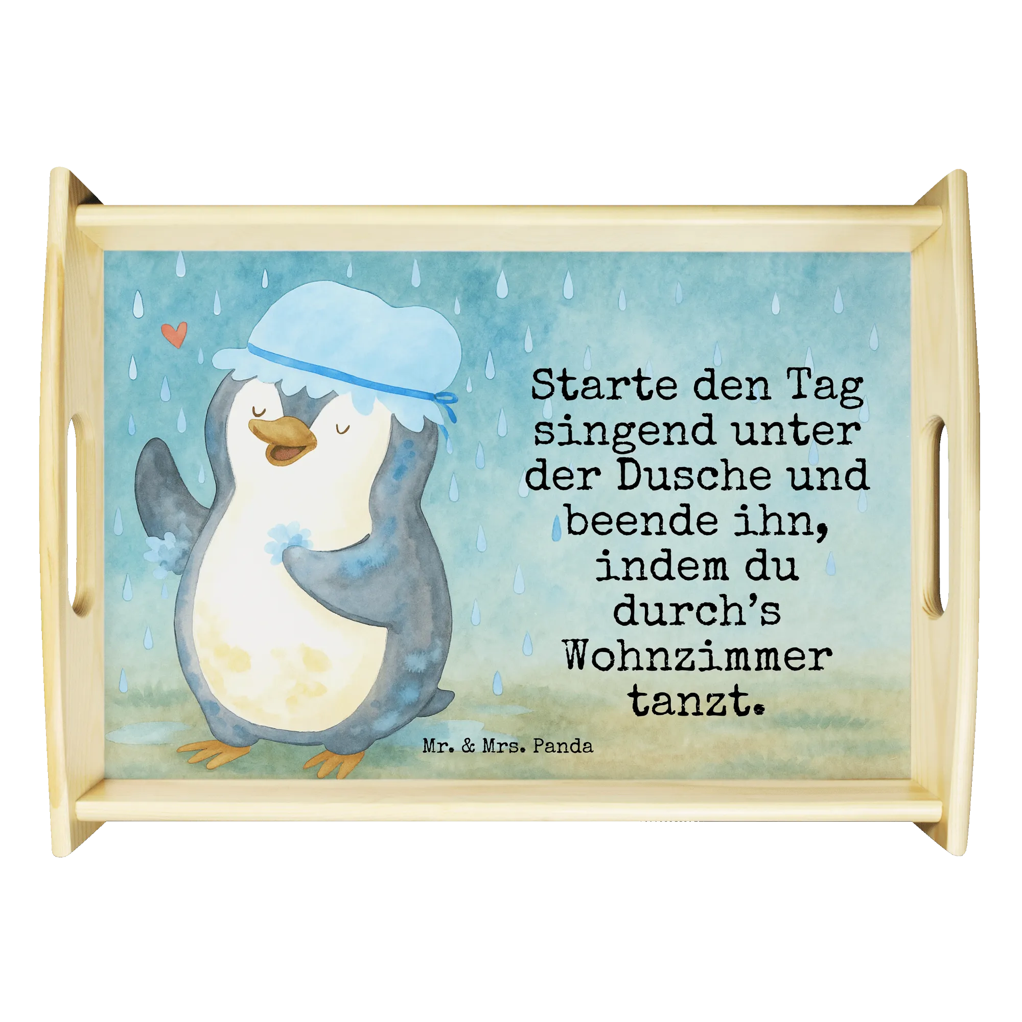 Inspirierendes Pinguin Dusche Motiv von Mr. & Mrs. Panda - Täglicher Glückbringer für dein Zuhause