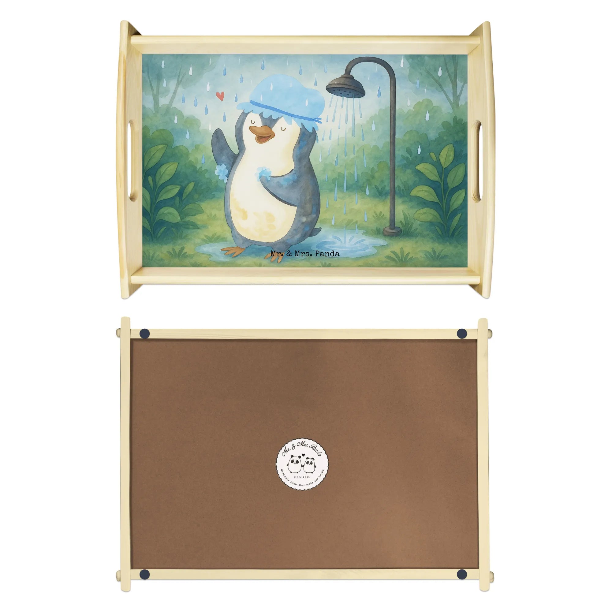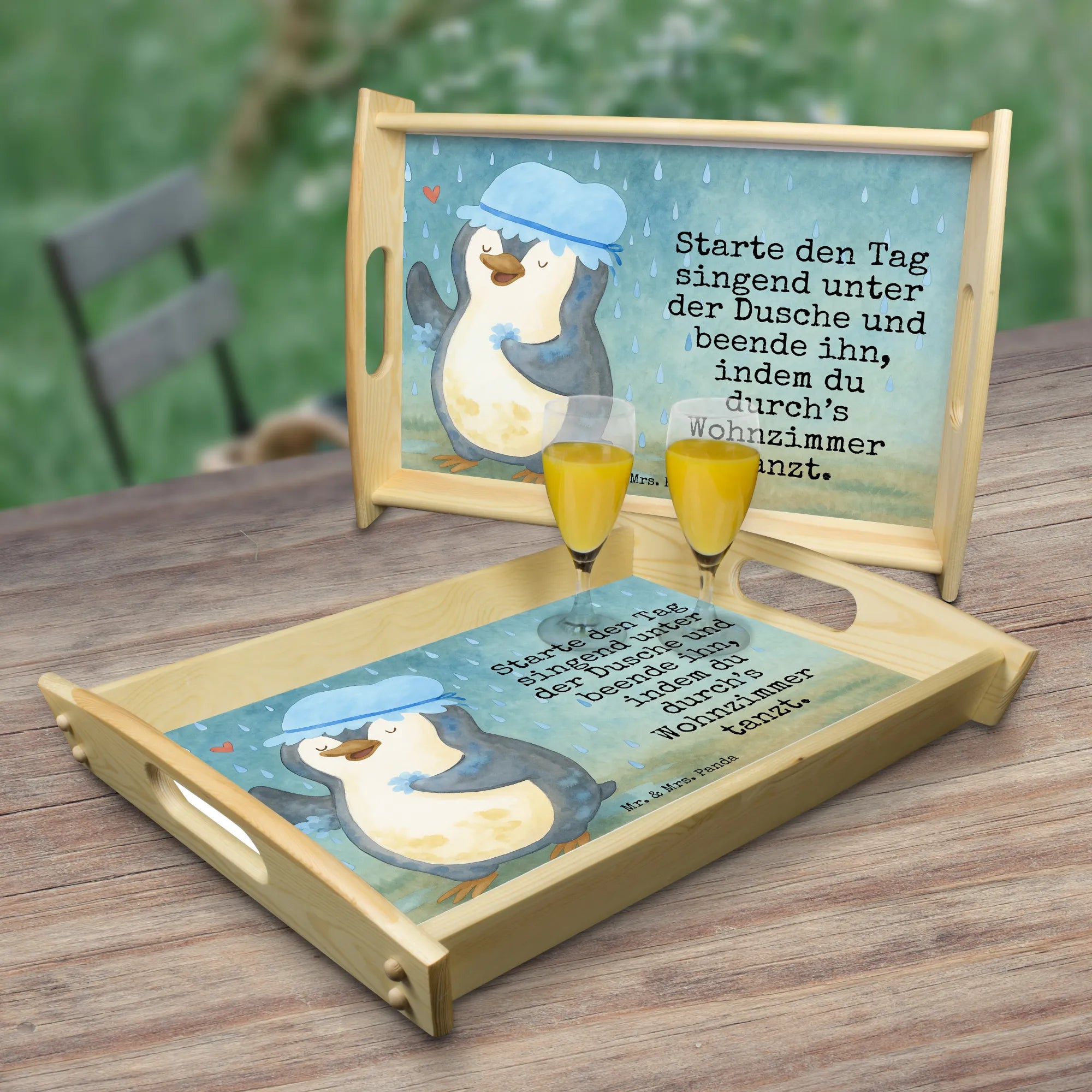 Serviertablett Pinguin Duschen Design - mit Spruch