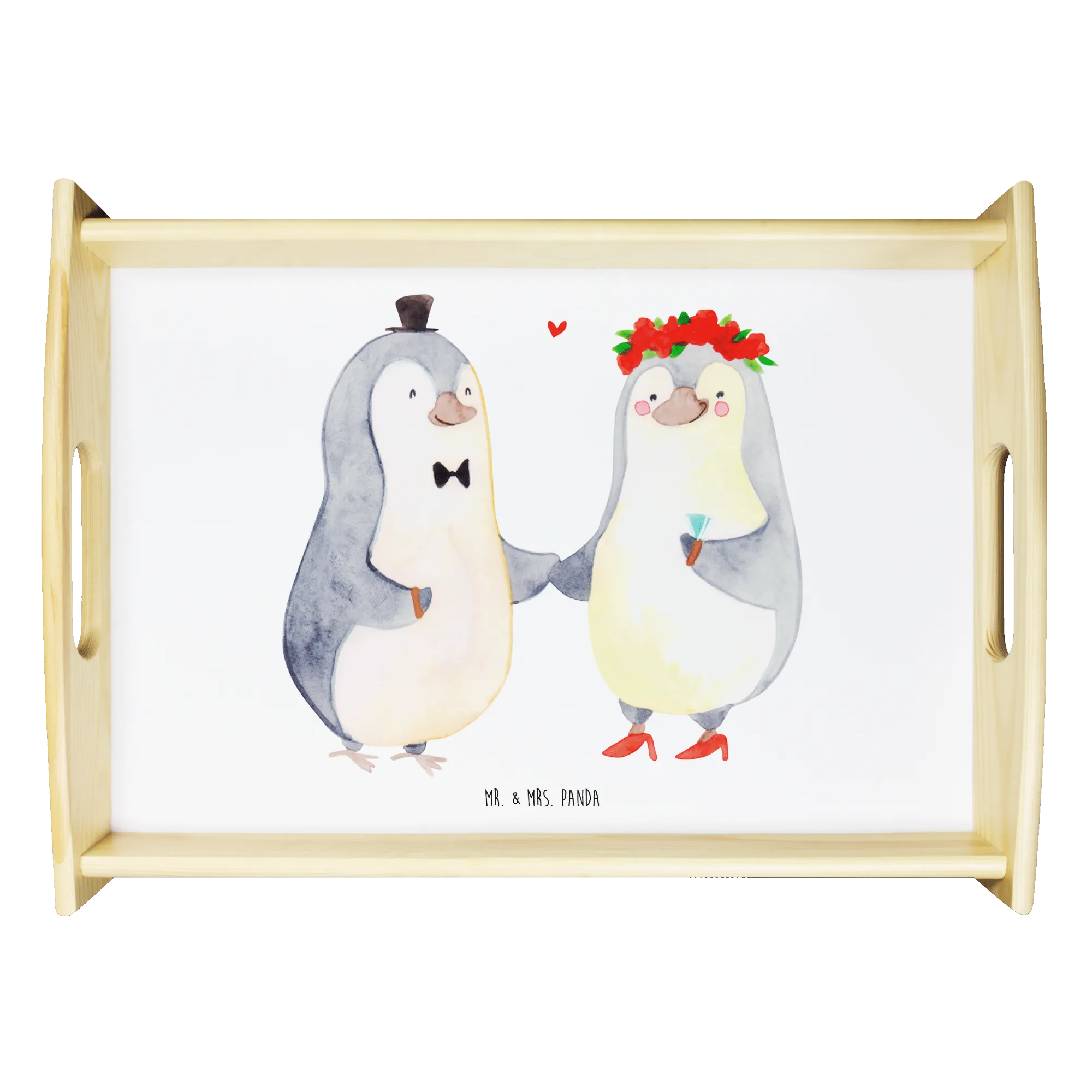 Das Serviertablett Pinguin Heirat aus der Liebe Kollektion von Mr. & Mrs. Panda ist das perfekte Geschenk für alle, die die Liebe feiern möchten. Mit seinem einzigartigen Design, das zwei stilisierte Pinguin-Figuren zeigt, die in feierlicher Kleidung aneinander gefügt sind, vermittelt es ein Gefühl von Zweisamkeit und Verbundenheit. Der Bräutigam mit Hut und Fliege und die Braut mit Blumenkranz strahlen festliche Eleganz aus. Mit dem Slogan 'Das Leben ist schön zu zweit!' ist dieses Tablett nicht nur ein praktisches Utensil, sondern auch eine süße Erinnerung an die Liebe, die wir miteinander teilen.