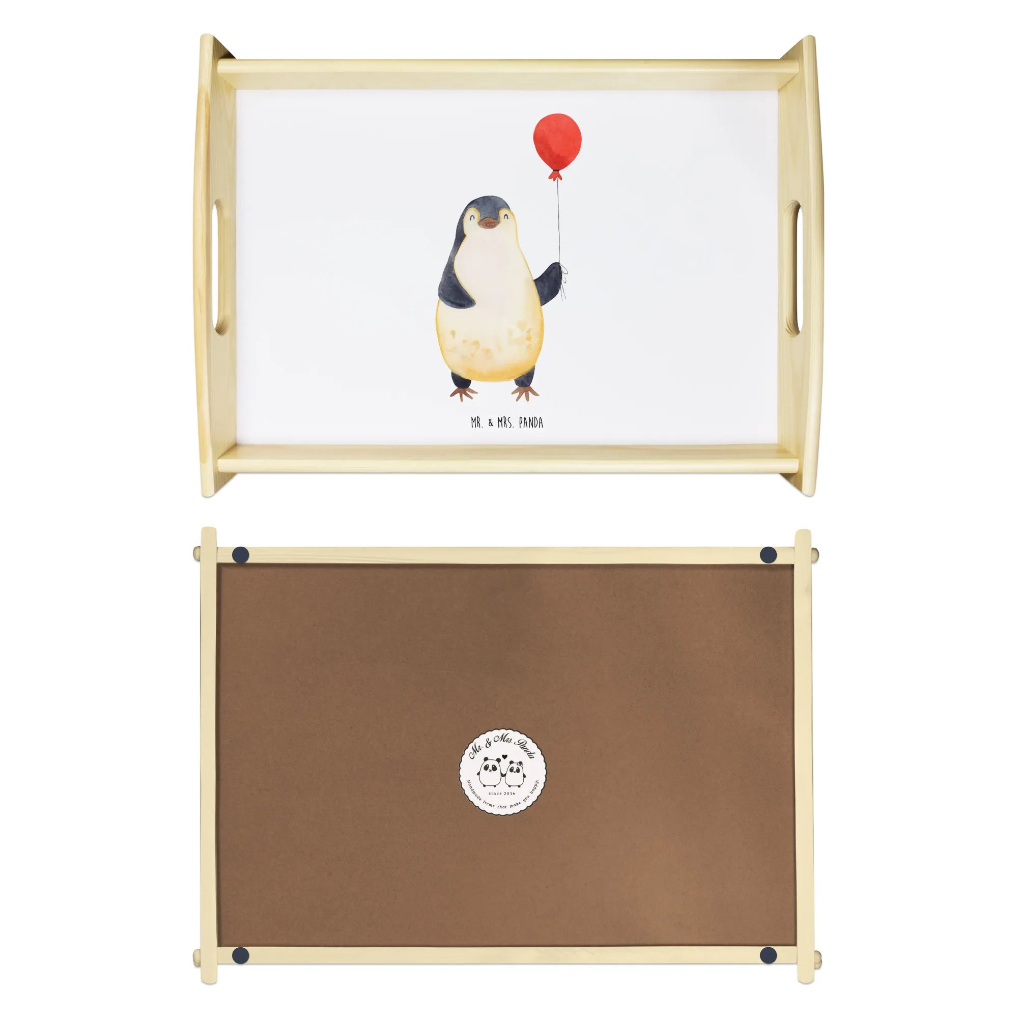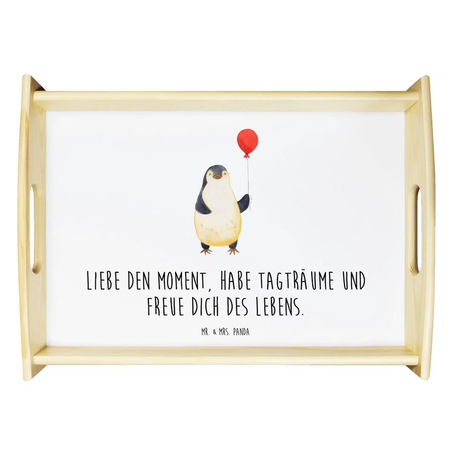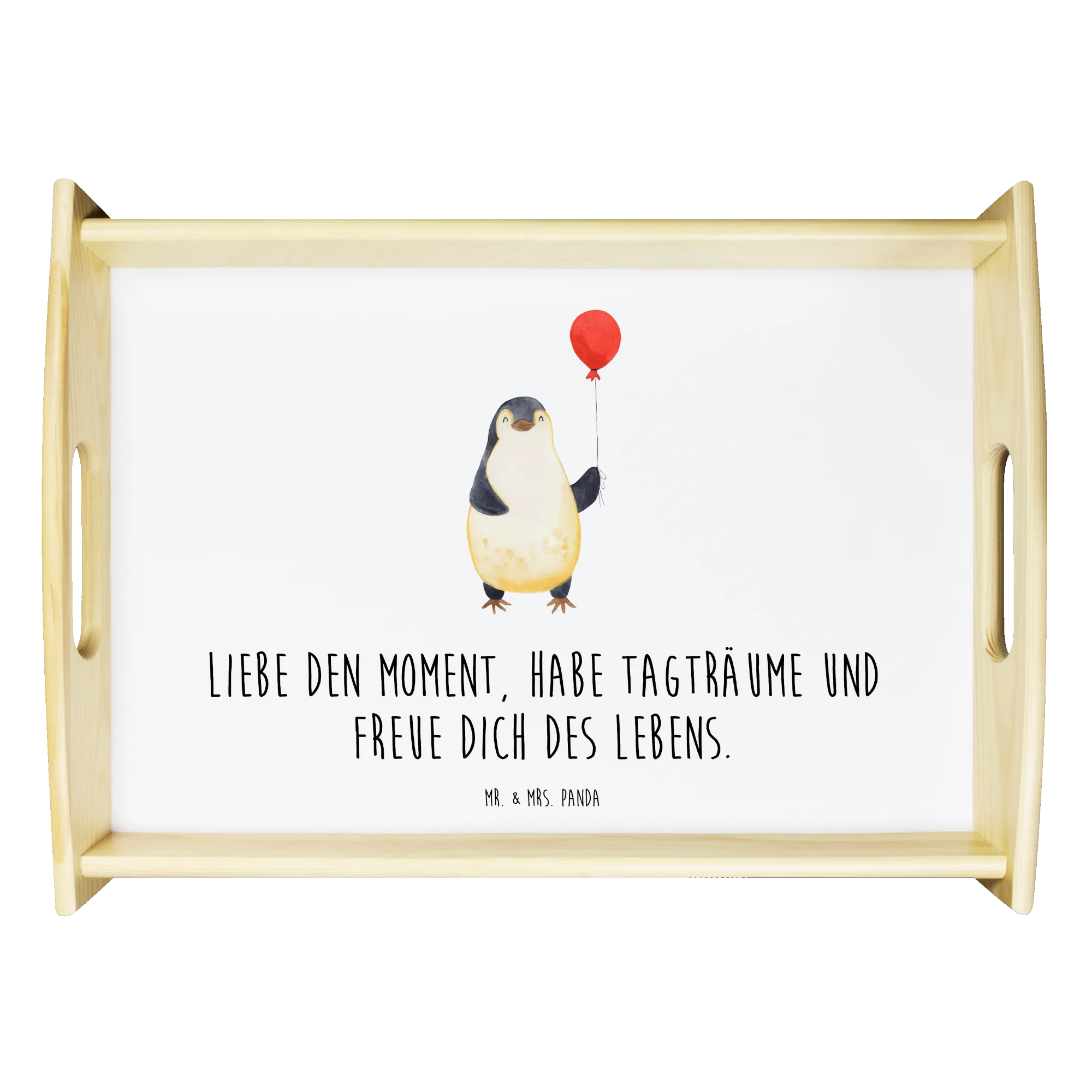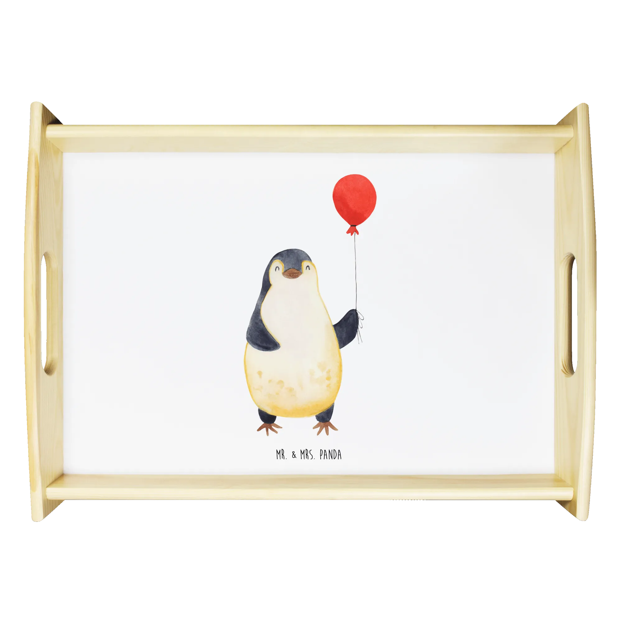 Entdecke unser bezauberndes Serviertablett mit dem liebevollen Motiv Pinguin Luftballon, das sich perfekt zum Verschenken eignet! Dieses wunderschöne und einzigartige Serviertablett von Mr. & Mrs. Panda wurde aus hochwertigem, lasiertem Echtholz gefertigt und bringt Freude in jeden Haushalt.
