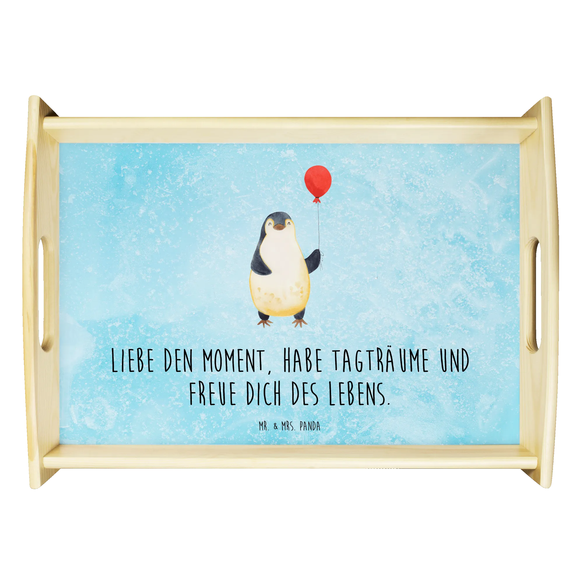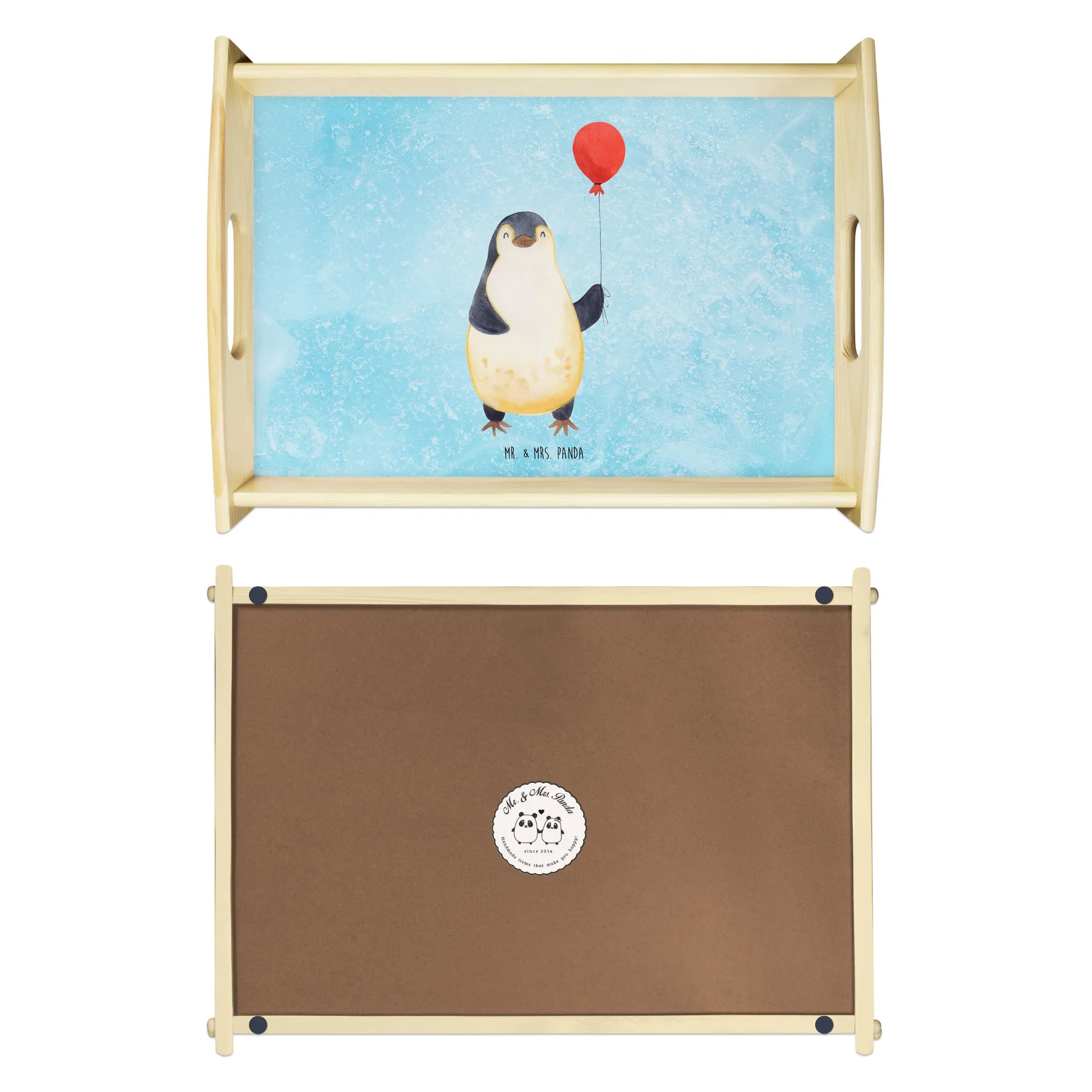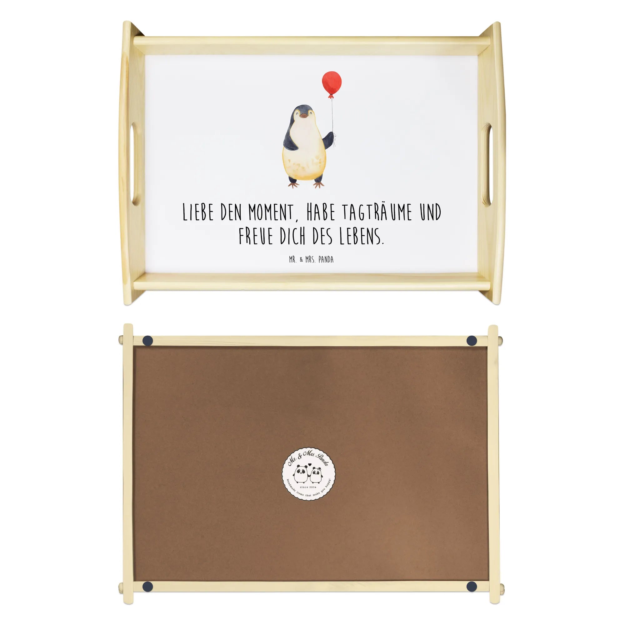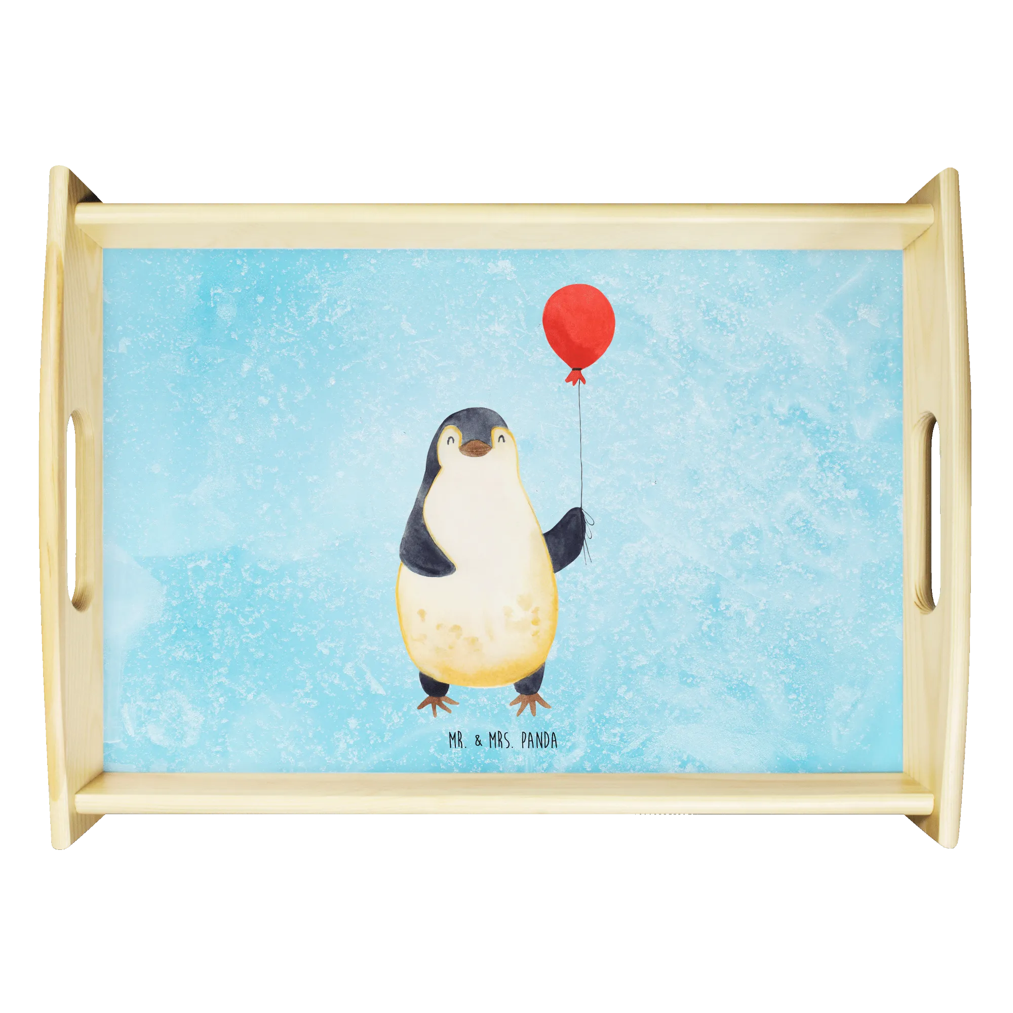 Entdecke unser bezauberndes Serviertablett mit dem liebevollen Motiv Pinguin Luftballon, das sich perfekt zum Verschenken eignet! Dieses wunderschöne und einzigartige Serviertablett von Mr. & Mrs. Panda wurde aus hochwertigem, lasiertem Echtholz gefertigt und bringt Freude in jeden Haushalt.