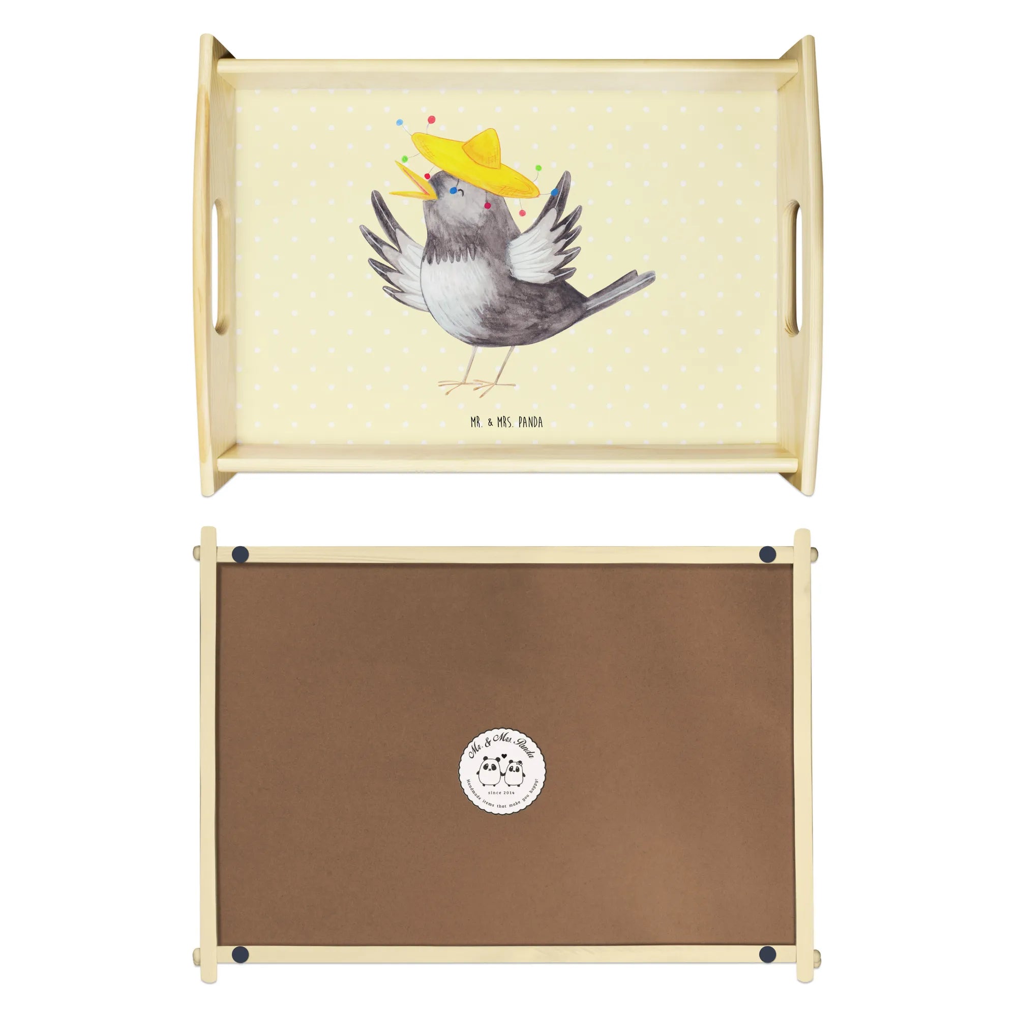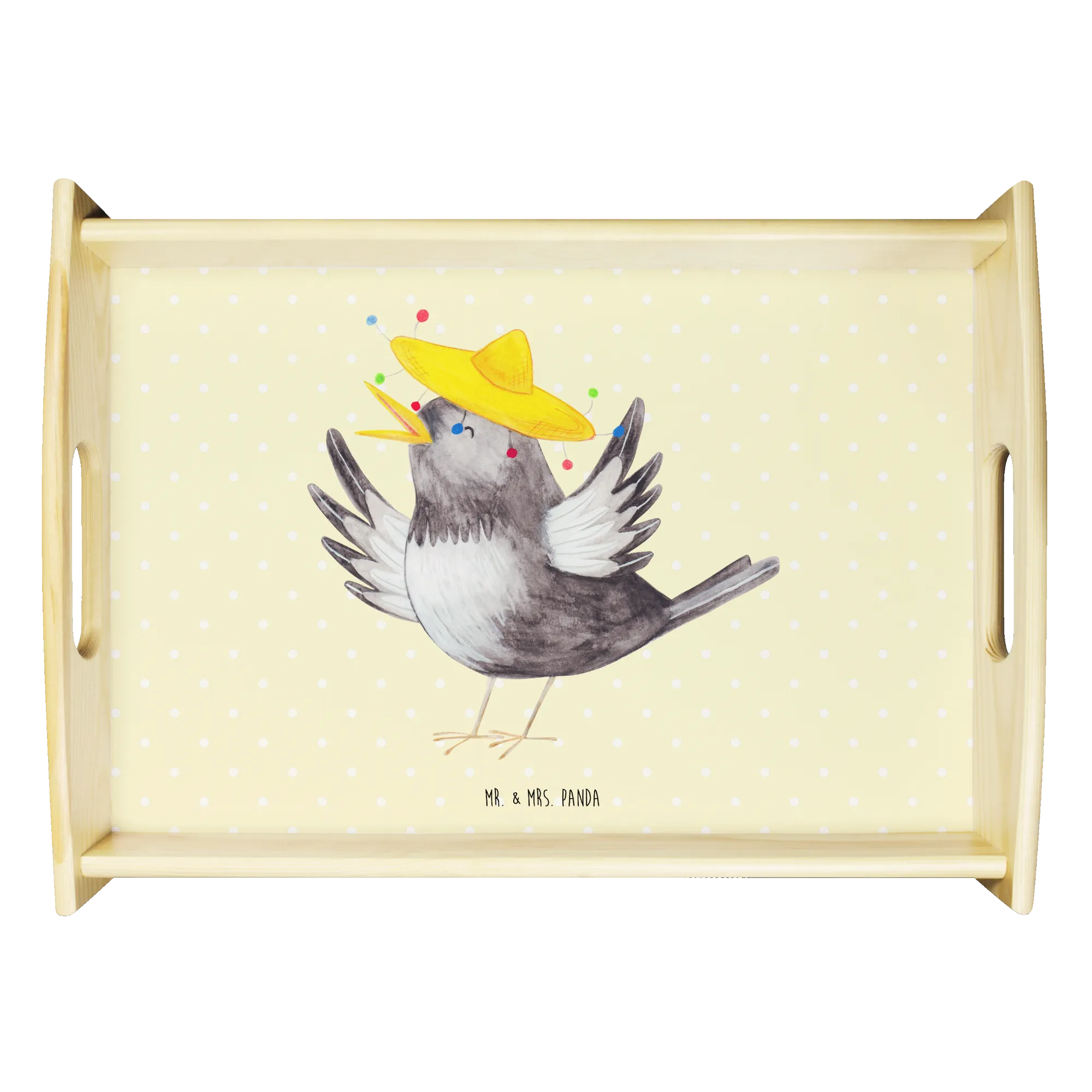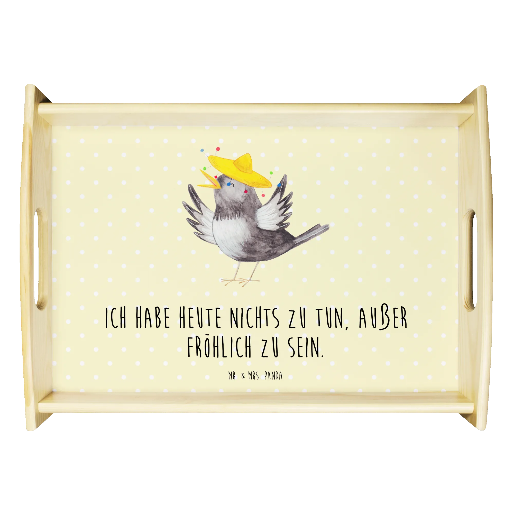 Serviertablett Rabe Sombrero - mit Spruch - Gelb Pastell