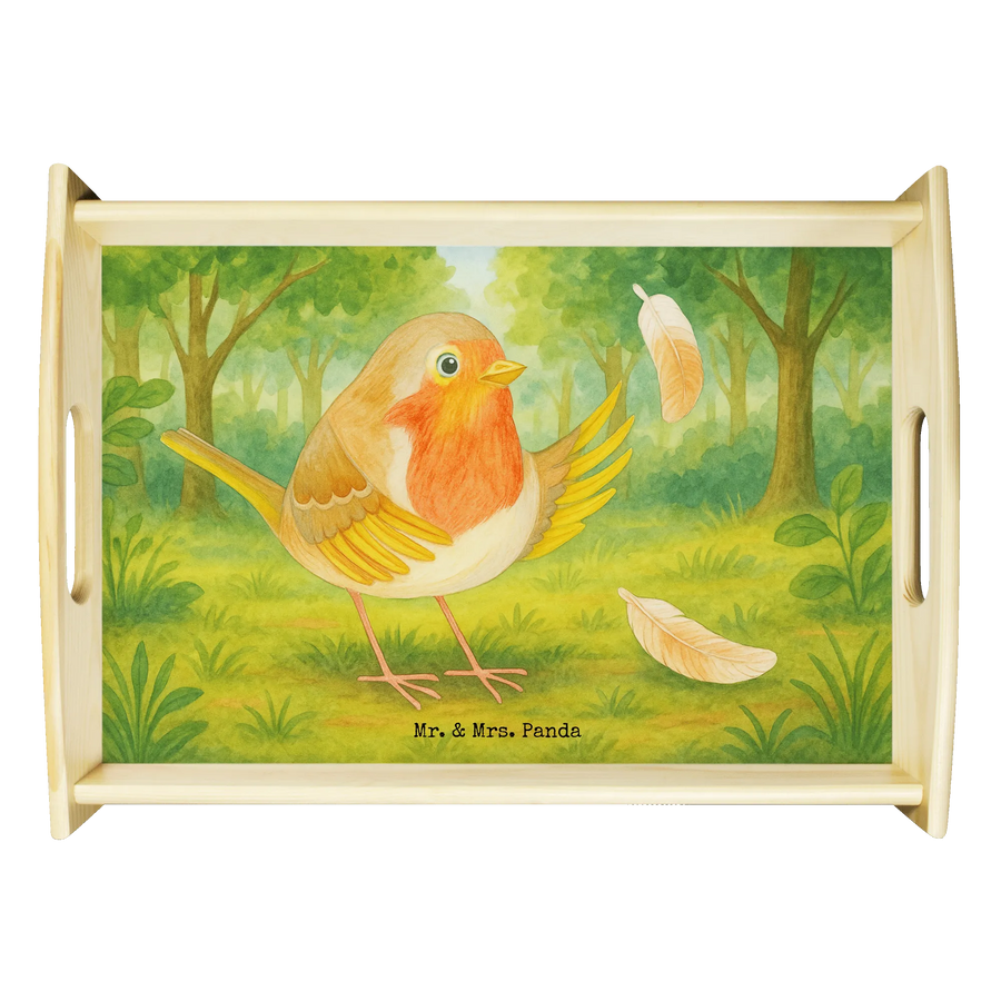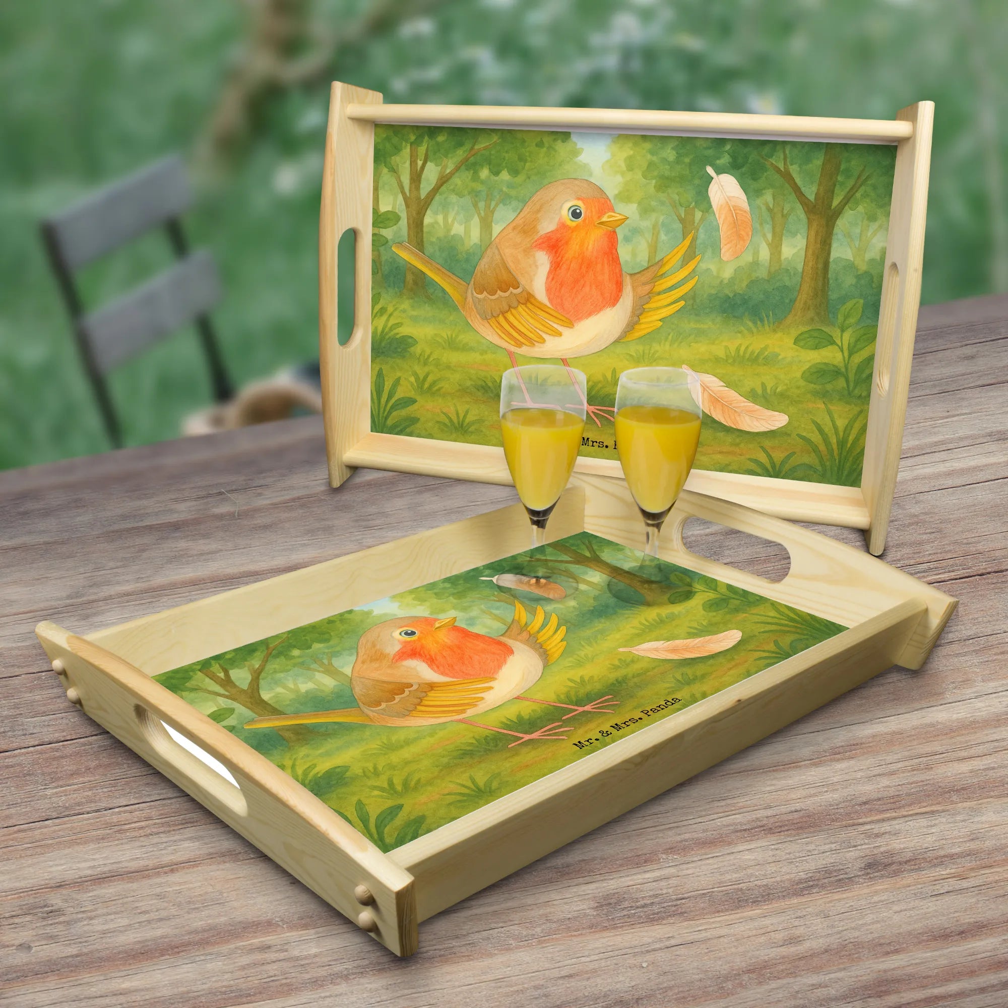 Das einzigartige Serviertablett von Mr. & Mrs. Panda wird dein Frühstücksbuffet zum Erlebnis machen! Mit seinen großzügigen Maßen von 480 mm x 480 mm x 65 mm und einem Gewicht von 925 g ist es die perfekte Kombination aus Funktionalität und Stil. Aus hochwertigem, lasiertem Echtholz gefertigt, verzückt das Tablett mit einem strahlenden Druck, der für gute Laune sorgt. Ob im Bett oder auf dem Sofa, die seitlichen Griffmulden garantieren ein angenehmes Handling. Die spezielle Anti-Rutsch Beschichtung sorgt dafür, dass alles sicher an seinem Platz bleibt. Dank der kratzfesten Oberfläche ist das Tablett sehr pflegeleicht – einfach mit einem feuchten Tuch und etwas Spülmittel abwischen. Bitte nicht einweichen! Denke daran, dass die Anfertigung wegen der hohen Qualität etwas Zeit in Anspruch nimmt.