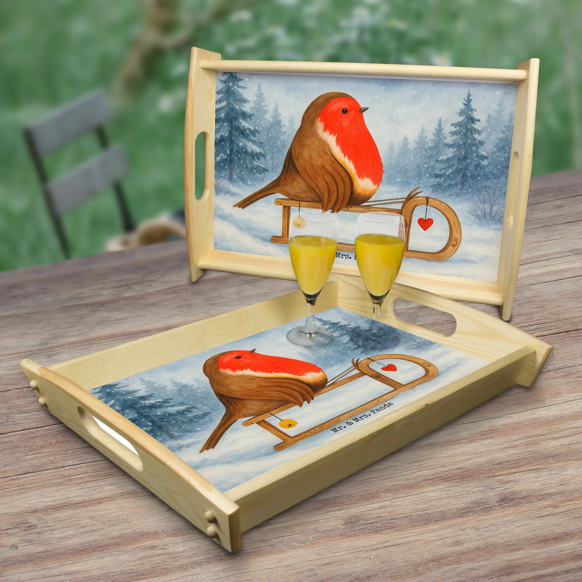 Serviertablett Rotkehlchen Schlitten Design – Mr. & Mrs. Panda