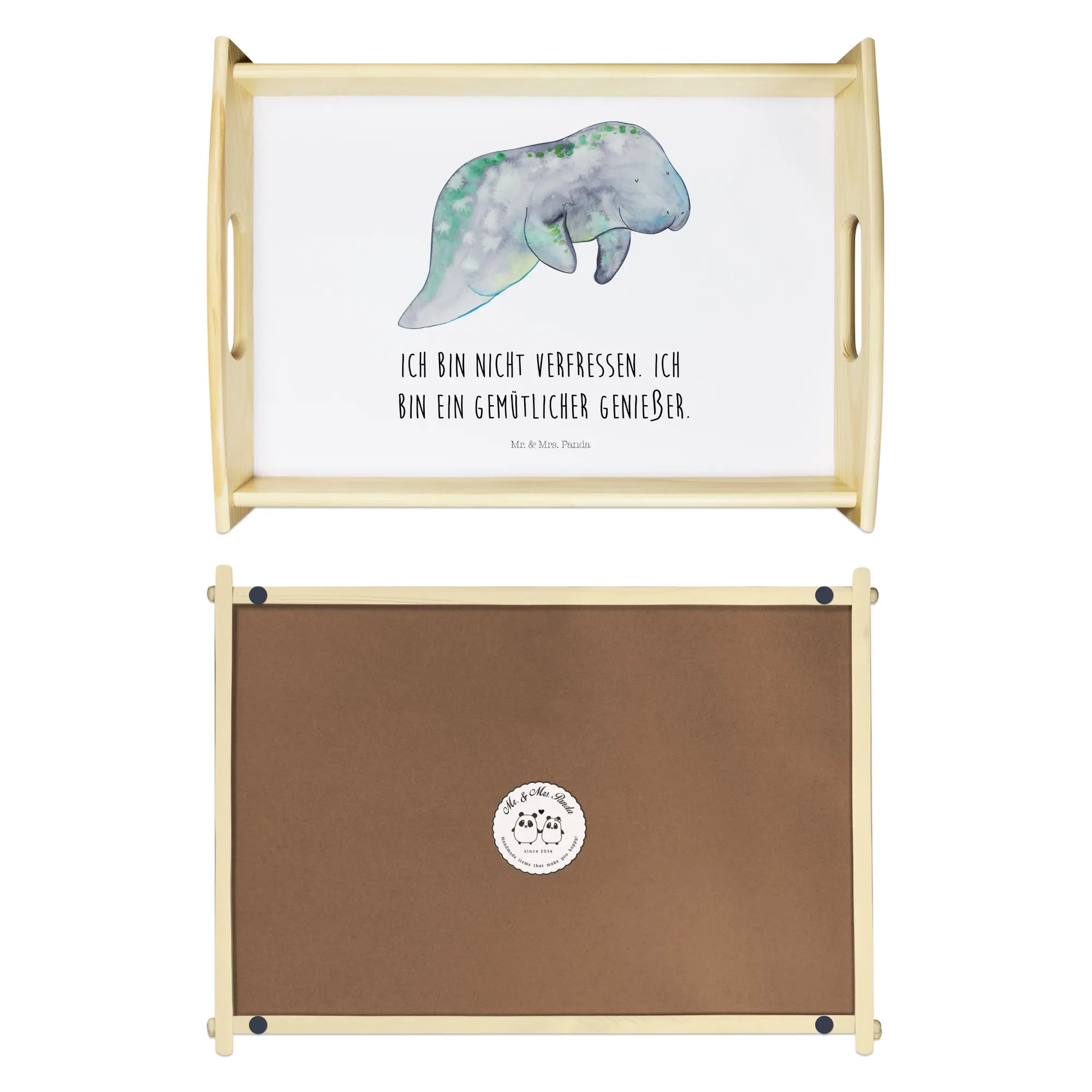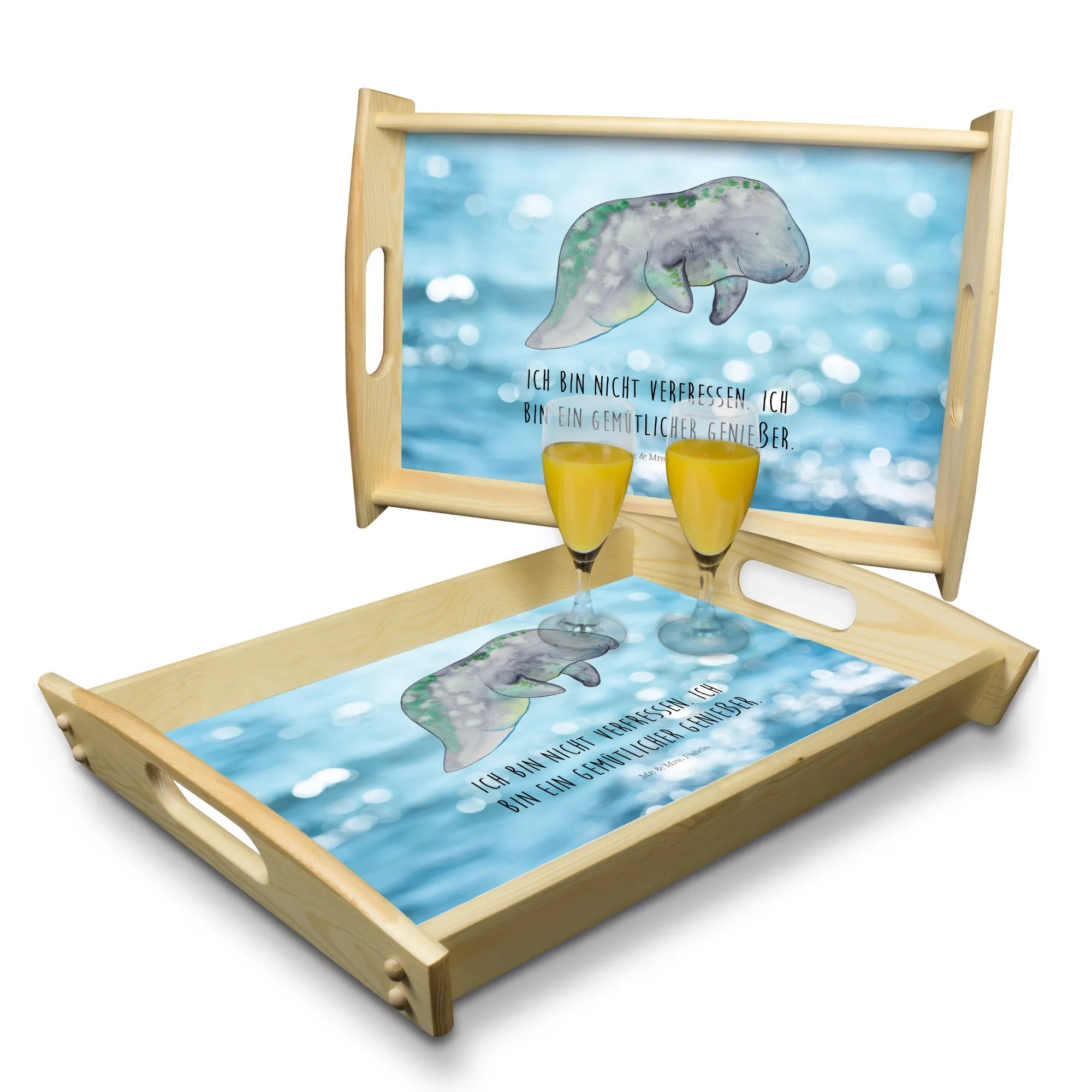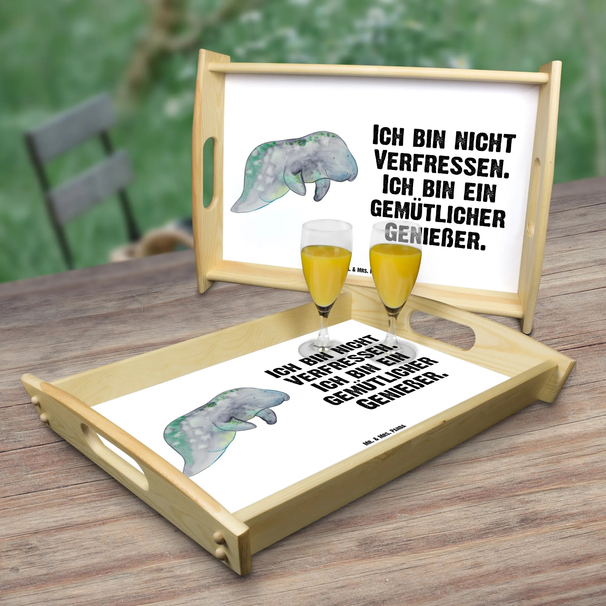 Das einzigartige Serviertablett von Mr. & Mrs. Panda wird dein Frühstücksbuffet zum Erlebnis machen! Mit seinen großzügigen Maßen von 480 mm x 480 mm x 65 mm und einem Gewicht von 925 g ist es die perfekte Kombination aus Funktionalität und Stil. Aus hochwertigem, lasiertem Echtholz gefertigt, verzückt das Tablett mit einem strahlenden Druck, der für gute Laune sorgt. Ob im Bett oder auf dem Sofa, die seitlichen Griffmulden garantieren ein angenehmes Handling. Die spezielle Anti-Rutsch Beschichtung sorgt dafür, dass alles sicher an seinem Platz bleibt. Dank der kratzfesten Oberfläche ist das Tablett sehr pflegeleicht – einfach mit einem feuchten Tuch und etwas Spülmittel abwischen. Bitte nicht einweichen! Denke daran, dass die Anfertigung wegen der hohen Qualität etwas Zeit in Anspruch nimmt.