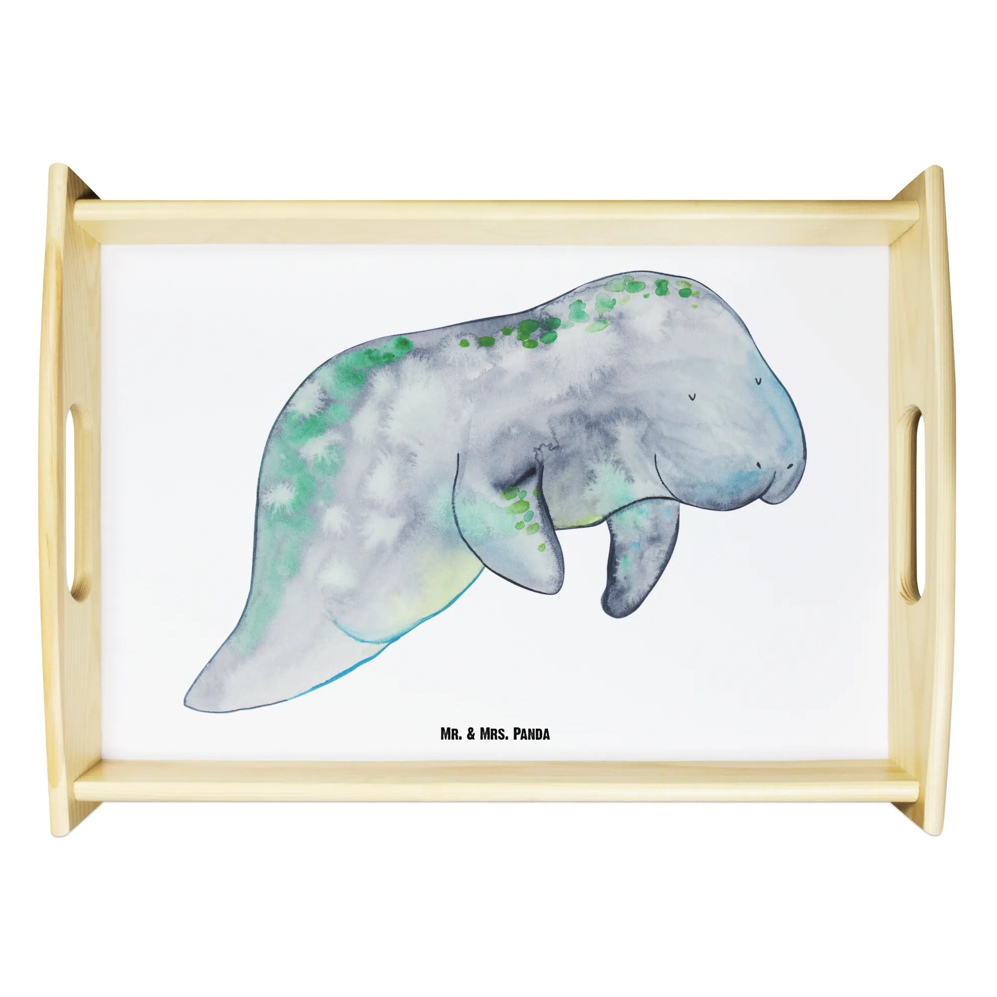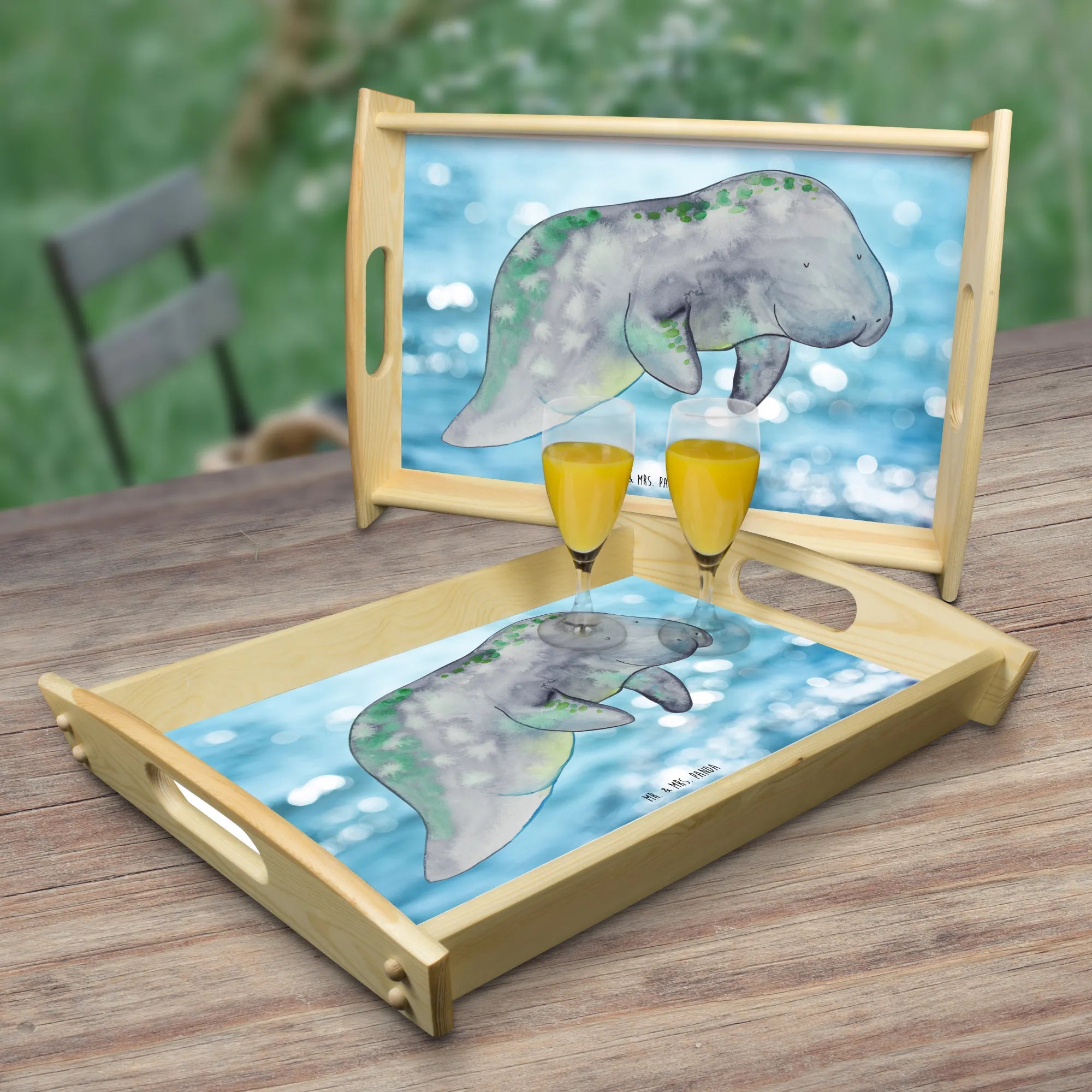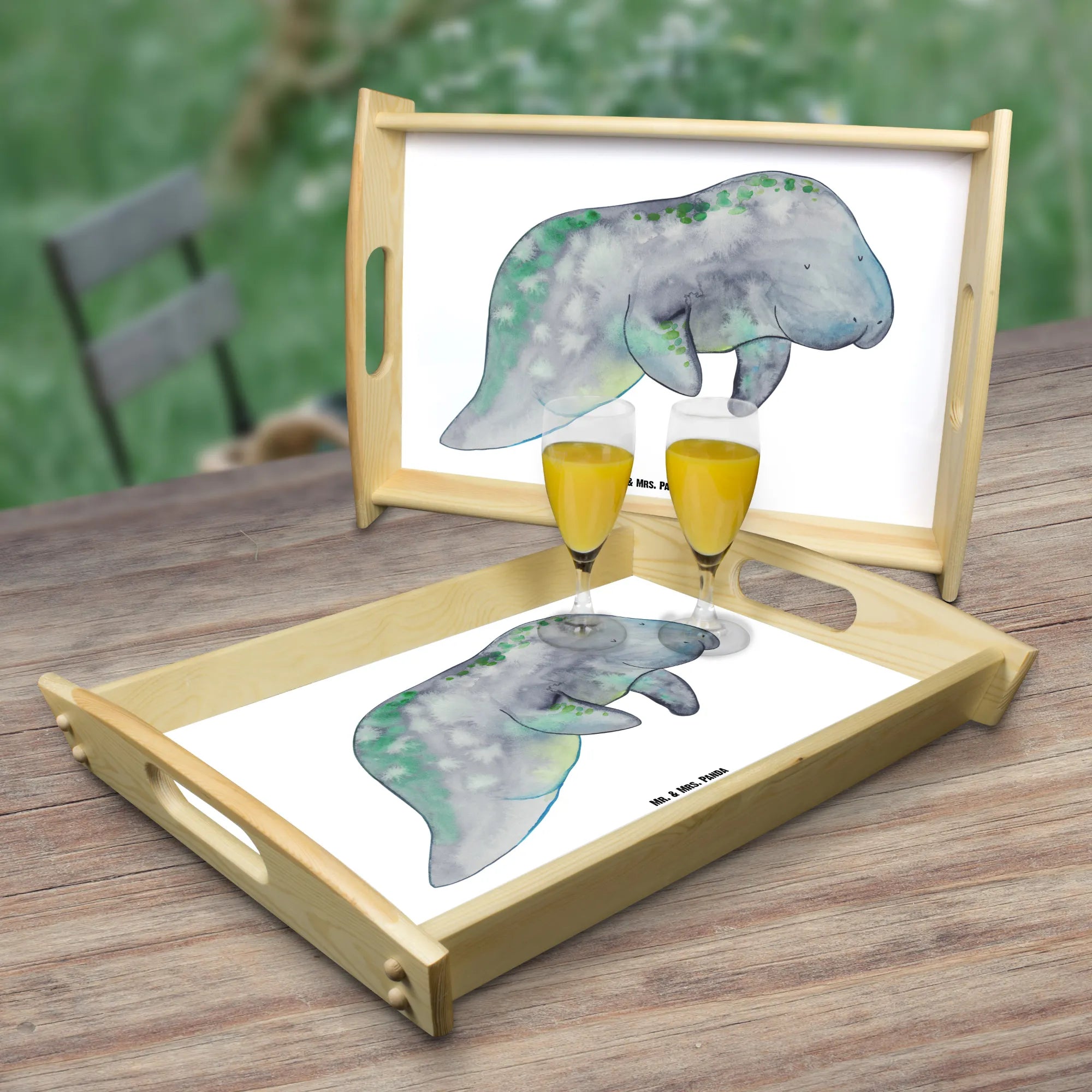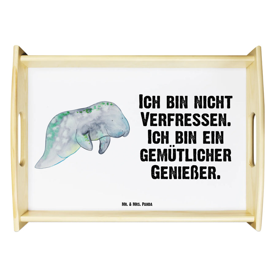 Das einzigartige Serviertablett von Mr. & Mrs. Panda wird dein Frühstücksbuffet zum Erlebnis machen! Mit seinen großzügigen Maßen von 480 mm x 480 mm x 65 mm und einem Gewicht von 925 g ist es die perfekte Kombination aus Funktionalität und Stil. Aus hochwertigem, lasiertem Echtholz gefertigt, verzückt das Tablett mit einem strahlenden Druck, der für gute Laune sorgt. Ob im Bett oder auf dem Sofa, die seitlichen Griffmulden garantieren ein angenehmes Handling. Die spezielle Anti-Rutsch Beschichtung sorgt dafür, dass alles sicher an seinem Platz bleibt. Dank der kratzfesten Oberfläche ist das Tablett sehr pflegeleicht – einfach mit einem feuchten Tuch und etwas Spülmittel abwischen. Bitte nicht einweichen! Denke daran, dass die Anfertigung wegen der hohen Qualität etwas Zeit in Anspruch nimmt.