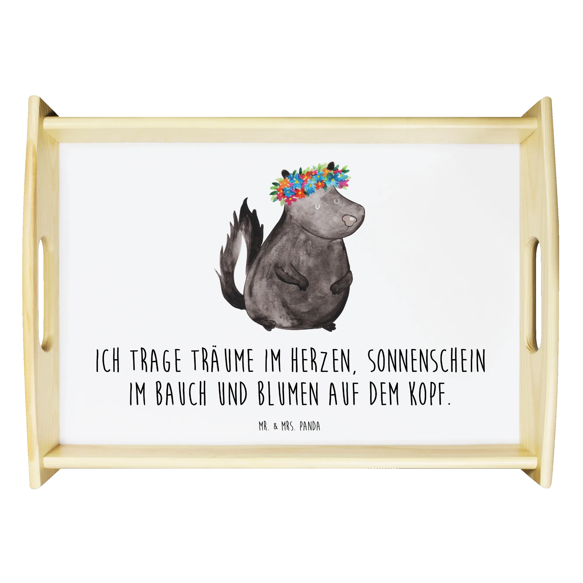 Serviertablett Stinktier Blumenmaedchen - mit Spruch - Weiß