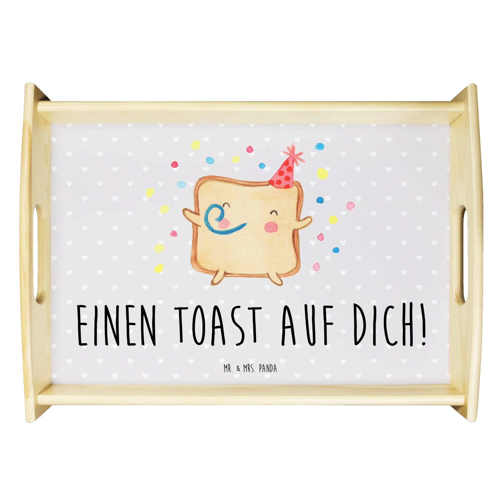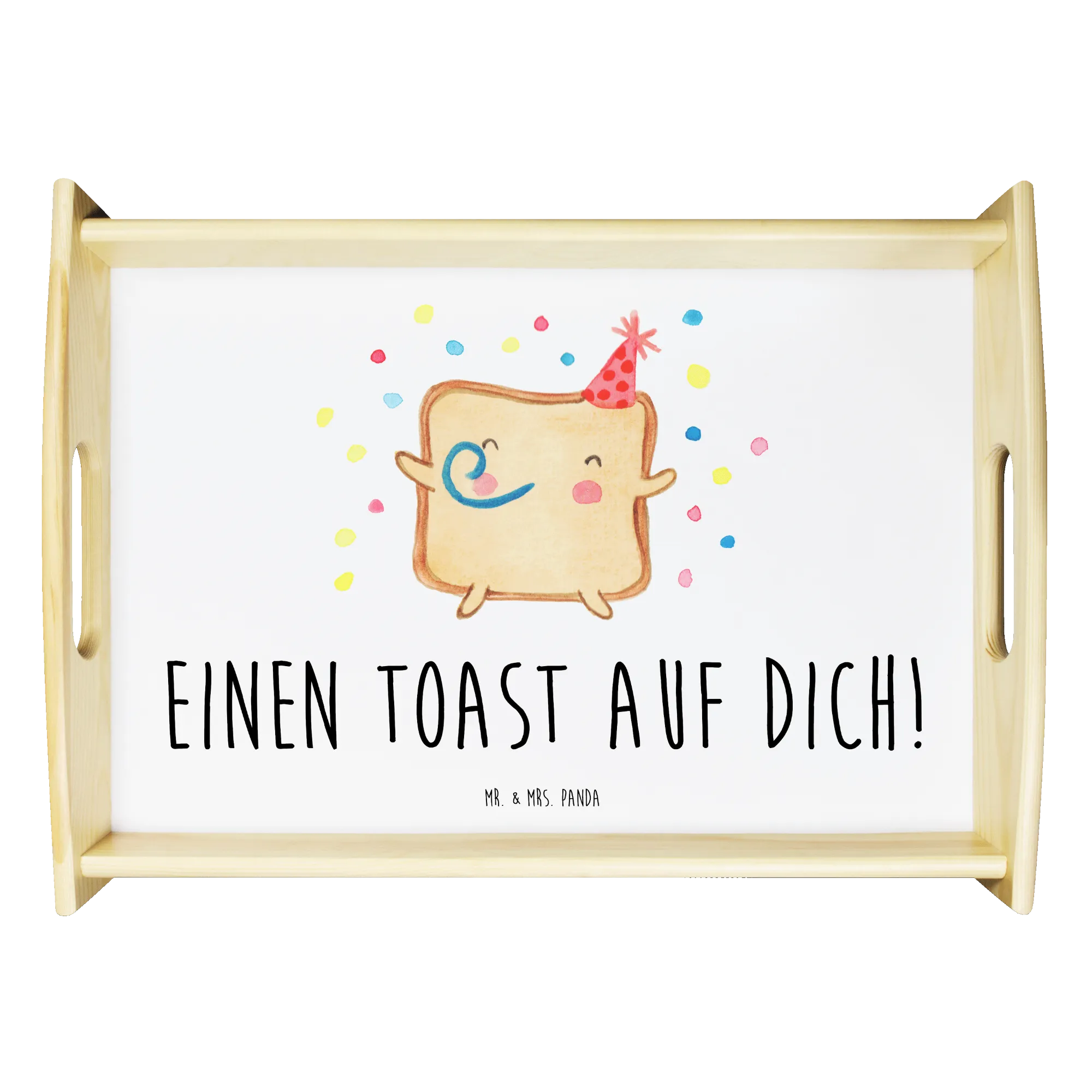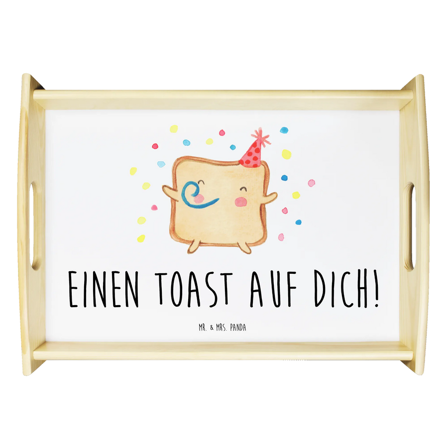 Entdecke das einzigartige Serviertablett "Toast Party" aus der liebevollen Kollektion von Mr. & Mrs. Panda! Dieses wunderschöne Holztablett ist nicht nur eine praktische Ergänzung für dein Zuhause, sondern auch ein perfektes Geschenk für deine Liebsten. Mit dem entzückenden Motiv eines fröhlichen Toasts, der mit einem Partyhut und einem strahlenden Lächeln daherkommt, zaubert es jedem ein Lächeln ins Gesicht. Umrahmt von buntem Konfetti, ist dieses Tablett ideal für zahlreiche Anlässe: ob zum Valentinstag, als Liebesgeschenk für den Jahrestag, zur Hochzeit oder einfach als süßes Mitbringsel für deine Freundin oder deinen Partner.