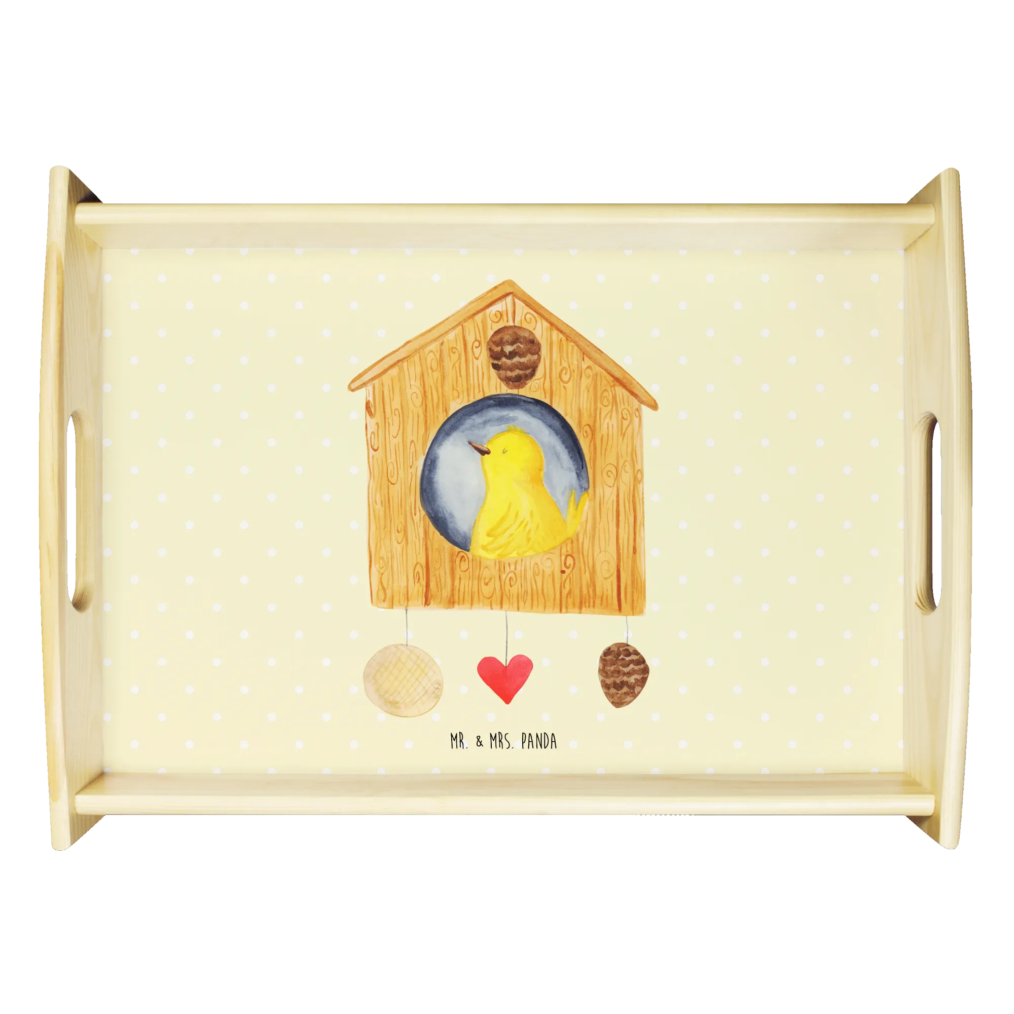 Gelber Vogel im Vogelhaus - Eigenheim Glück - Mr. & Mrs. Panda - Ideal für Familien und Nestbauer