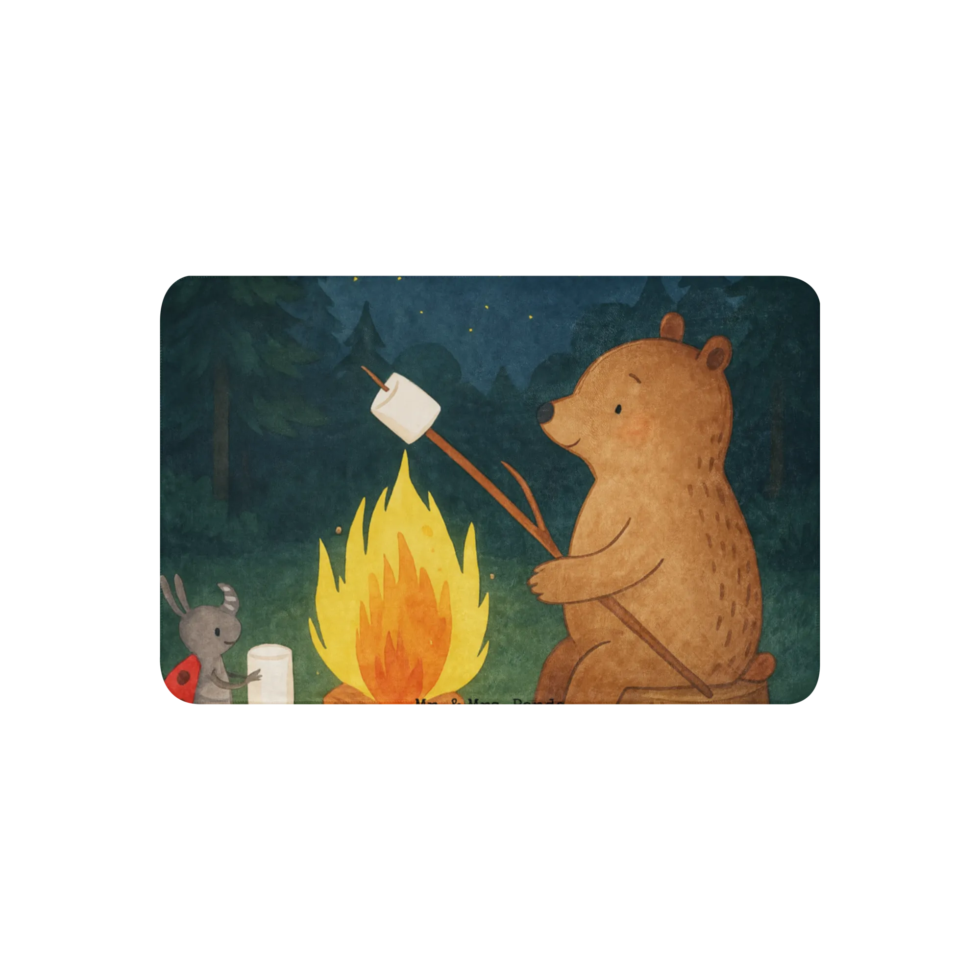 Idyllisches Lagerfeuer-Motiv mit Bär und Marienkäfer für schöne Erinnerungen