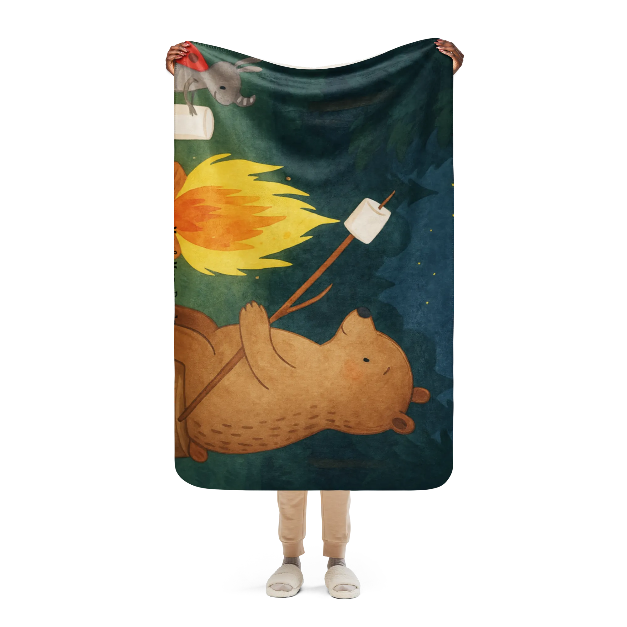 Sherpa Kuscheldecke Bär & Marienkäfer Lagerfeuer Design – Mr. & Mrs. Panda