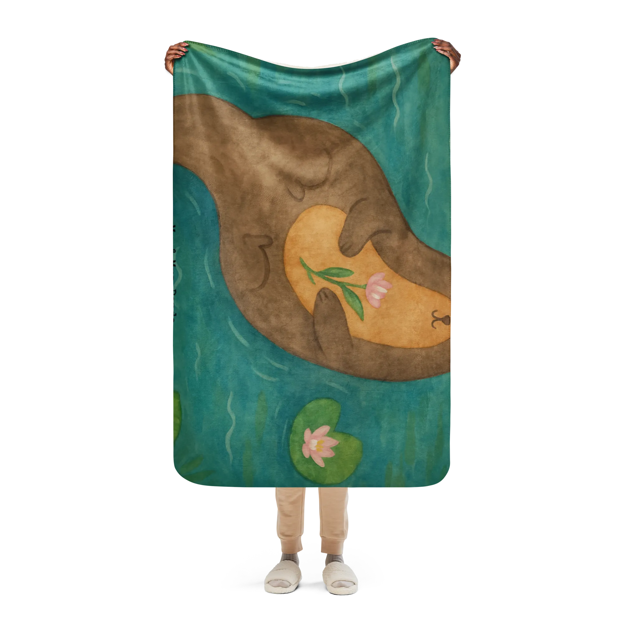 Sherpa Kuscheldecke Otter Seerose Design - 130 x 155 cm