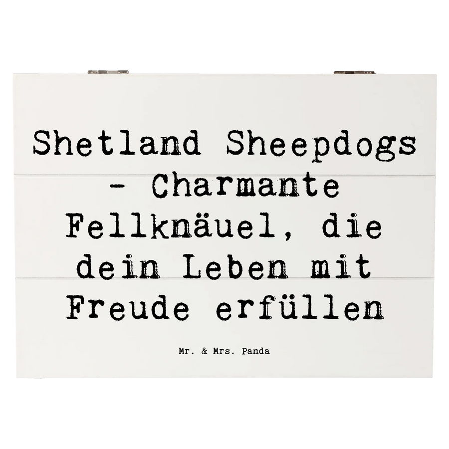 Die wunderschöne Holzkiste von Mr. & Mrs. Panda mit dem zauberhaften Motiv des Shetland Sheepdogs ist das perfekte Geschenk für alle Hundefans und Tierliebhaber. Diese charmante Truhe, bedruckt mit dem Spruch "Shetland Sheepdogs - Charmante Fellknäuel, die dein Leben mit Freude erfüllen", bietet nicht nur einen stilvollen Platz zur Aufbewahrung wertvoller Erinnerungen, sondern ist auch ein echter Hingucker in jedem Raum.