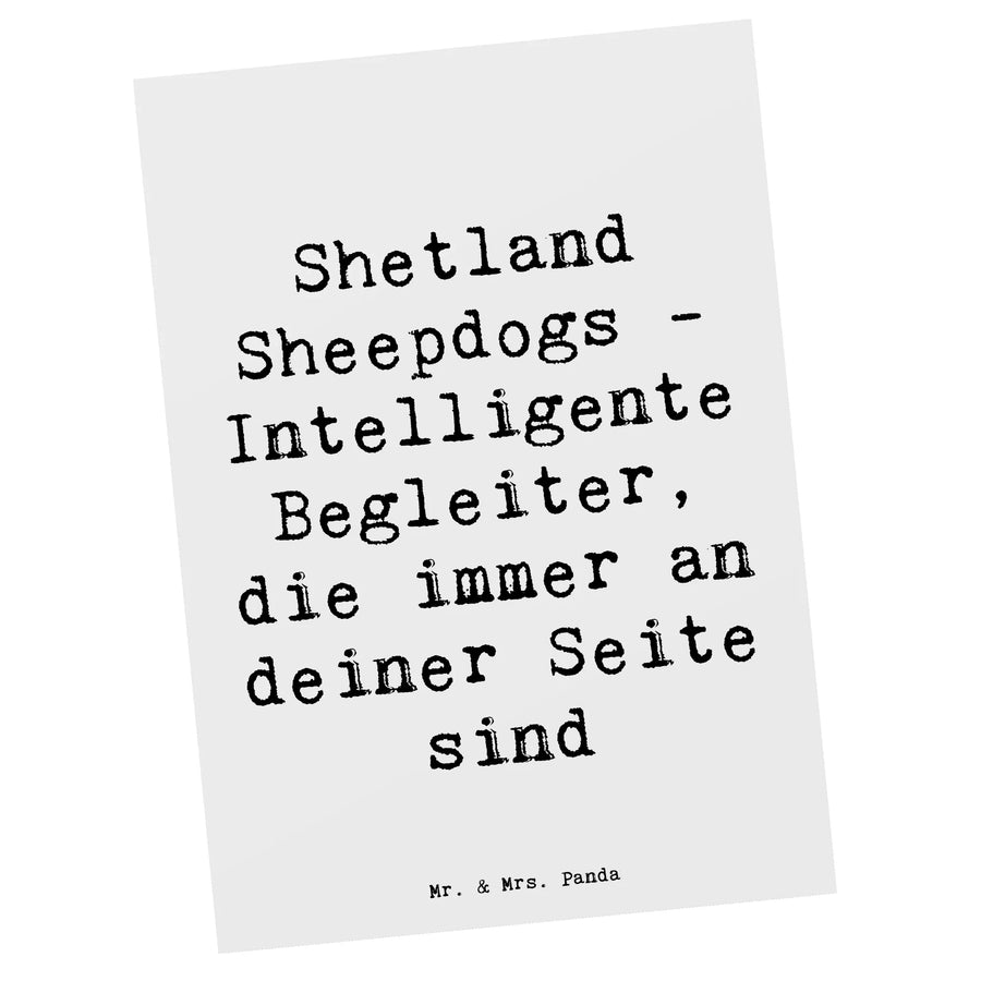 Für Sheltie-Fans mit Herz: Diese Postkarte aus der Hunderassen-Kollektion von Mr. & Mrs. Panda zeigt einen liebevoll gezeichneten Shetland Sheepdog und den sichtbaren Spruch: "Shetland Sheepdogs - Intelligente Begleiter, die immer an deiner Seite sind". Die Illustration wurde von Mrs. Panda mit Aquarellstil entworfen und fängt die kluge, treue Ausstrahlung des Shelties perfekt ein. 🎨