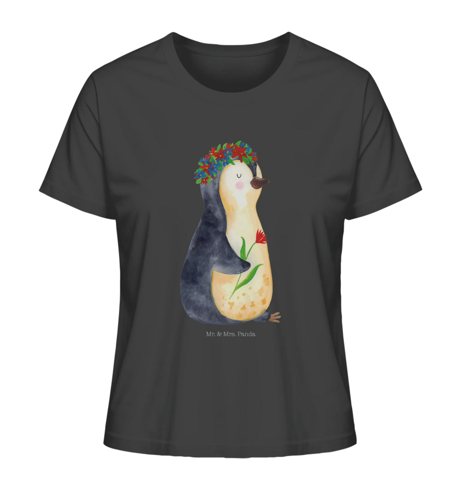 Der süße Pinguin mit einem Blumenkranz auf dem Kopf und einer Blume in der Hand symbolisiert Lebensfreude und Motivation. Egal, ob zum Junggesellenabschied, Jubiläum oder Geburtstag – dieses T-Shirt bringt ein Lächeln ins Gesicht. Die hochwertige Baumwolle sorgt nicht nur für einen angenehmen Tragekomfort, sondern auch dafür, dass Du in jeder Situation blendend aussiehst.