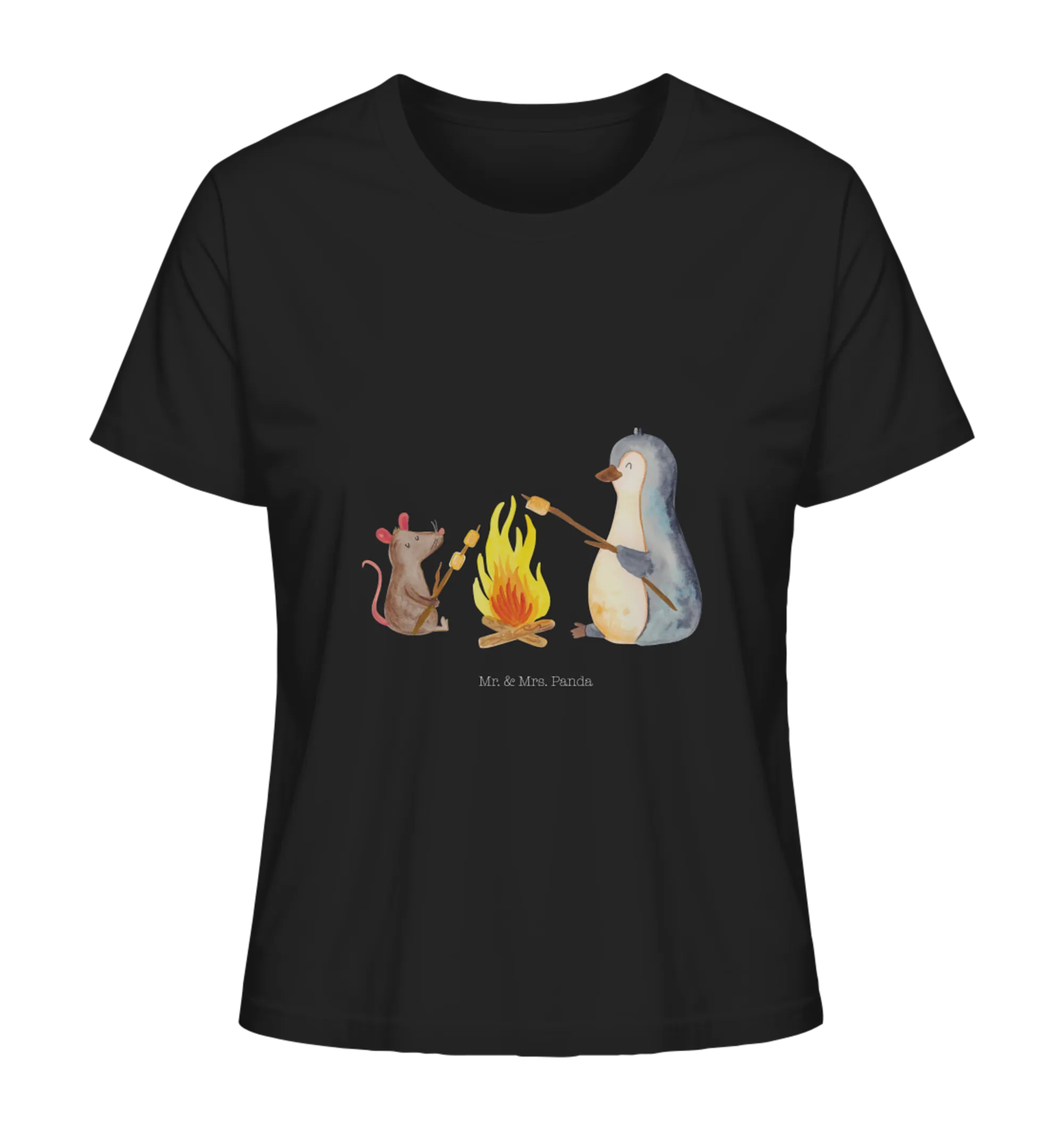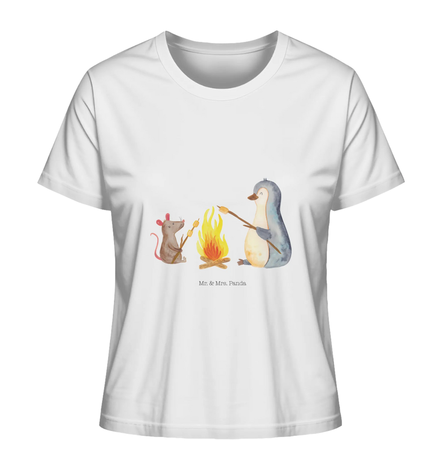 Ein Shirt mit Herz und Lagerfeuer-Romantik: Unser Shirt Damen aus der Pinguin - Kollektion vereint Komfort und liebevolle Illustration. Das Motiv „Pinguin Lagerfeuer“ zeigt einen niedlichen Pinguin und eine kleine Maus, die zusammen Marshmallows rösten. Dieses liebevoll handgezeichnete Bild von Mr. & Mrs. Panda verbreitet sofort Wärme und Gemütlichkeit.