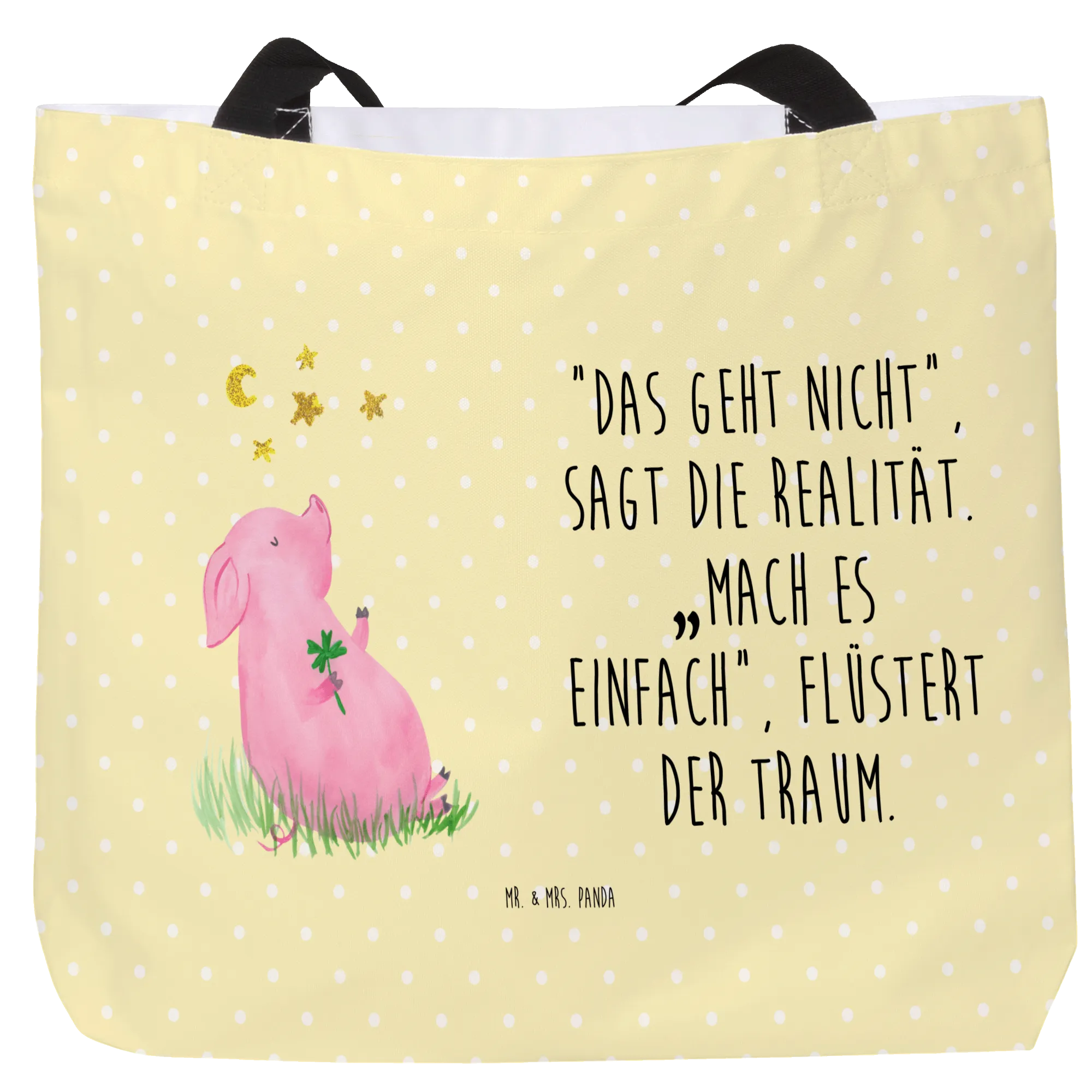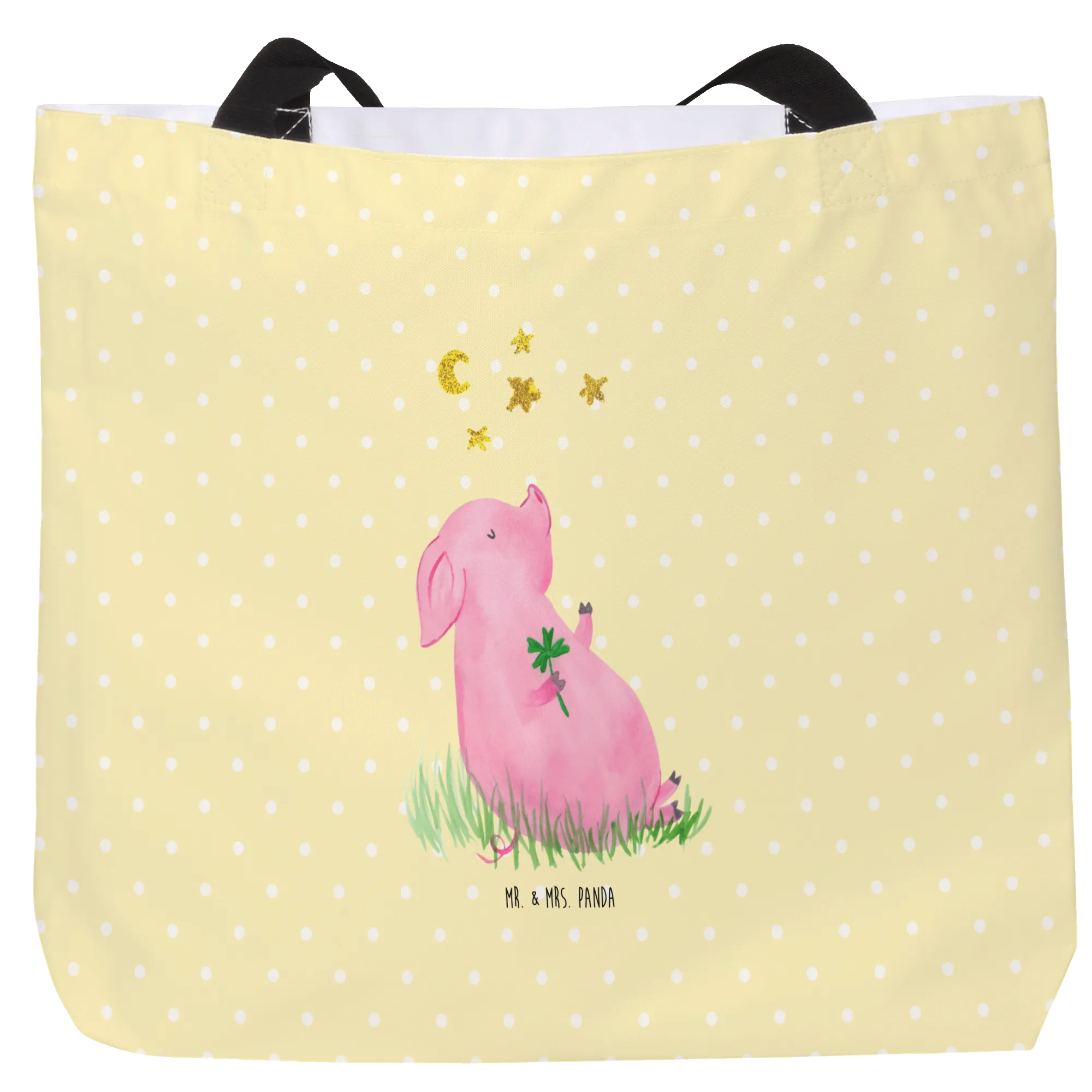 Shopper Schwein Glück - mit Spruch - Gelb Pastell