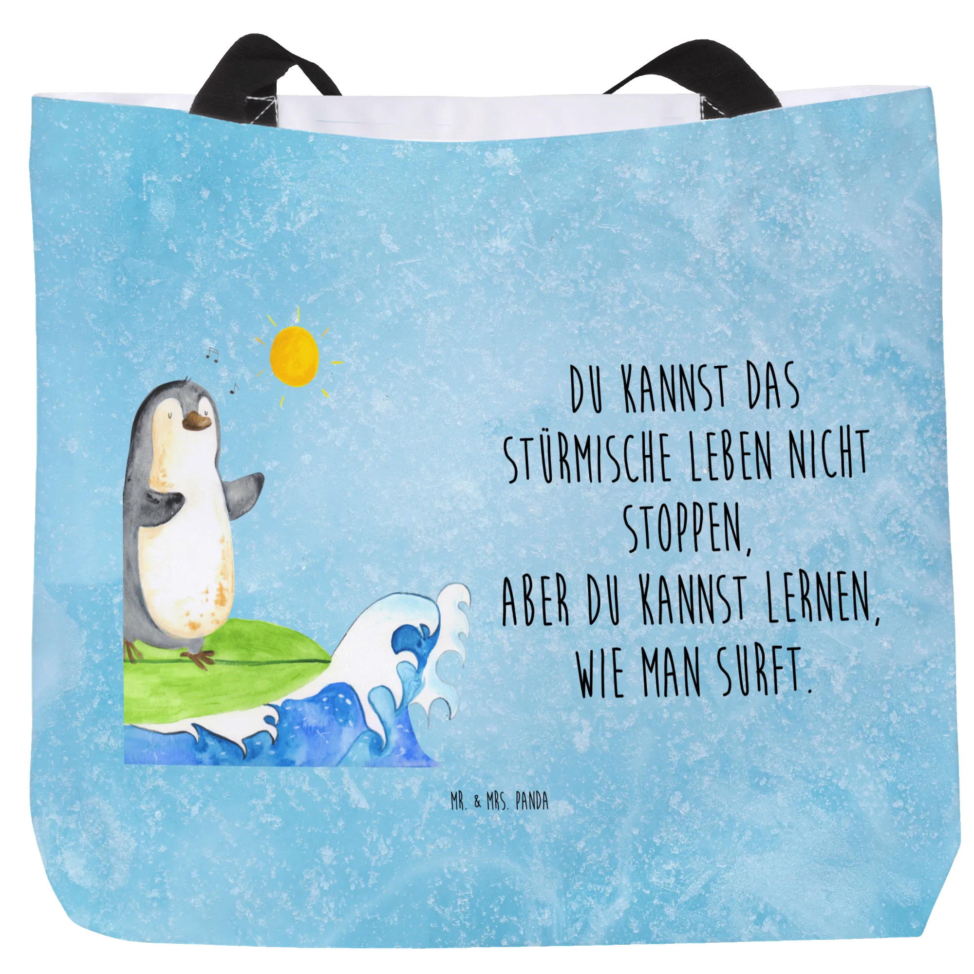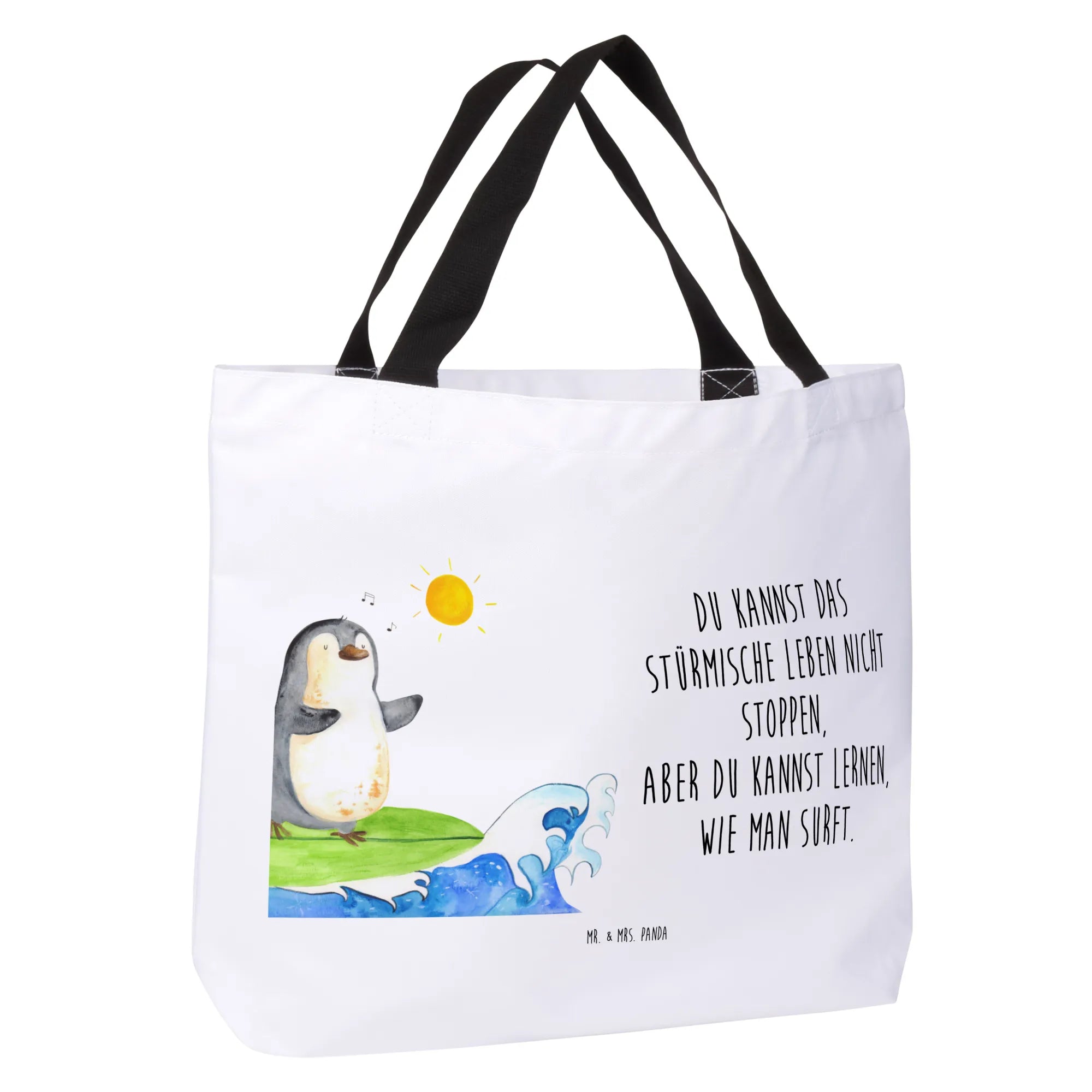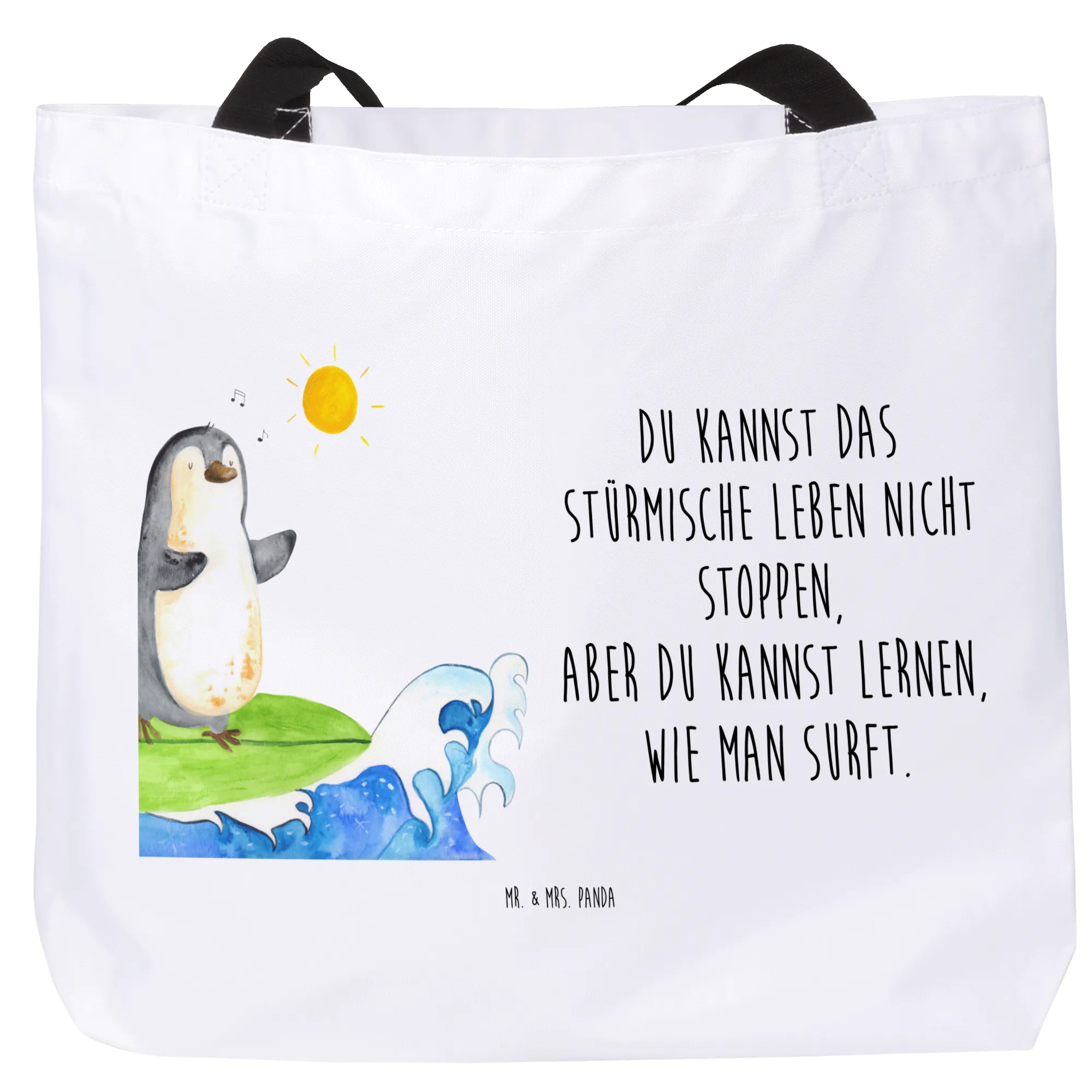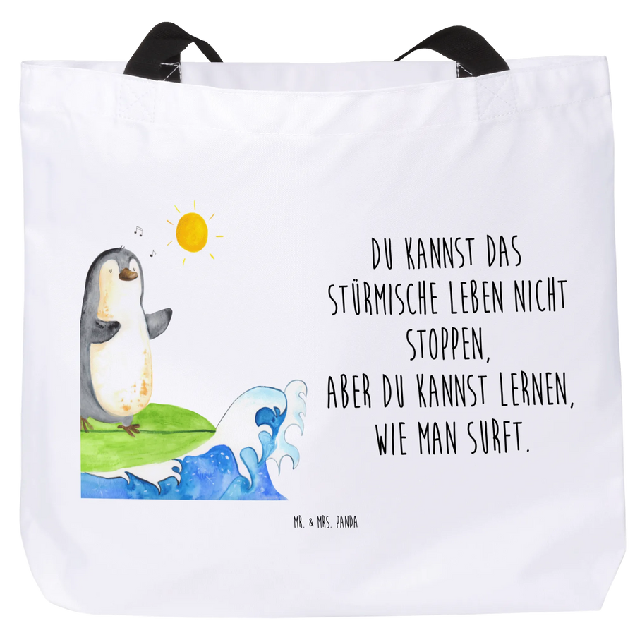 Entdecke unseren bezaubernden Shopper mit dem niedlichen Pinguin Surfer Motiv aus der Pinguin - Kollektion von Mr. & Mrs. Panda! Diese stilvolle Einkaufstasche ist der perfekte Begleiter für alle, die das Leben am Meer und das Surfen lieben. Der süße Pinguin, der mutig auf den Wellen reitet, ist nicht nur ein echter Blickfang, sondern auch eine Quelle der Inspiration. Der Slogan "Du kannst das stürmische Leben nicht stoppen, aber du kannst lernen, wie man surft." ermutigt dich dazu, Herausforderungen mit einem Lächeln zu begegnen.