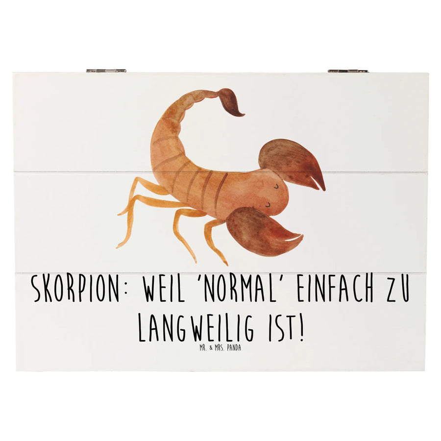 Mit dem liebevollen Motiv des Skorpions, das mit vielen bunten Details und dem Spruch "Skorpion: Weil 'normal' einfach zu langweilig ist!" bedruckt ist, ist diese Kiste nicht nur ein Blickfang, sondern auch ein wunderbarer Ort, um besondere Erinnerungen zu bewahren.