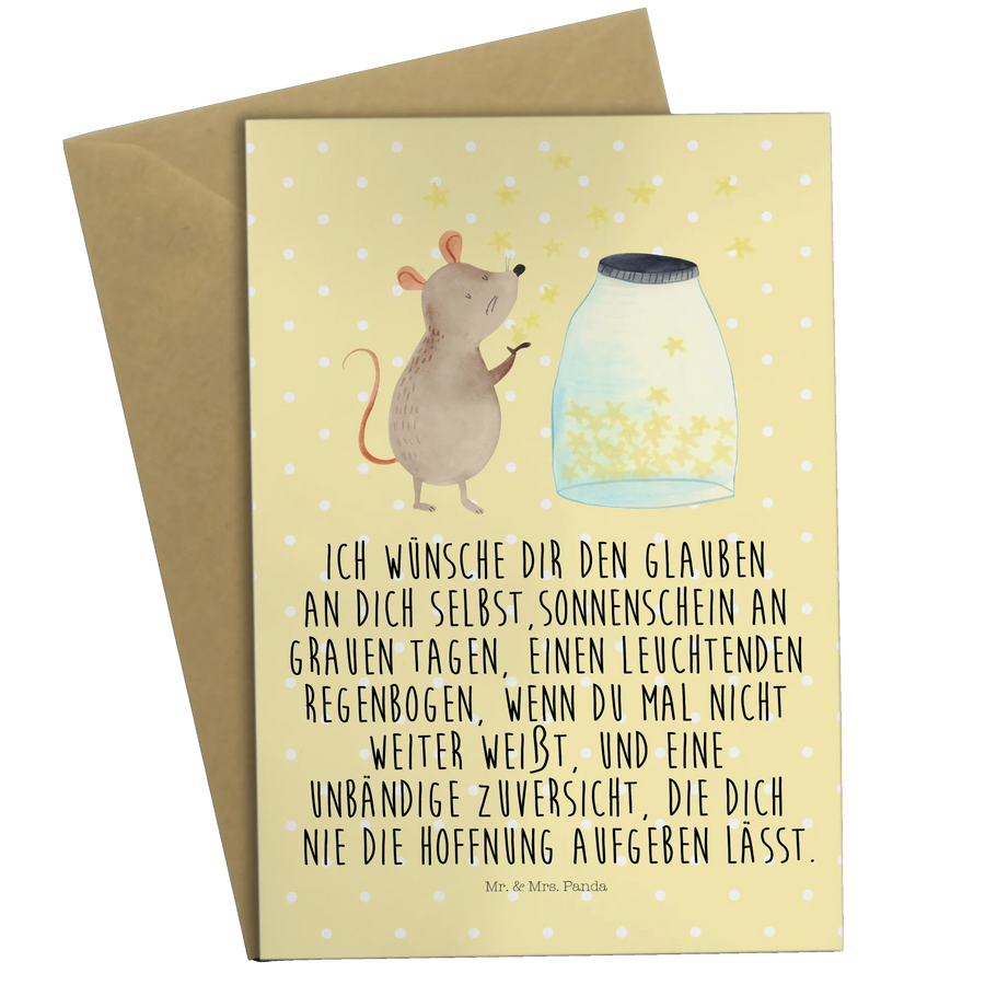 Grußkarte Maus Sterne - mit Spruch - Gelb Pastell