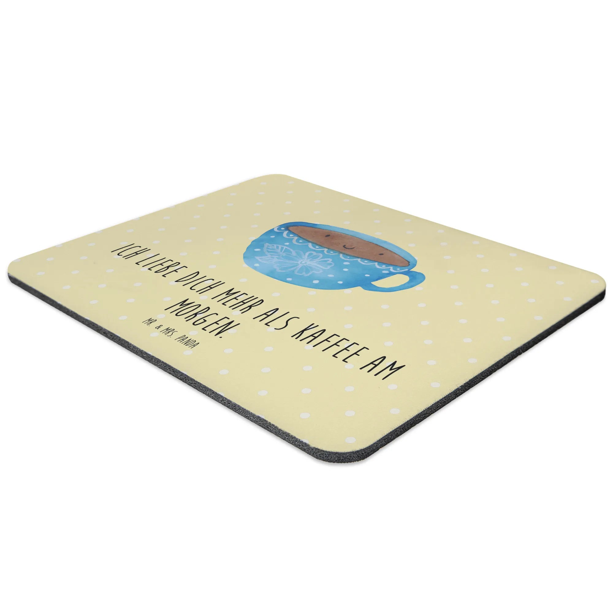 Entdecke das perfekte Mauspad für alle Kaffeeliebhaber! Das Mauspad "Kaffee Tasse" von Mr. & Mrs. Panda ist mehr als nur ein nützliches PC Zubehör – es bringt Freude und gute Laune in jedes Büro oder Home Office. Mit seiner fröhlichen Gestaltung einer glücklichen Kaffeetasse verleiht dieses Designer Mauspad deinem Arbeitsplatz einen Hauch von Gemütlichkeit. Der süße Gesichtsausdruck der Tasse wird nicht nur Dich, sondern auch deine Kollegen zum Schmunzeln bringen und sorgt für eine kleine Auszeit vom hektischen Arbeitsalltag.