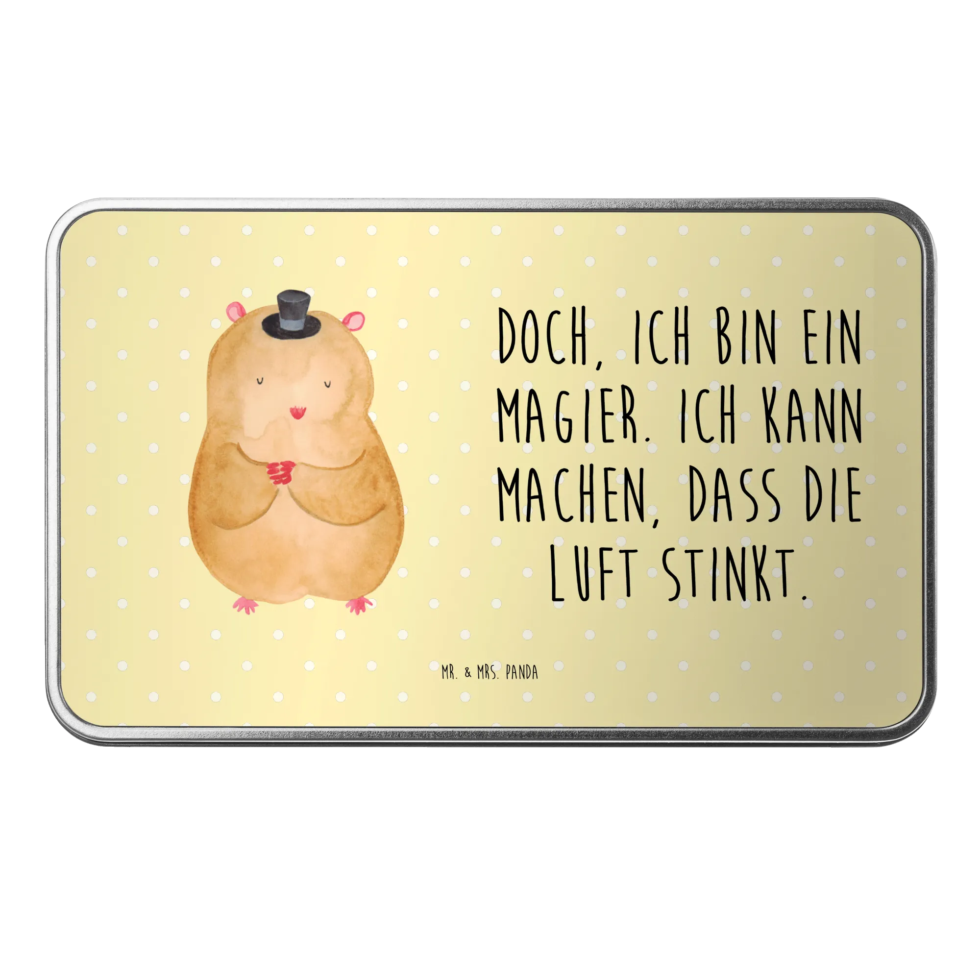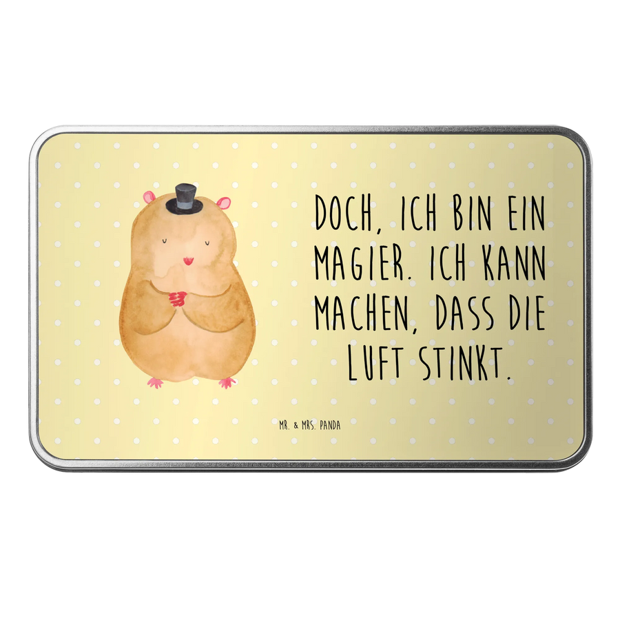 Entdecke die wunderschöne rechteckige Metalldose mit dem zauberhaften Motiv "Hamster mit Hut" von Mr. & Mrs. Panda. Diese Blechdose ist nicht nur ein praktischer Aufbewahrungsort für deine Köstlichkeiten, sondern auch ein echter Blickfang in deinem Zuhause. Der niedliche Hamster trägt stolz seinen kleinen Zylinder und zaubert garantiert jedem ein Lächeln ins Gesicht.