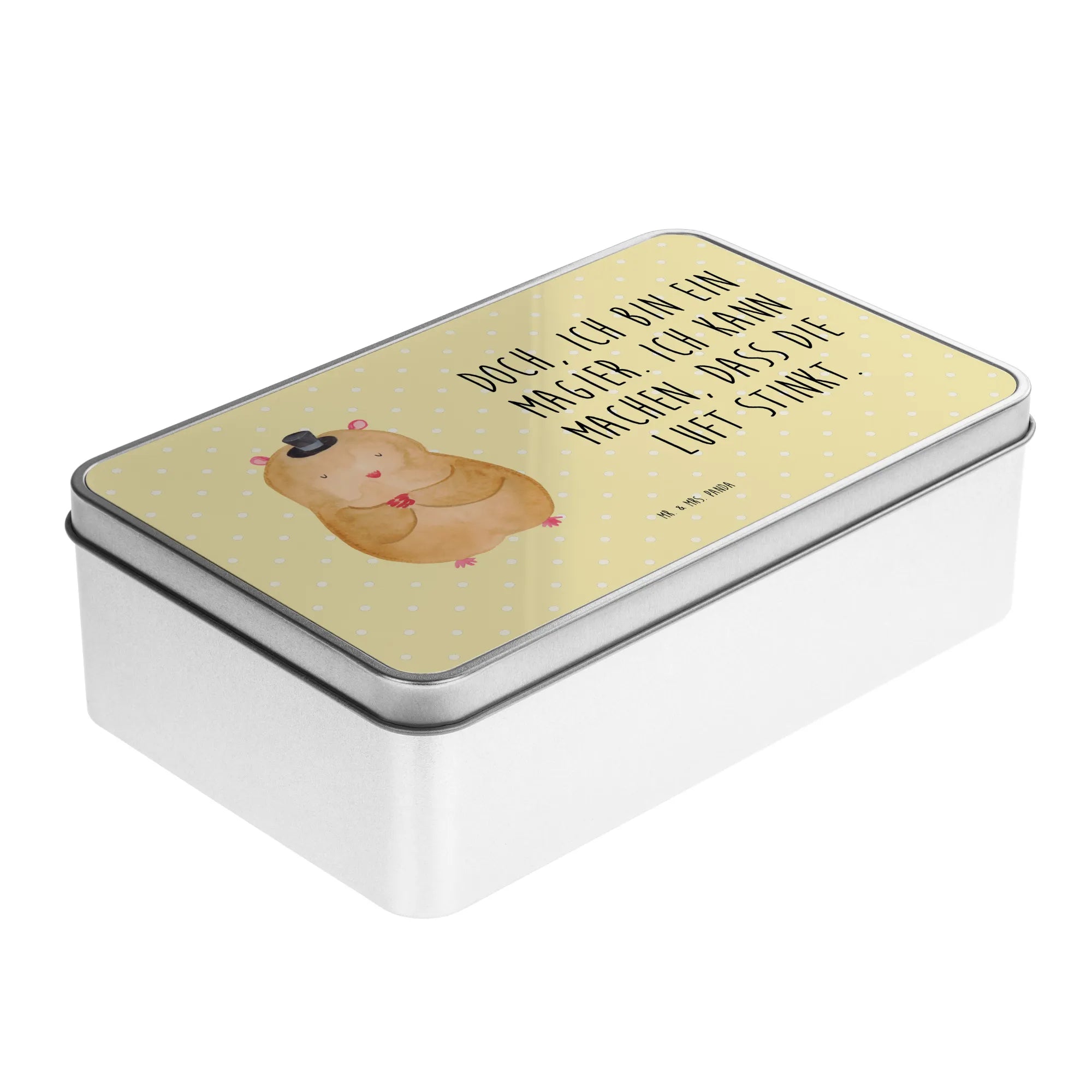 Entdecke die zauberhafte Welt der Aufbewahrung mit unserer wunderschönen Metalldose rechteckig, bedruckt mit dem süßen Motiv "Hamster mit Hut" aus der beliebten Small World Kollektion von Mr. & Mrs. Panda. Diese Blechdose ist nicht nur ein praktischer Container für Kekse, Snacks oder kleine Schätze – sie ist ein echter Hingucker in jedem Raum!