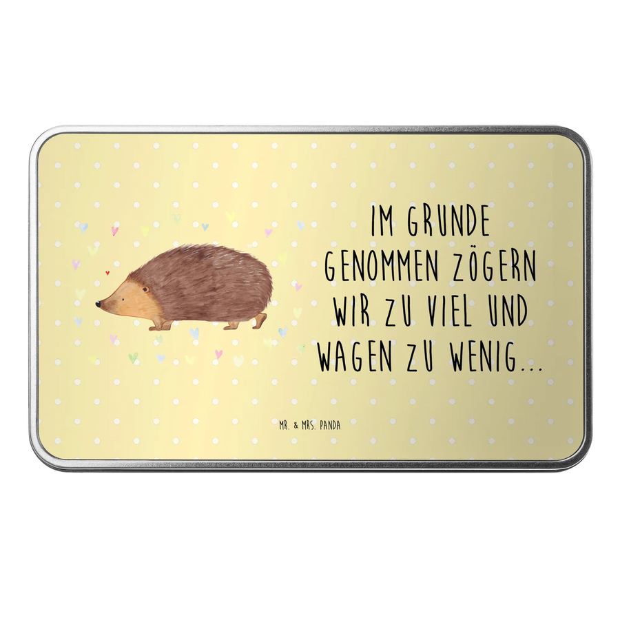 Die wunderschöne rechteckige Metalldose von Mr. & Mrs. Panda mit dem bezaubernden Motiv "Igel Herzen" ist das perfekte Geschenk für jeden Anlass! Diese Dose ist nicht nur ein echter Hingucker, sie bringt auch Freude und Liebe in jedes Zuhause.