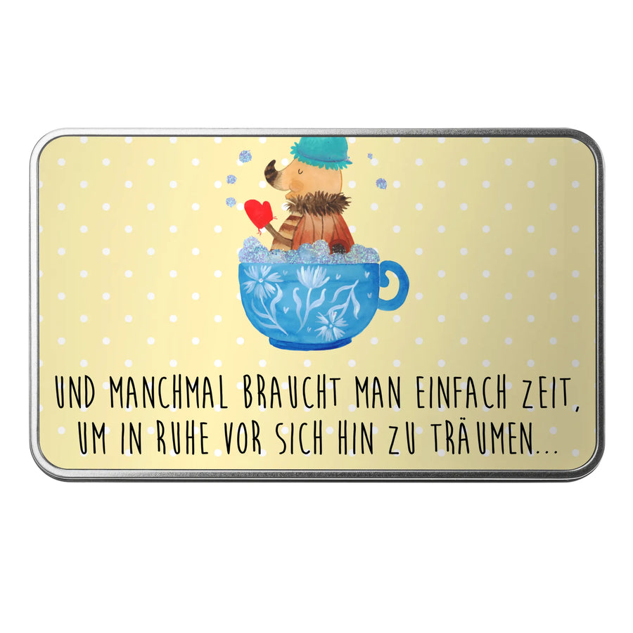 Herzlich Willkommen in der Welt des Nachtfalters Schaumbad von Mr. & Mrs. Panda! Diese wunderschöne rechteckige Metalldose ist mehr als nur eine Deko; sie bringt Freude und Entspannung in dein Zuhause. Bedruckt mit dem zauberhaften Motiv eines kleinen Nachtfalters, der es sich in einer Kaffeetasse gemütlich macht und ein entspannendes Schaumbad genießt, strahlt sie eine beruhigende Atmosphäre aus. Ideal als Aufbewahrungsdose für Kekse, kleine Schätze oder sogar als besondere Geschenkbox – denn manchmal braucht man einfach Zeit, um in Ruhe vor sich hin zu träumen.